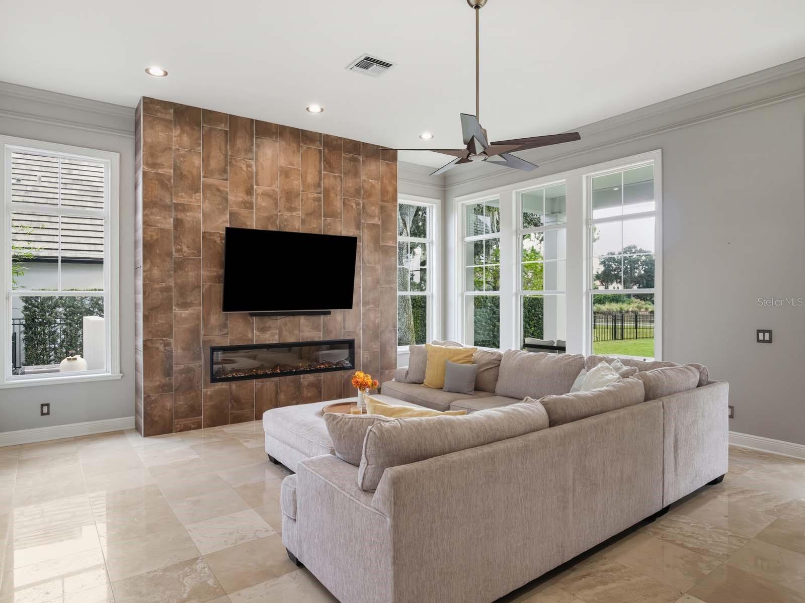 Esta residência privada e escondida está perfeitamente localizada nas nove primeiras frentes do campo de golfe profissional do Lake Nona Golf & Country Club. Atualizações cuidadosas, uma abundância de espaços cheios de luz e vistas sensacionais do pôr do sol distinguem esta bela casa com pátio. Um amplo jardim frontal, com paisagismo maduro e entrada sinuosa, dá as boas-vindas ao pátio cercado por tela com água salgada serena, piscina aquecida e spa. Acabamentos elevados e atualizados em todo o interior, incluindo piso de travertino italiano polido, luminárias elegantes e seleções de azulejos personalizados, criam uma integração perfeita entre conforto moderno e beleza tradicional. A cozinha, partilhando o seu espaço com uma zona de refeições aberta, apresenta uma ilha de grandes dimensões com ampla arrumação, elegantes armários personalizados e eletrodomésticos Wolf, SubZero e Bosch. A despensa do mordomo com adega refrigerada e armazenamento é perfeita para relaxar e se divertir. O primeiro andar também inclui uma espaçosa suíte do proprietário com um banheiro tipo spa que oferece banheira independente, box amplo de vidro com várias opções de spray e um grande armário com amplo armazenamento de sapatos. A sala familiar adjacente é ancorada por uma impressionante parede de entretenimento, com lareira e possui acesso por portas francesas à varanda coberta. Uma escada contemporânea iluminada com grades de vidro sobe ao segundo andar, que oferece três quartos, incluindo uma suíte adicional do proprietário. Acentuado por um conveniente bar molhado, o loft de entretenimento é inundado de luz natural e está em uma localização privilegiada dentro da casa. Abrindo para uma varanda reconstruída, este quarto captura vistas panorâmicas dos Buracos 3, 4 e 5. As características adicionais incluem uma churrasqueira ao ar livre, lavanderia no primeiro andar e garagem para três carros.