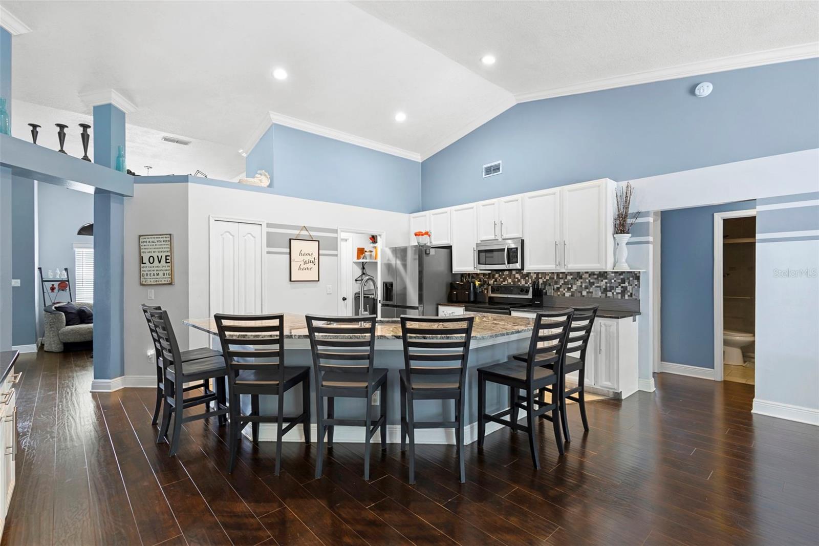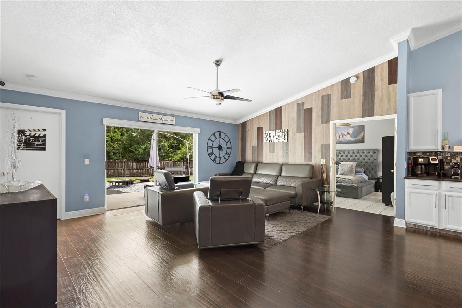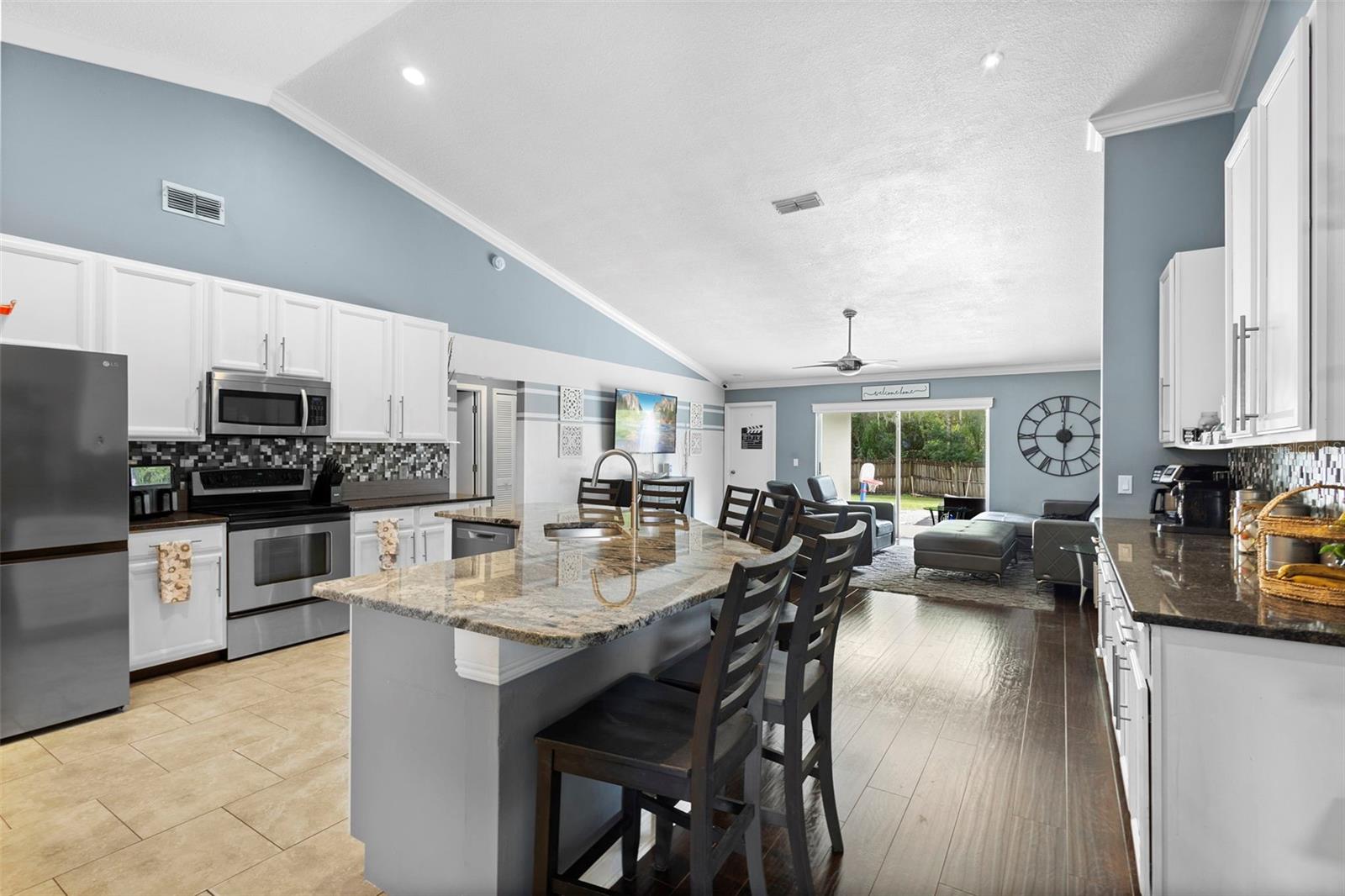 Bem-vindo a esta casa lindamente atualizada de quatro quartos e dois banheiros, oferecendo estilo e conforto. Sem vizinhos traseiros e um grande quintal com privacidade, você desfrutará de um cenário pacífico emoldurado por árvores maduras. No interior, a casa apresenta uma planta versátil, começando com áreas de vida e jantar formal, atualmente apreciadas como um lounge e sala de jogos. A cozinha atualizada é uma verdadeira peça central, mostrando uma ilha espaçosa com bar de café da manhã, bancadas em granito e um elegante backsplash de telha. Aberto para a generosa sala da família, esse espaço convidativo é perfeito para a vida e o entretenimento cotidianos. Para um conforto adicional, o quarto da família está equipado com persianas de poder, ideais para as noites de cinema em casa. A suíte primária fornece um retiro relaxante com um closet e um banheiro inspirado em spa, completo com vaidades duplas, uma banheira jato e um chuveiro de grande porte. Um layout de quarto dividido garante a privacidade, com dois quartos e um banheiro completo em um lado da casa e um quarto quarto escondido na parte de trás da casa. Saia para aproveitar o amplo quintal, oferecendo muito espaço para reuniões, brincadeiras e relaxamento. Um galpão de 13x9 adiciona um espaço de armazenamento valioso. Convenientemente localizado perto do centro de Orlando, Lake Nona, Parques Temáticos Principais e Aeroporto Internacional de Orlando - com acesso fácil à Brightline - esta casa combina tranquilidade com acessibilidade. Programe sua exibição particular hoje e experimente toda essa casa tem a oferecer.