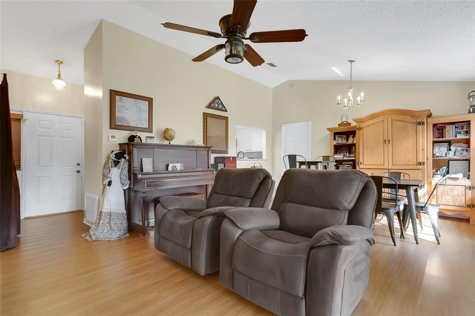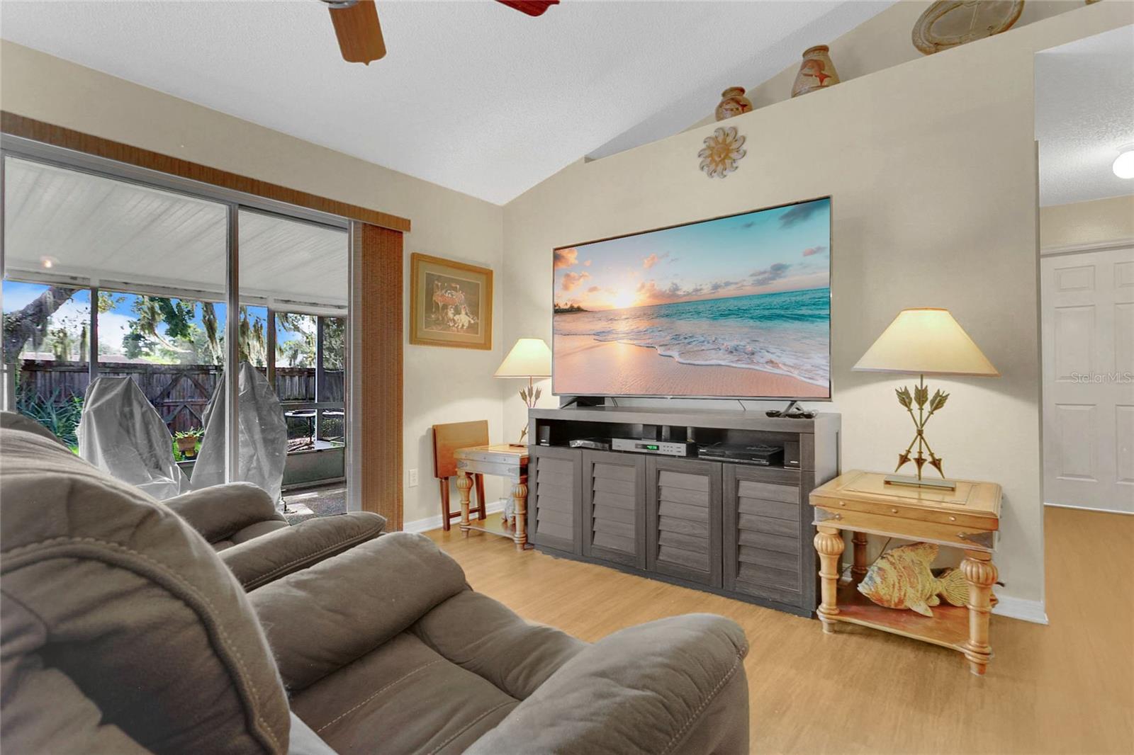 É isso! Bem -vindo para casa nesta casa atualizada na subdivisão tranquila e alinhada de Clarion Oaks. Esta casa parece maior do que é, devido aos seus tetos abobadados, à sala de ar condicionado da Flórida e enorme, exibida em Lanai. A cozinha foi atualizada com balcões de granito, eletrodomésticos negros e armários de madeira maciça. A suíte primária é grande um banheiro atualizado e entra no armário. Ele tem vista para a sala de vidro da Flórida com vista para o quintal privado, cercado e sombreado, que abriga árvores de pêssego e starfruit e mais de uma dúzia de plantas de abacaxi. O segundo banheiro também foi atualizado com uma nova vaidade e um chuveiro com ladrilhos de chão ao teto. Não espere para ver esta casa. Novo telhado 2024