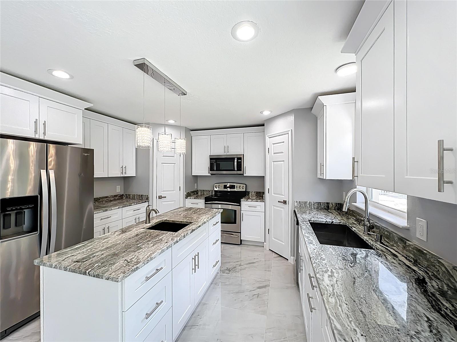 Entre em mais de 2.800 pés quadrados de espaço lindamente renovado nesta espaçosa casa de 5 quartos e 3,5 banheiros com tetos altos, luz natural abundante e várias áreas de estar e jantar projetadas para a vida familiar moderna. A cozinha atualizada é o coração da casa, apresentando armários shaker brancos, bancadas de granito, eletrodomésticos de aço inoxidável e uma grande ilha que se abre perfeitamente para a sala da família, perfeita para entretenimento ou conexão diária. O andar de baixo oferece piso de porcelanato, um lavabo conveniente e um espaço flexível que pode servir como quarto de hóspedes, home office ou área de estar adicional, oferecendo opções que se adaptam ao seu estilo de vida. No andar de cima, desfrute de um loft espaçoso, uma suíte principal ampla com closets duplos e uma banheira estilo spa renovada, além de três quartos adicionais e um banheiro completo. Renovada em 2025, esta casa também apresenta piso novo, pintura interna e externa fresca, iluminação e acessórios atualizados e um novo telhado em 2024 para maior tranquilidade. Um quintal privado sem vizinhos traseiros e uma vista serena de conservação oferecem o lugar perfeito para relaxar ou se divertir ao ar livre. Idealmente localizada perto do Lago Nona, do Aeroporto Internacional de Orlando, de lojas, restaurantes e das principais rodovias, esta casa combina atualizações modernas, espaço flexível e uma localização conveniente em uma das comunidades mais desejáveis do sul de Orlando. Agende sua exibição privada hoje e veja por que Wetherbee Lakes é o lugar perfeito para chamar de lar.