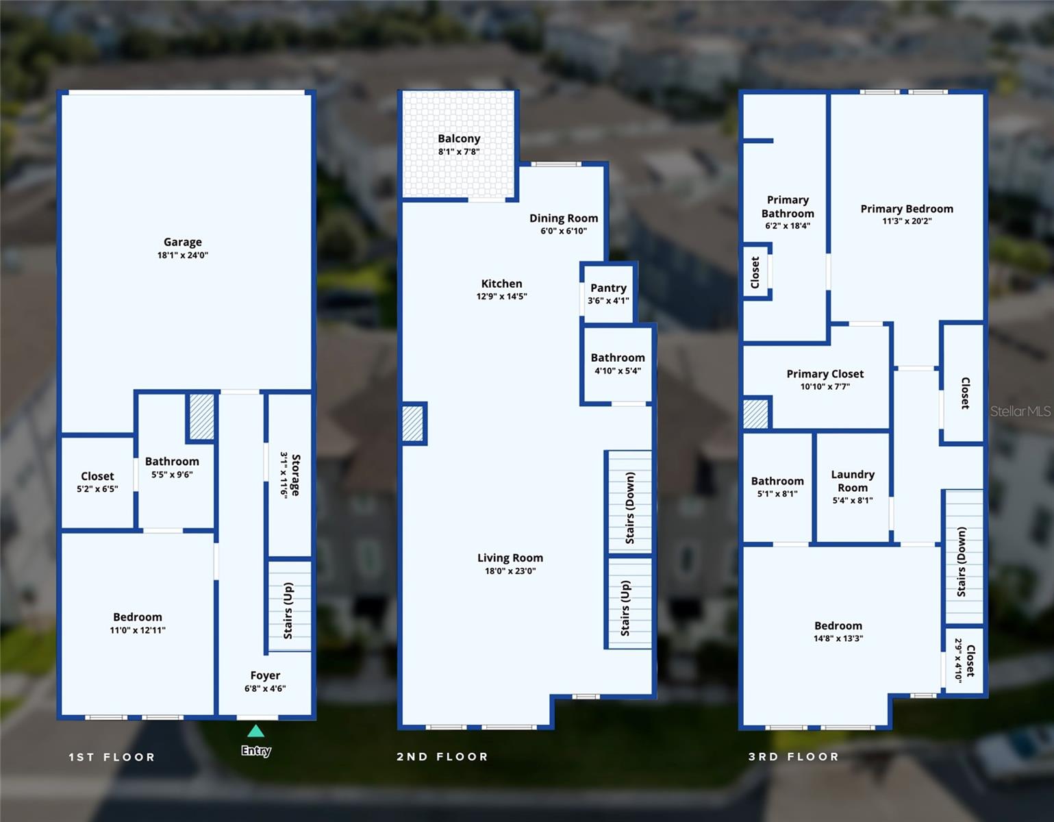 Descubra este elegante moradia de três andares no coração de Laureate Park, oferecendo estilo, conforto e conveniência modernos. O primeiro nível possui um quarto privado com banheiro completo-perfeito para os hóspedes ou um escritório em casa-junto com uma garagem para 2 carros. Upstairs, an open great room connects the living and dining areas to a sleek kitchen with 42" cabinets, quartz countertops, stainless steel appliances, and Luxury Vinyl Plank flooring. Step out onto the private balcony for fresh air and relaxation. The third level boasts a spacious primary suite with a spa-inspired bath, plus an additional bedroom and full bath. Laureate Park isn’t just a neighborhood—it’s a vibrant Estilo de vida. Praias.