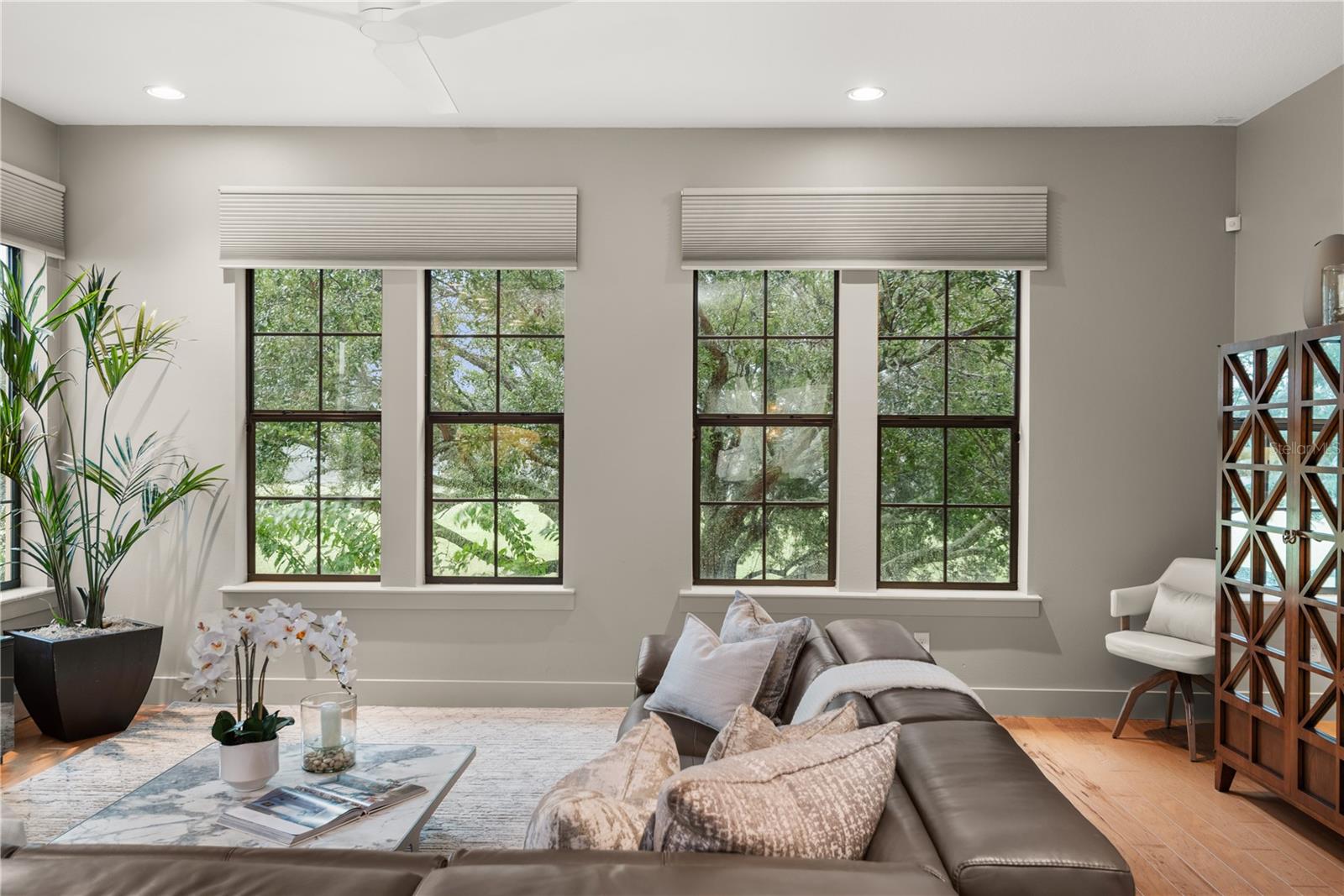 Experimente o auge do luxo nesta residência urbana em Baldwin Park, que oferece vistas deslumbrantes do parque e uma curta caminhada até o pitoresco Lago Baldwin. Espere ficar impressionado ao entrar nesta deslumbrante unidade final, residência de 4 quartos e 3 ½ banheiros com acabamentos de alta qualidade e 2179 SF de espaço luminoso e convidativo! Ao entrar, você é recebido por um espaço versátil no primeiro andar, com portas de vidro com fechamento suave e banheiro privativo completo. Este espaço flexível é ideal como home office, suíte de hóspedes ou escritório aconchegante. No piso principal, os espaços abertos são projetados para o conforto diário e entretenimento elegante. Lindos pisos de madeira projetados fluem por toda parte, trazendo calor e estilo atemporal para a casa. A cozinha gourmet é o centro das atenções com uma impressionante ilha em cascata de quartzo com balcão para café da manhã, backsplash de azulejos de vidro, armários elegantes e eletrodomésticos de aço inoxidável. Ele flui facilmente para a impressionante sala cheia de luz natural de uma abundância de janelas que oferecem uma vista do topo das árvores do Blue Jacket Park, todas adornadas com persianas plissadas motorizadas para elegância e conveniência. A sala de jantar possui uma linda luminária, criando um ambiente elegante para refeições e reuniões. Suba as escadas para a suíte principal com teto falso e um banheiro impressionante e atualizado com balcões de pedra, pias duplas, closet e chuveiro espaçoso com box de vidro. Os quartos dois e três são unidos por um banheiro compartilhado cuidadosamente projetado. Aproveite o ar livre com uma charmosa varanda coberta no primeiro andar e um pátio coberto no segundo andar, perfeito para apreciar a vista. As atualizações incluem: interior recém-pintado com revestimento premium em tons quentes, piso de garagem atualizado com revestimento epóxi durável, garagem completa com estação de carregamento elétrico, iluminação e ventiladores de teto modernizados em toda a casa, sistema de segurança, novo e moderno forno Samsung e lavanderia renovada e atualizada. O vendedor está disposto a vender a casa mobilada. Localização perfeita a uma curta caminhada do centro da cidade na rua New Broad, com restaurantes, lojas, bancos, farmácias, parques para cães e docas para desfrutar do Lago Baldwin. Baldwin Park oferece 3 piscinas comunitárias e 2 instalações para exercícios e tem fácil acesso ao centro de Orlando, Winter Park e ao Aeroporto Internacional de Orlando.