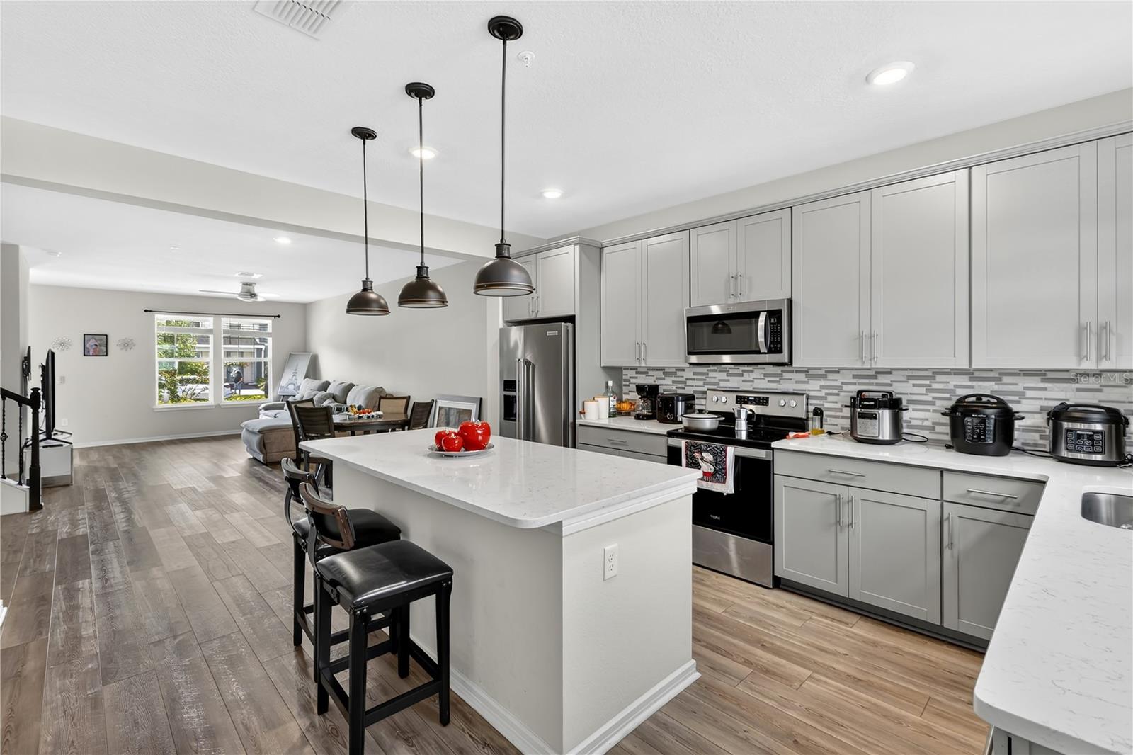 Entre na vida moderna nas Ilhas do Lago Nona! Este impressionante moradia de 3 quartos e 2,5 banheiros oferece uma planta baixa de conceito aberto com piso com aparência de madeira em todo o primeiro andar, uma espaçosa sala de família e uma área de jantar perfeita para entretenimento. A cozinha gourmet possui armários de 42 polegadas, bancadas de pedra, utensílios de aço inoxidável e uma grande ilha com assentos. No andar de cima, você encontrará os três quartos, incluindo uma suíte primária confortável e banheiros completos projetados com estilo e funcionalidade. Uma lavanderia dedicada no primeiro andar adiciona conveniência à sua rotina diária. Aproveite o pátio privado do pátio, perfeito para refeições ao ar livre ou relaxamento, localizado entre a casa e a garagem separada de 2 carros. Moradores de ilhas de lago Nona desfrutam de comodidades em estilo resort, incluindo um clube, fitness center, piscina de resort com splash pad, quadras de tênis e pickleball, playground e trilhas cênicas. As taxas de HOA cobrem cuidados com gramado, paisagismo, internet de fibra e acesso a todas as comodidades. Localizado a poucos minutos do Lake Nona Town Center, Medical City, USTA National Campus, VA e Nemours Hospitals e Orlando International Airport, com escolas de primeira linha nas proximidades: Laureate Park Elementary, Lake Nona Middle e Lake Nona High. Não perca a oportunidade de viver em uma das comunidades mais procuradas de Orlando!