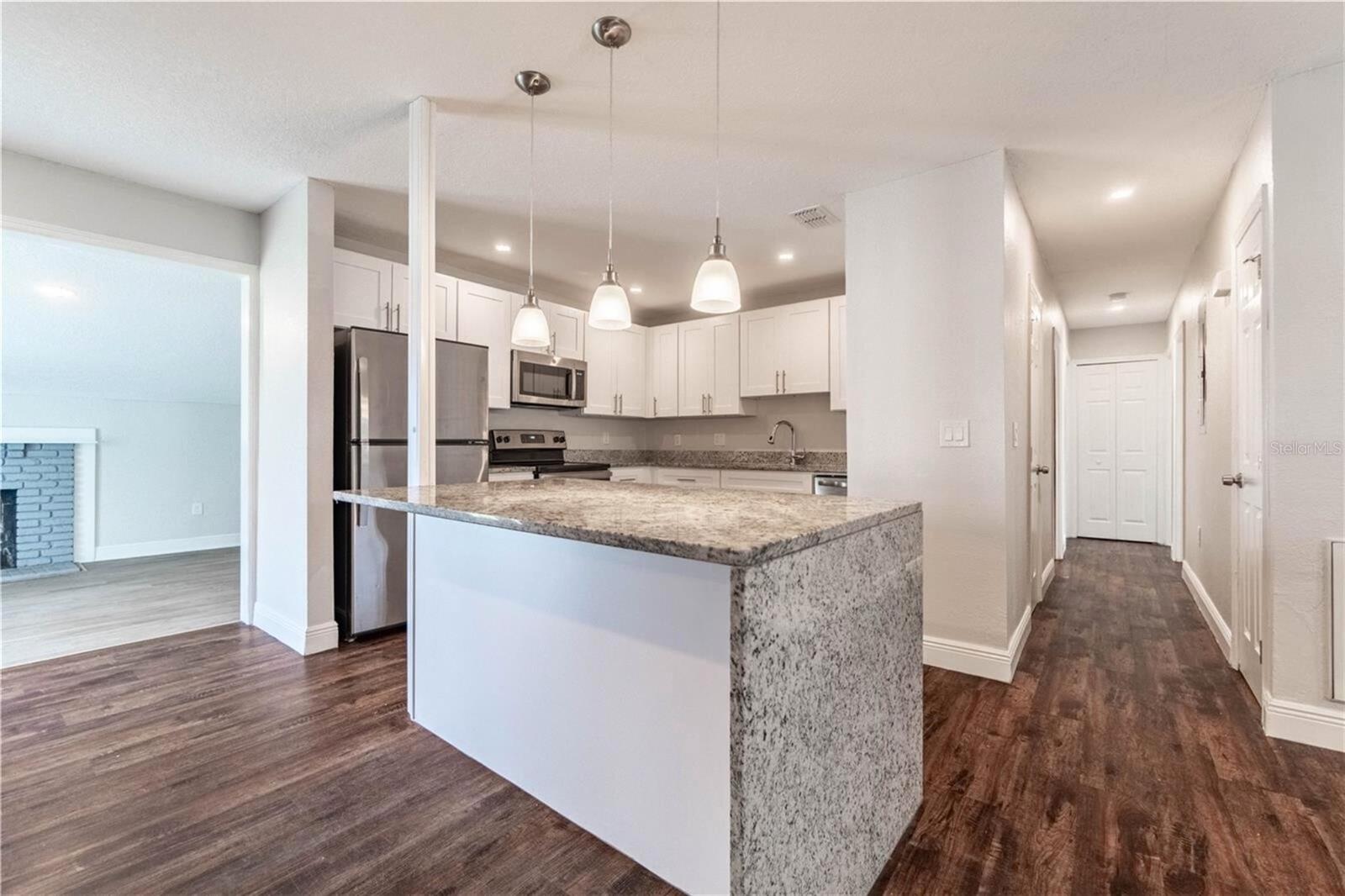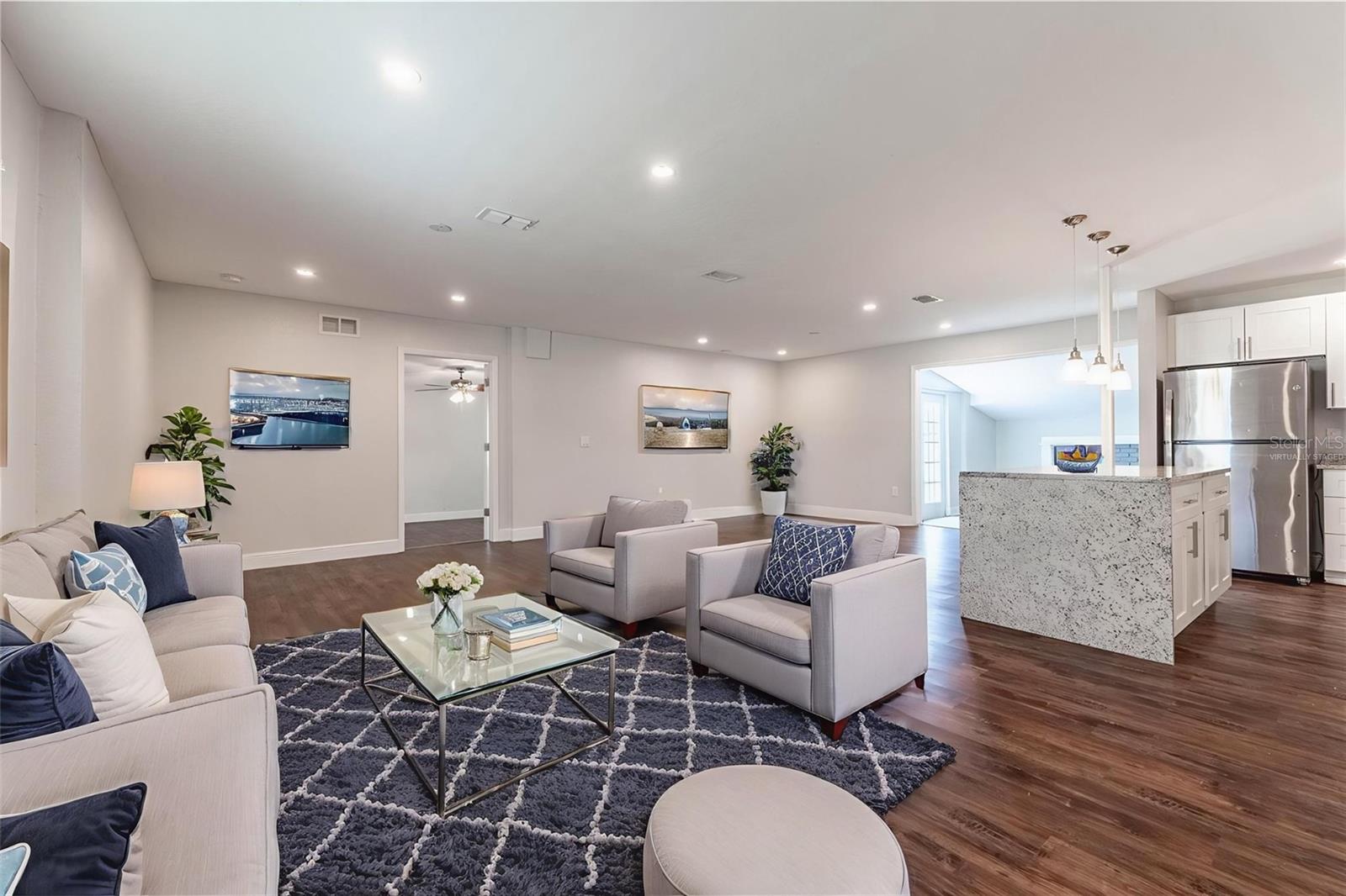 Uma ou mais fotos foram praticamente encenadas. Bem-vindo ao 5709 Ridgeway DR, Orlando, FL 32819. Esta bela casa unifamiliar de 4 quartos e 2 banheiros, construída em 1959, oferece mais de 1900 pés quadrados de espaço e fica em um lote generoso de 0,24 acres no vizinho procurado no lago Hills, de 0,24 acres. A casa possui um interior modernizado com acabamentos contemporâneos, mantendo seu apelo original em meados do século. Ao entrar, você será recebido por uma ampla sala de estar que flui perfeitamente para a sala de jantar e a cozinha totalmente atualizada. A cozinha está equipada com utensílios de aço inoxidável, bancadas em granito e armários brancos elegantes, tornando -o perfeito para cozinhar e entretenimento diários. Adjacente à cozinha, há uma sala familiar acolhedora completa com uma lareira, ideal para reunir com entes queridos durante as noites mais frias da Flórida. A casa possui uma planta baixa, proporcionando privacidade para o quarto principal, que inclui um banheiro privativo e um armário embutido. Três quartos espaçosos adicionais oferecem flexibilidade para a família, os hóspedes.
