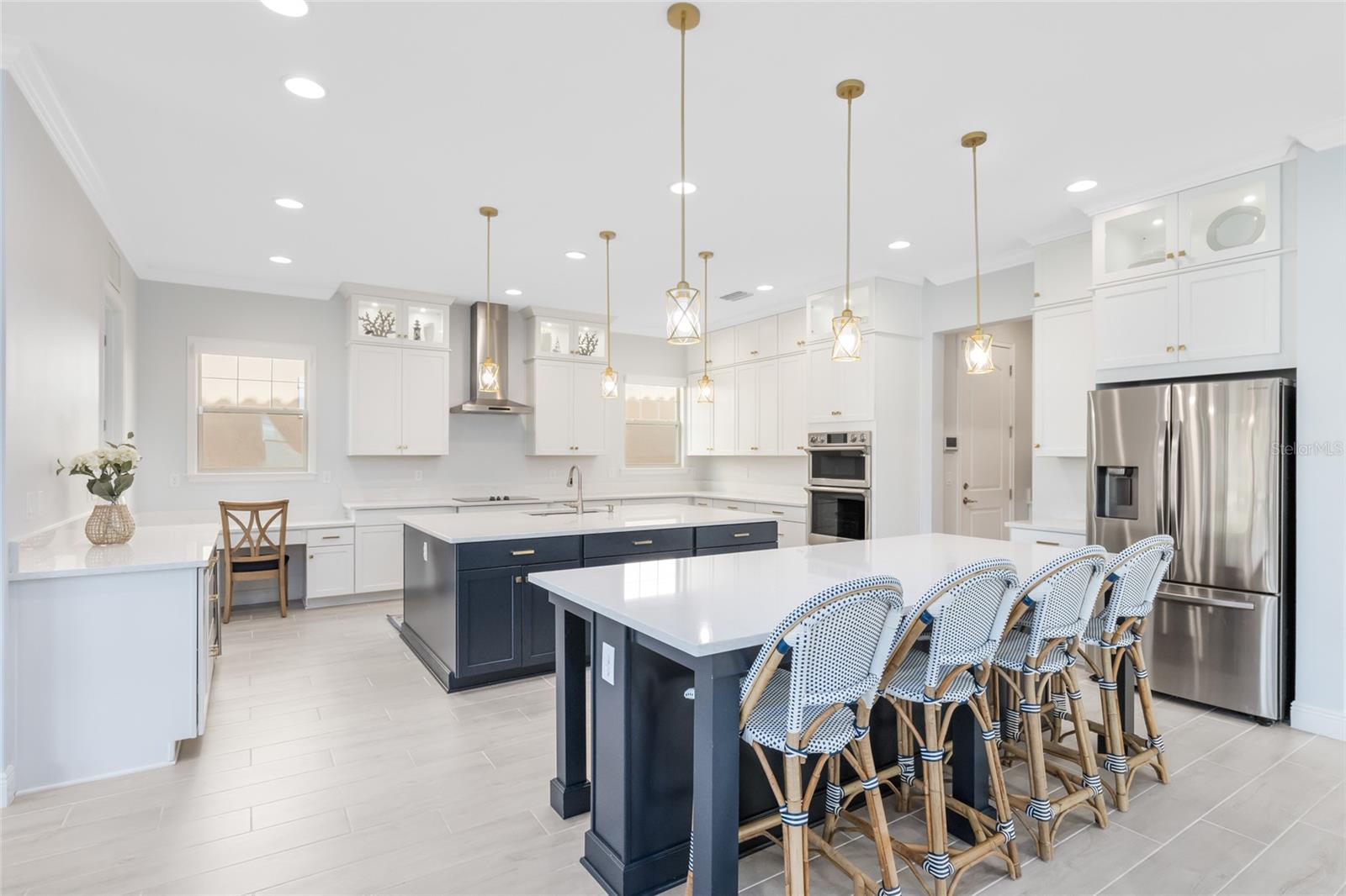 Bem-vindo à vida luxuosa em Eagle Creek, um dos condomínios de golfe fechados mais procurados de Lake Nona. Esta deslumbrante residência de 5 quartos e 5,5 banheiros combina perfeitamente elegância e conforto diário com vista para o mar, vida espaçosa e design atencioso por toda parte. Entre em uma convidativa planta aberta destacada pela luz natural, tetos planos e acabamentos de design. A cozinha gourmet possui elegantes bancadas de quartzo, fornos duplos, fogão a gás, despensa e uma grande ilha que se abre para a área de jantar e uma grande sala - ideal para reuniões e entretenimento. Uma parede de controles deslizantes de vidro estende a área de estar até a varanda coberta, onde você pode jantar ao ar livre ou relaxar com vista para as águas tranquilas. No andar de cima, a ampla suíte principal oferece vistas serenas do mar e acesso privativo a uma varanda coberta – o lugar perfeito para desfrutar do seu café da manhã ou da brisa do pôr do sol. A banheira inspirada em spa possui pias duplas, um grande chuveiro com box de vidro e piso de pedra e um espaçoso armário personalizado com embutidos. Cada quarto da casa inclui seu próprio banheiro privativo, oferecendo privacidade e conforto para a família e convidados. O loft do segundo andar serve como o melhor ponto de encontro, completo com bar e espaço para teatro ou noites de jogos. Do lado de fora, o quintal totalmente cercado possui grama artificial premium, ideal para brincadeiras de baixa manutenção e entretenimento durante todo o ano. Os residentes de Eagle Creek desfrutam de comodidades em estilo resort, incluindo piscina e área de mergulho, clube com academia e espaço para eventos, quadras de tênis iluminadas, playground, parque para cães e campos multiuso. Os amantes do golfe irão apreciar o campo de campeonato da comunidade, a loja especializada e o restaurante no local, tudo a poucos passos de distância. Localizada nas melhores escolas de Lake Nona e a poucos minutos de Medical City, lojas, restaurantes e parques temáticos, esta casa oferece luxo para toda a família em uma das principais localizações de Orlando.