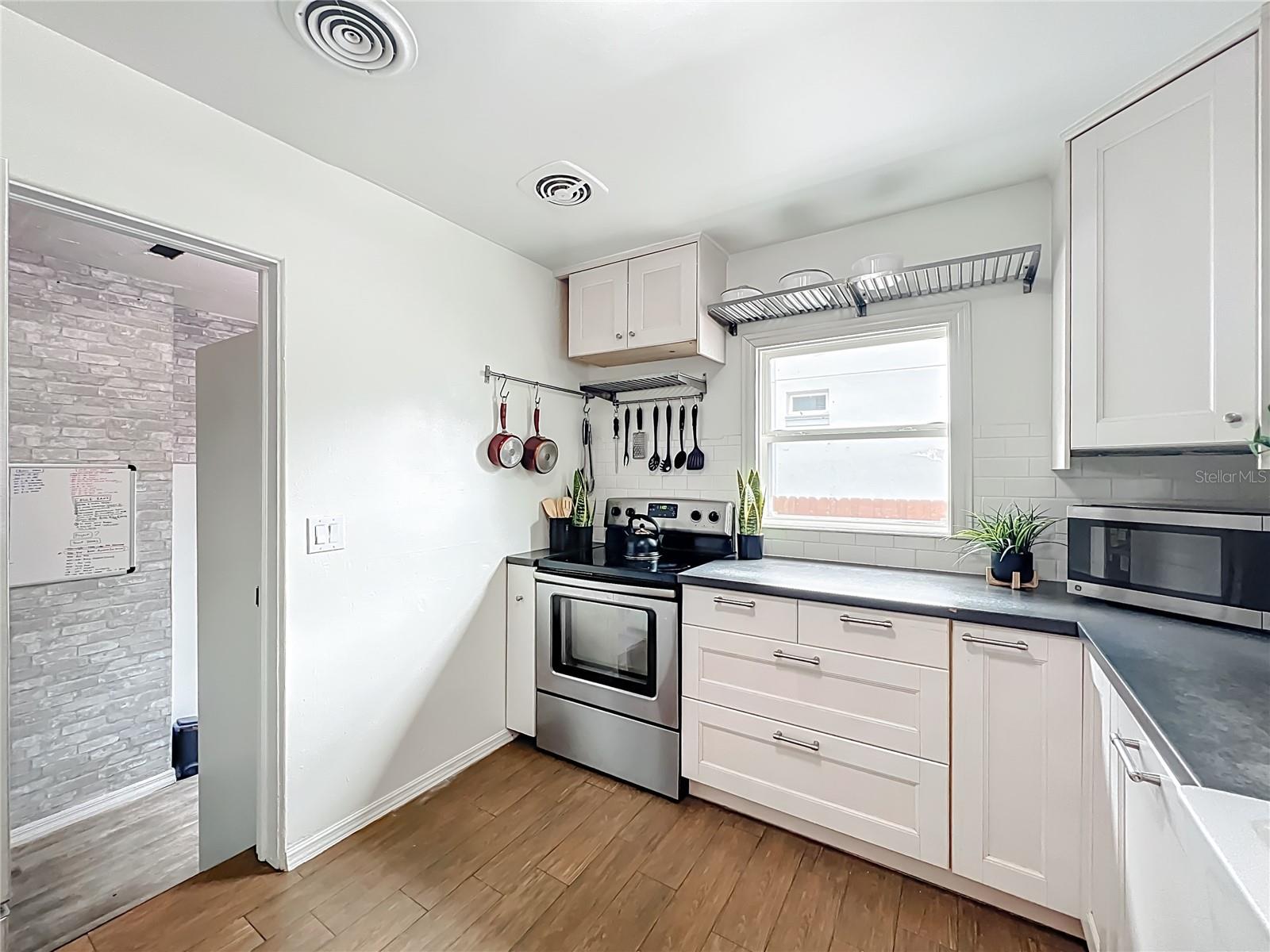 ESTE CHARMER DO PARQUE DA FACULDADE NÃO VAI DURAR! Descubra esta encantadora casa de 3 quartos e 2,5 banheiros com uma suíte bônus versátil, a poucos passos do centro histórico de College Park. Perfeitamente localizada em uma rua arborizada, esta casa de blocos de concreto de 1958, bem conservada, combina o caráter de meados do século com características modernas, incluindo um telhado de telha de 2019, NOVO isolamento soprado, cozinha atualizada e área de entretenimento ao ar livre! No interior, você encontrará 1.584 pés quadrados de espaço convidativo, realçado por pisos de carvalho originais, sancas antigas e persianas de madeira branca que adicionam um apelo atemporal. A cozinha atualizada possui fogão e geladeira de aço inoxidável, pia de porcelana, lava-louças escondida e piso de cerâmica, criando uma combinação perfeita de charme e função. O quarto principal inclui um lavabo conveniente, enquanto a garagem fechada foi transformada em uma suíte bônus privativa completa com banheiro completo, entrada francesa e sua própria unidade de ar condicionado de parede de série dividida Daikin R410A - ideal para uma suíte de hóspedes, home office ou estúdio. Aproveite o estilo de vida da Flórida o ano todo na varanda coberta dos fundos ou divirta-se sob o pátio coberto com pérgula com luzes de festa. O amplo quintal oferece ainda mais: um bar externo de madeira, amplo pátio pavimentado com fogueira, um galpão em estilo celeiro e oficina com eletricidade, e até um galinheiro com corredor fechado para os seus sonhos de fazenda no quintal. Tudo isso e SEM HOA, a poucos passos ou de bicicleta das boutiques, cafés e restaurantes de College Park, e a uma curta distância de carro da Park Avenue de Winter Park e da cena cultural do centro de Orlando. Experimente o melhor em conforto e conveniência em um dos bairros mais queridos de Orlando – este é o melhor da vida em College Park.