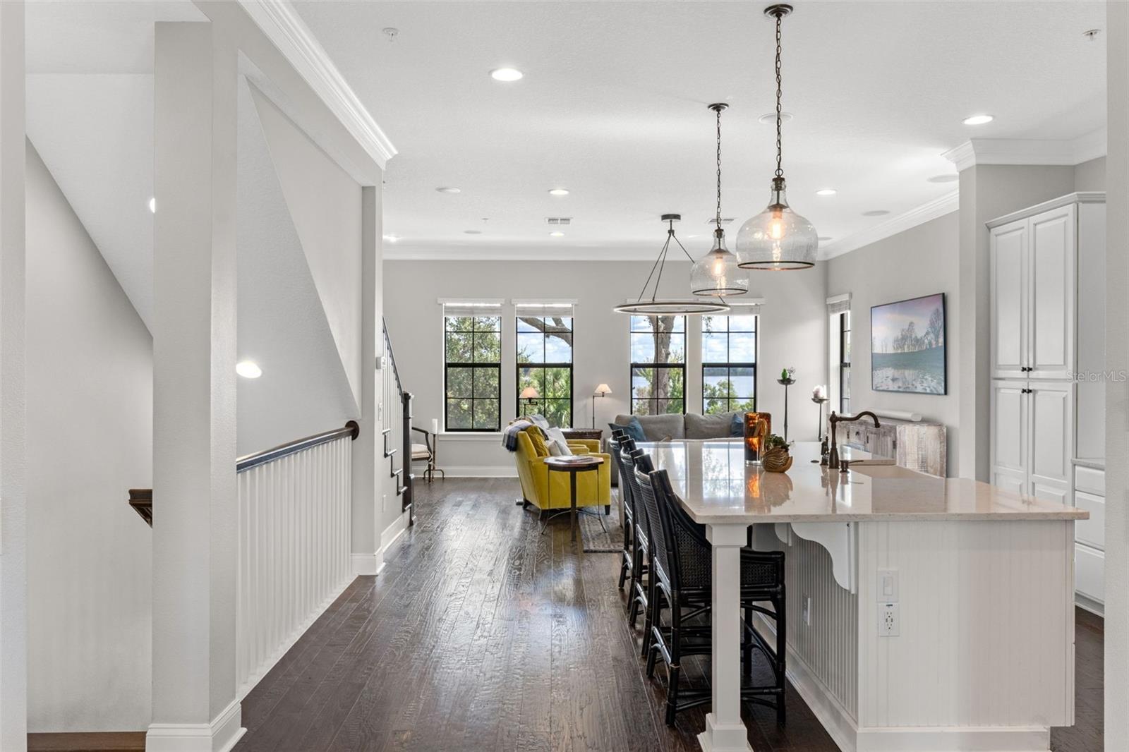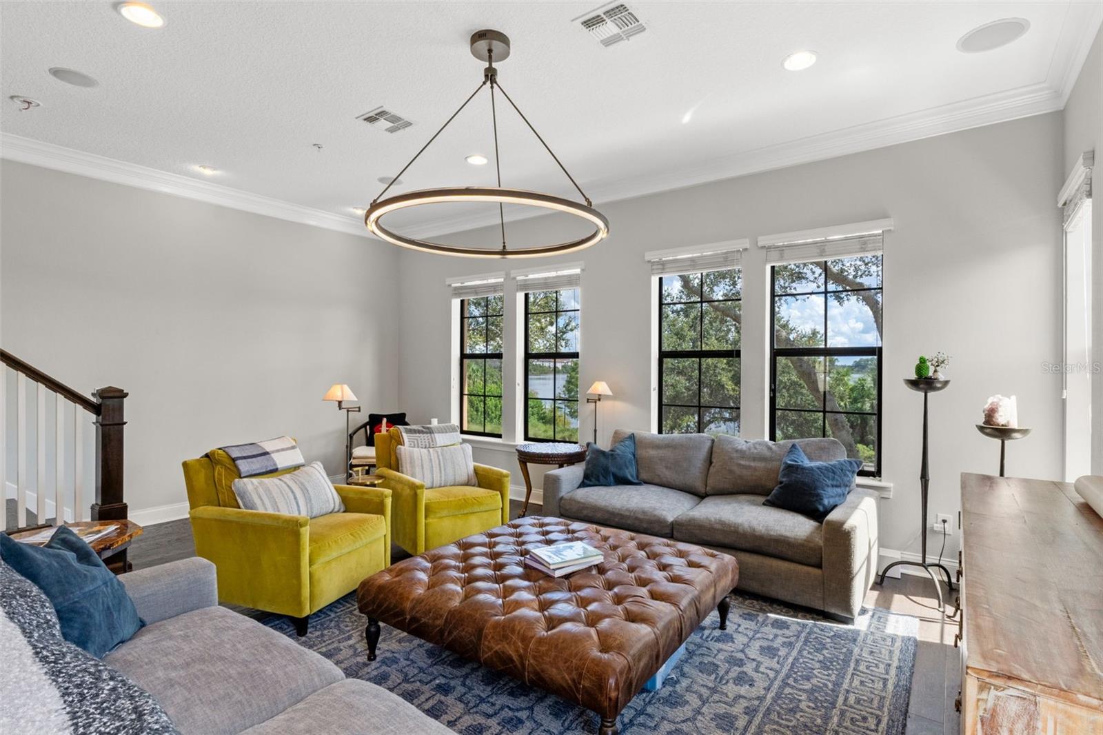 Melhoria de preço! Desfrute de um dos locais mais cobiçados do Baldwin Park, com vistas diretas e ininterruptas do Lago Baldwin e até lançamentos de foguetes em uma noite clara. Esta City Home especial é uma residência de 3 andares, 3 quartos e 3,5 banheiros que combina detalhes arquitetônicos atemporais com atualizações modernas e bem pensadas, tudo situado no coração de uma das comunidades mais tranquilas de Orlando. Entre da enorme varanda frontal para o escritório aberto no térreo, perfeito como um escritório dedicado, escritório ou suíte de hóspedes, completo com banheiro completo e estação de bebidas embutida. Subindo as escadas de carvalho, o nível de estar principal se abre para uma planta baixa de artista: uma cozinha espaçosa com armários personalizados, bancadas de quartzo e iluminação elevada flui perfeitamente para uma área de jantar bem iluminada e uma sala de estar emoldurada por altas janelas de painel duplo. O terceiro nível abriga a serena suíte principal com chuveiro de hidromassagem, pia dupla e um grande closet. Os dois quartos secundários são conectados por um conveniente banheiro Jack-and-Jill, ideal para famílias ou convidados, com um lavabo adicional no andar principal para maior comodidade. Em toda a casa você encontrará artesanato meticuloso, portas de 2,5 metros, sancas duplas, degraus de carvalho, acessórios personalizados e muito mais. A localização é verdadeiramente incomparável, situada diretamente no Blue Jacket Park, com um ponto de vista privilegiado sobre o Lago Baldwin, onde você pode assistir ao lançamento de foguetes de sua própria varanda. Você está a poucos passos do Baldwin Park Town Center, com vários restaurantes, cafés e lojas à sua porta, além de um estacionamento adicional em Philmont Lane que acrescenta uma conveniência rara. Winter Park fica a poucos minutos de distância, e a grade, as trilhas e os espaços verdes altamente acessíveis do bairro fazem deste um dos lugares mais desejáveis para se viver na Flórida Central.