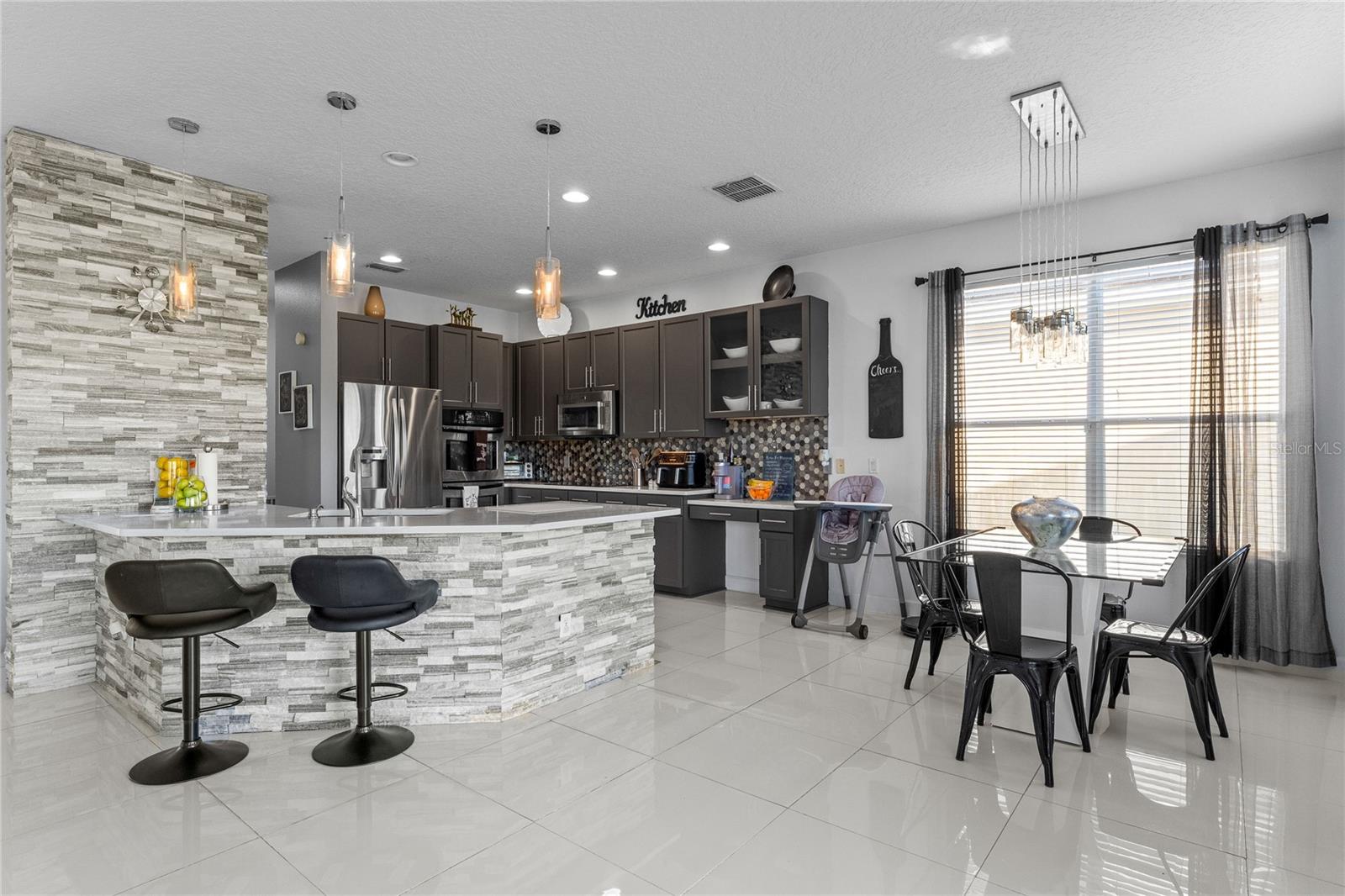 Bem-vindo a esta casa deslumbrante na tão procurada comunidade de Vista Lakes! Com 5 quartos, 3 banheiros e aproximadamente 3.007 pés quadrados de área útil, 5975 Winchester Isle Rd oferece uma combinação perfeita de conforto moderno e estilo de vida em estilo resort A planta generosa apresenta um espaçoso quarto de hóspedes no andar de baixo (ideal para a suíte da sogra ou residência multigeracional) e um banheiro recém-remodelado no primeiro andar. No andar de cima, a suíte master impressiona com closets duplos, penteadeiras para ele e para ela, banheira de jardim e chuveiro separado - tudo projetado para o luxo do dia a dia. Cozinha gourmet com armários de 42", fornos duplos, eletrodomésticos de aço inoxidável e fluxo aberto para espaços familiares e de jantar facilita o entretenimento. A linda vista para o mar a partir da varanda do segundo andar convida manhãs tranquilas ou noites tranquilas com vista para o lago. O quintal enorme está pronto para o seu oásis de piscina particular (o banheiro da piscina já está instalado!) e possui uma varanda coberta - perfeita para a vida e entretenimento ao ar livre na Flórida. Localizado em uma comunidade vibrante e rica em comodidades: piscina em estilo resort, quadras de tênis e basquete, academia, calçadas e proximidade com Lake Nona Medical City, principais atrações de Orlando e fácil acesso ao Aeroporto Internacional de Orlando. Não perca a oportunidade de chamar de sua casa pronta para morar e lindamente cuidada. Contate-nos para uma exibição privada hoje!