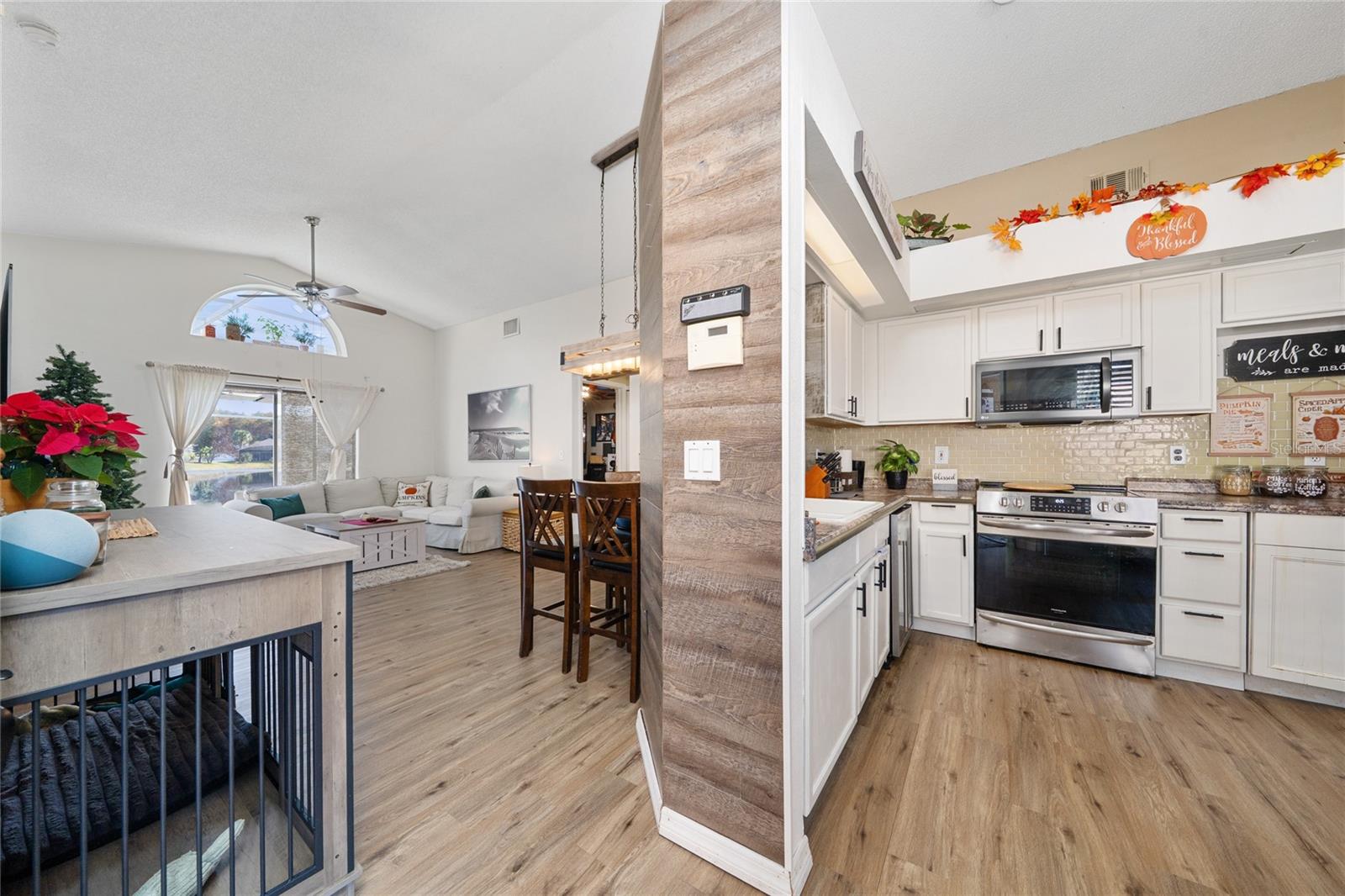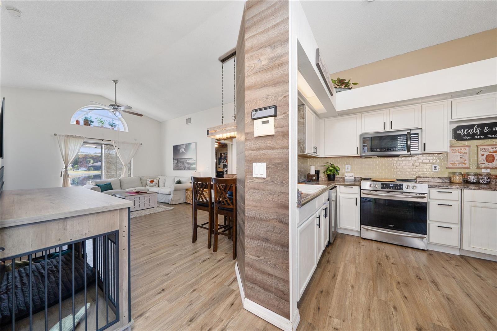 Bem-vindo a esta casa unifamiliar de 3 quartos e 2 banheiros, lindamente conservada, na desejável comunidade de Woodbridge, em Meadow Woods. Esta residência combina atualizações atenciosas, conforto e o estilo de vida quintessencial da Flórida - completa com piscina cercada por tela e jacuzzi com vista para um lago tranquilo para vistas relaxantes do mar. Entre em uma planta baixa de quartos separados projetada para conveniência e abertura. A casa possui luxuoso piso de vinil à prova d'água, oferecendo durabilidade, estilo moderno e fácil manutenção. O coração da casa é a integração perfeita da cozinha renovada e da espaçosa área de estar, criando um ambiente acolhedor e convidativo que flui diretamente para o deck da piscina e para a tranquila vista para o lago. Este layout aberto facilita a vida cotidiana e o entretenimento. A suíte principal oferece um banheiro recentemente atualizado, dando ao seu retiro privado um toque fresco e moderno. Os quartos secundários são confortavelmente dimensionados e posicionados para proporcionar privacidade. A casa foi cuidadosamente mantida, incluindo a substituição do telhado em 2013, proporcionando tranquilidade a longo prazo. Do lado de fora, a piscina e a área de jacuzzi protegidas por tela tornam-se seu oásis privado - perfeito para o café da manhã, reuniões de fim de semana ou relaxamento ao pôr do sol à beira da água. Uma garagem para dois carros e um exterior meticulosamente cuidado completam o apelo de estar pronto para morar. Localizada em uma localização privilegiada em Orlando, você está a poucos minutos da 417, Florida Turnpike, do Aeroporto Internacional de Orlando, da Cidade Médica de Lake Nona, de lojas, restaurantes e de grandes empregadores - tornando esta casa ideal tanto para conveniência quanto para estilo de vida.