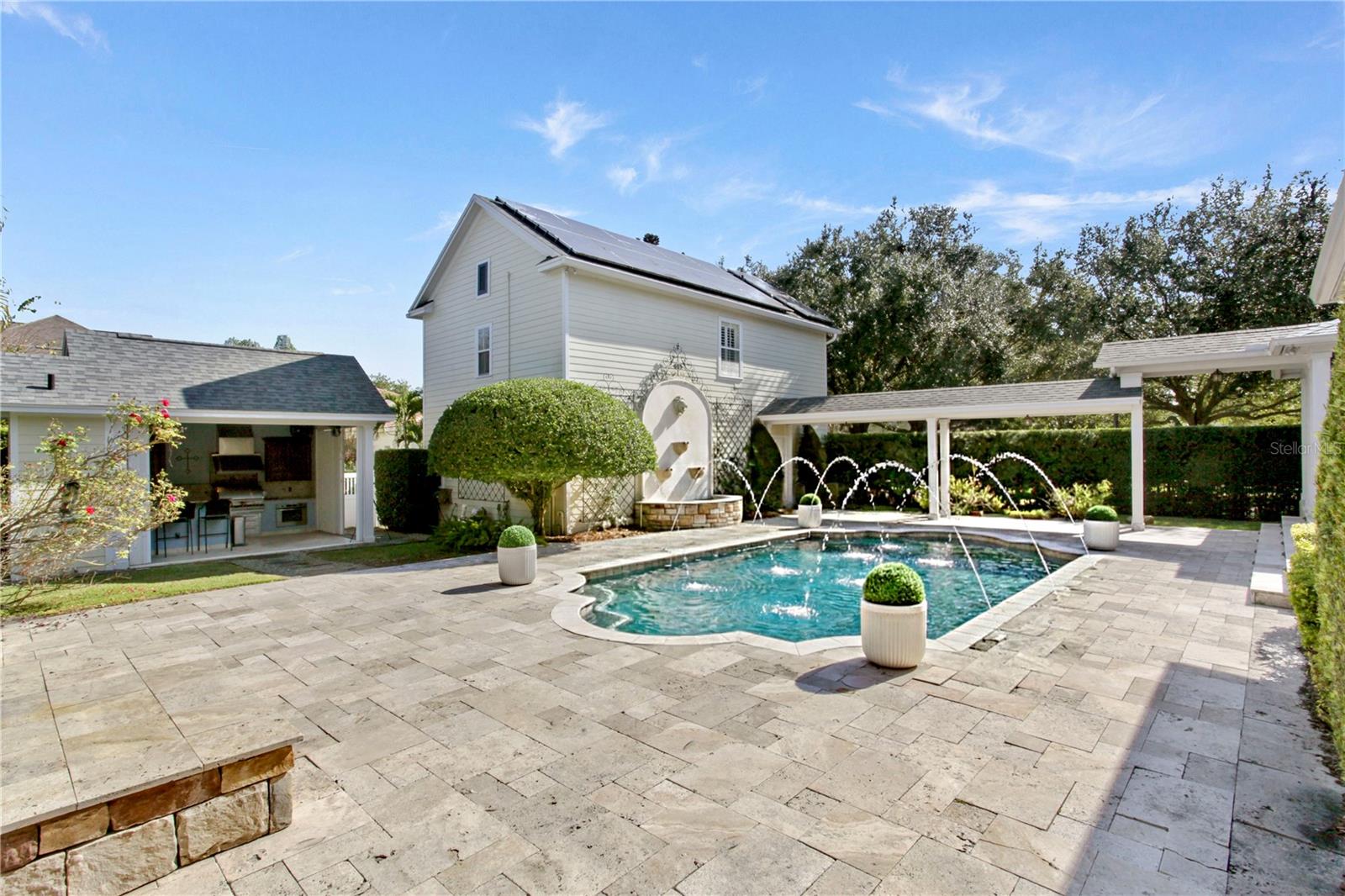 Uma ou mais fotos foram virtualmente encenadas. A vida graciosa em Baldwin Park começa nesta casa de quase 5.000 pés quadrados, 5 quartos, 4 banheiros e 3 lavabos com piscina (4 quartos, 3 banheiros, 2 lavabos na casa principal, 1 quarto, 1 banheiro no apartamento garagem). Localizado em um terreno de 0,35 acres em uma das ruas arborizadas mais desejáveis, este vitoriano com uma ampla varanda envolvente tem vista para o espaço verde e o Lago Susannah. Você é recebido na rua por uma verdadeira cerca de ferro forjado e tijolos recuperados da Filadélfia na calçada e na varanda. Portas duplas de 2,5 metros abrem para o hall de entrada de dois andares, onde os pisos de madeira atraem você. À sua direita, a sala de jantar é banhada por luz natural através de 6 janelas na saliência da torre. À esquerda, portas duplas francesas dão entrada à biblioteca com seus embutidos personalizados e teto em caixotões. Continue pelo foyer e você passará pela escada curva de madeira, sob o mezanino e entrará na sala de estar com vista para a deslumbrante área da piscina através de uma parede de janelas de dois andares. Há uma lareira a gás e um lustre espetacular. A cozinha de tamanho generoso possui um fogão a gás de 5 bocas com ventilação descendente na ilha, bancada, micro-ondas montado na ilha e forno de parede dupla. Você também vai apreciar a despensa do armário, iluminação por baixo e por cima dos armários, balcões de granito, torneira sem toque e vários expositores. A cozinha tem vista para a sala de pequenos-almoços separada e para a marquise através de arcos de pedra. A suíte principal do primeiro andar tem dimensões generosas e dá acesso direto ao pátio dos fundos e à área da piscina. O banheiro principal possui pia dupla, banheira de hidromassagem, box amplo e vaso sanitário privativo. O armário principal é enorme com um sistema de armário personalizado. 2 lavabos, 1 com acesso direto à piscina e uma lavanderia com lavadora/secadora empilhada e unidade de vapor completam os espaços do primeiro andar. No andar de cima você encontrará um grande loft, pré-instalado para um bar e uma sala de mídia, além de 3 quartos de bom tamanho. Há um espaço de torre no quarto maior que oferece vistas maravilhosas para o lago. Um banheiro Jack e Jill com penteadeira individual conecta cada um dos dois últimos quartos. Quando você sair para o pátio dos fundos, saberá que conseguiu. O enorme deck da piscina de travertino tem mais de 15 metros por 9 metros. O fundo da lagoa, piscina de água salgada acena. As fontes da piscina, bem como uma fonte de parede de terracota, oferecem um maravilhoso ruído branco. O entretenimento é fácil com a cozinha de verão independente com eletrodomésticos Bosch, incluindo forno embutido, máquina de fazer gelo, geladeira embaixo do armário, lava-louças e micro-ondas, uma linda churrasqueira com churrasqueira e exaustor, armários, balcões de granito, fiação para TVs, ventiladores e painéis deslizantes de acordeão. À esquerda da cozinha de verão você encontrará um chuveiro ao ar livre e uma banheira de piscina anexa. Acima da garagem para 3 carros, há um apartamento de 683 pés quadrados com um quarto e um banheiro. Oferece cozinha completa, persianas, lavanderia e acesso privativo. A entrada estendida oferece espaço para estacionar mais 3 veículos fora do beco. O que mais... o telhado foi substituído em 12/2021, ventiladores de teto, persianas, carpete novo, pintura interna fresca, sistema de extinção de incêndios, casa inteligente e sistema de segurança, irrigação com água recuperada. Desejáveis escolas Baldwin Park Elementary, Glenridge Middle e Winter Park High Schools. Localizado a poucos minutos do centro de Orlando, Winter Park, Aeroporto Internacional de Orlando, lojas, restaurantes e instalações médicas. Várias piscinas comunitárias, parques, academias de ginástica.