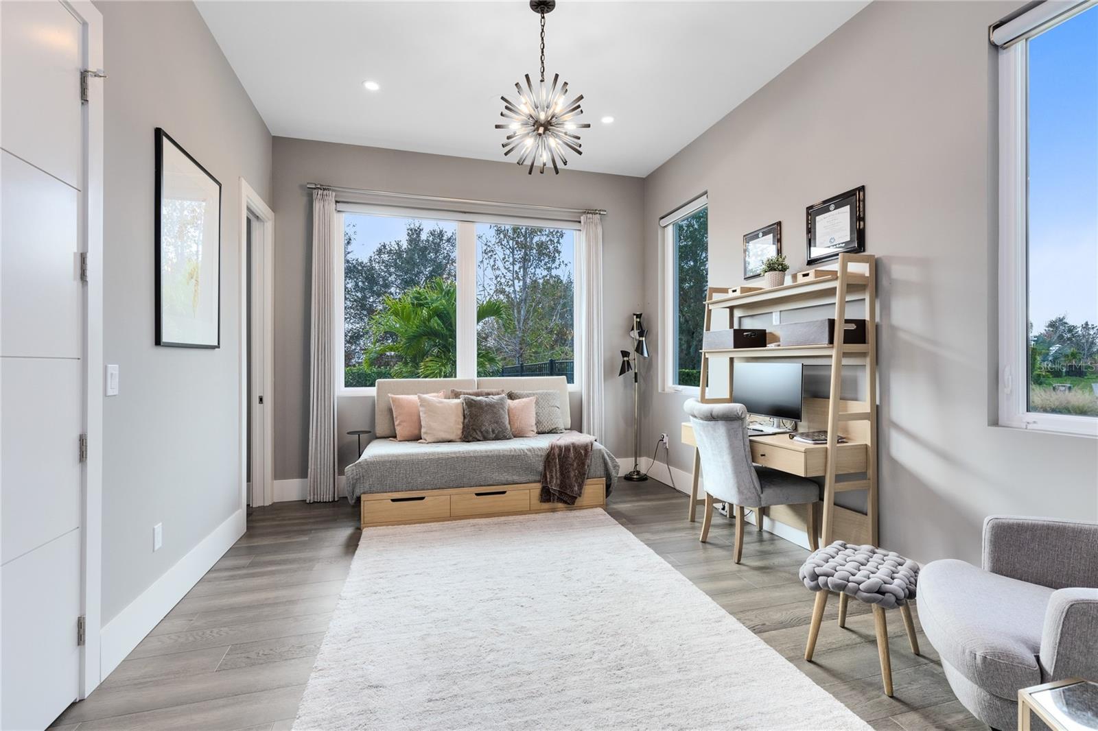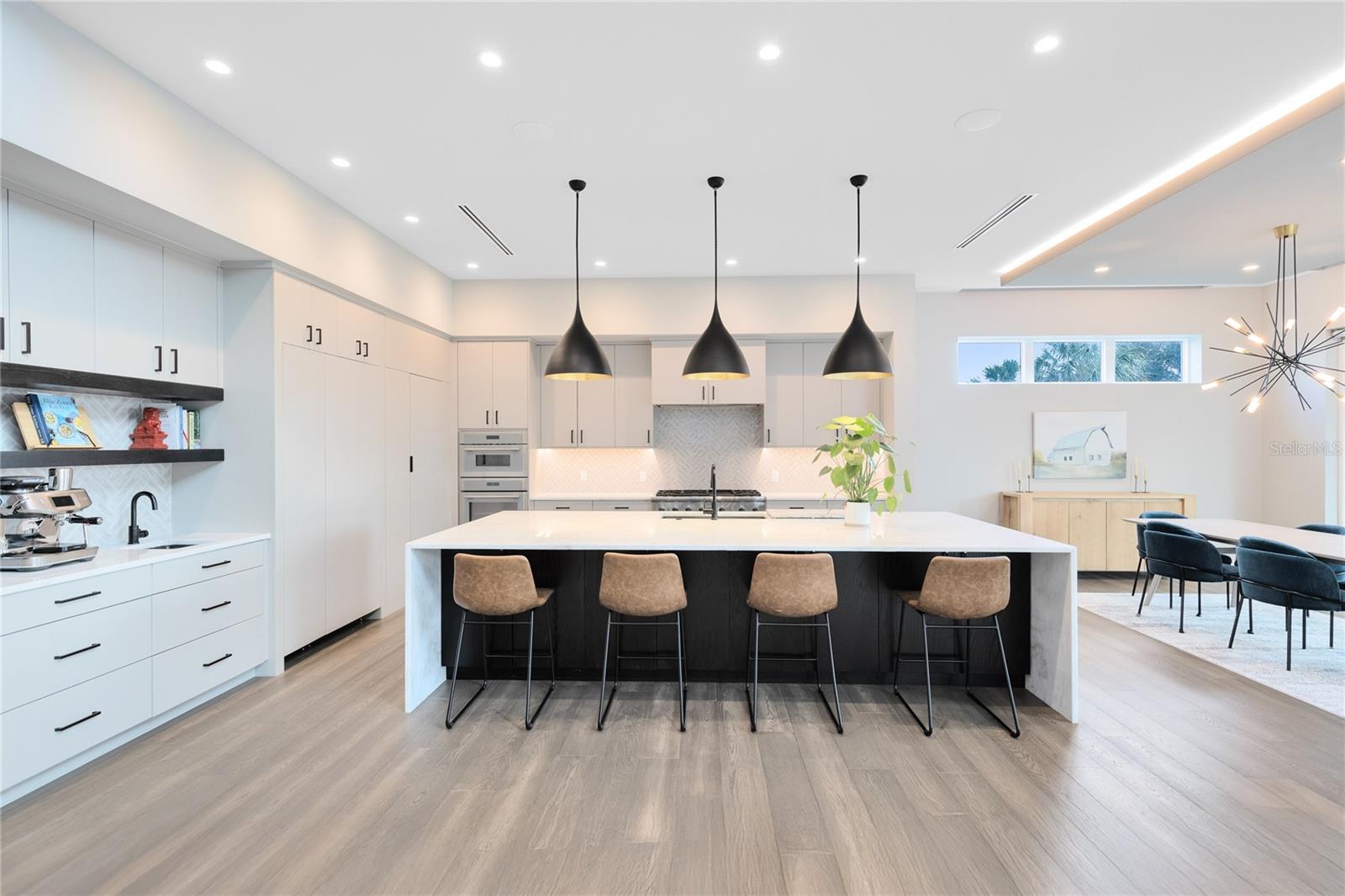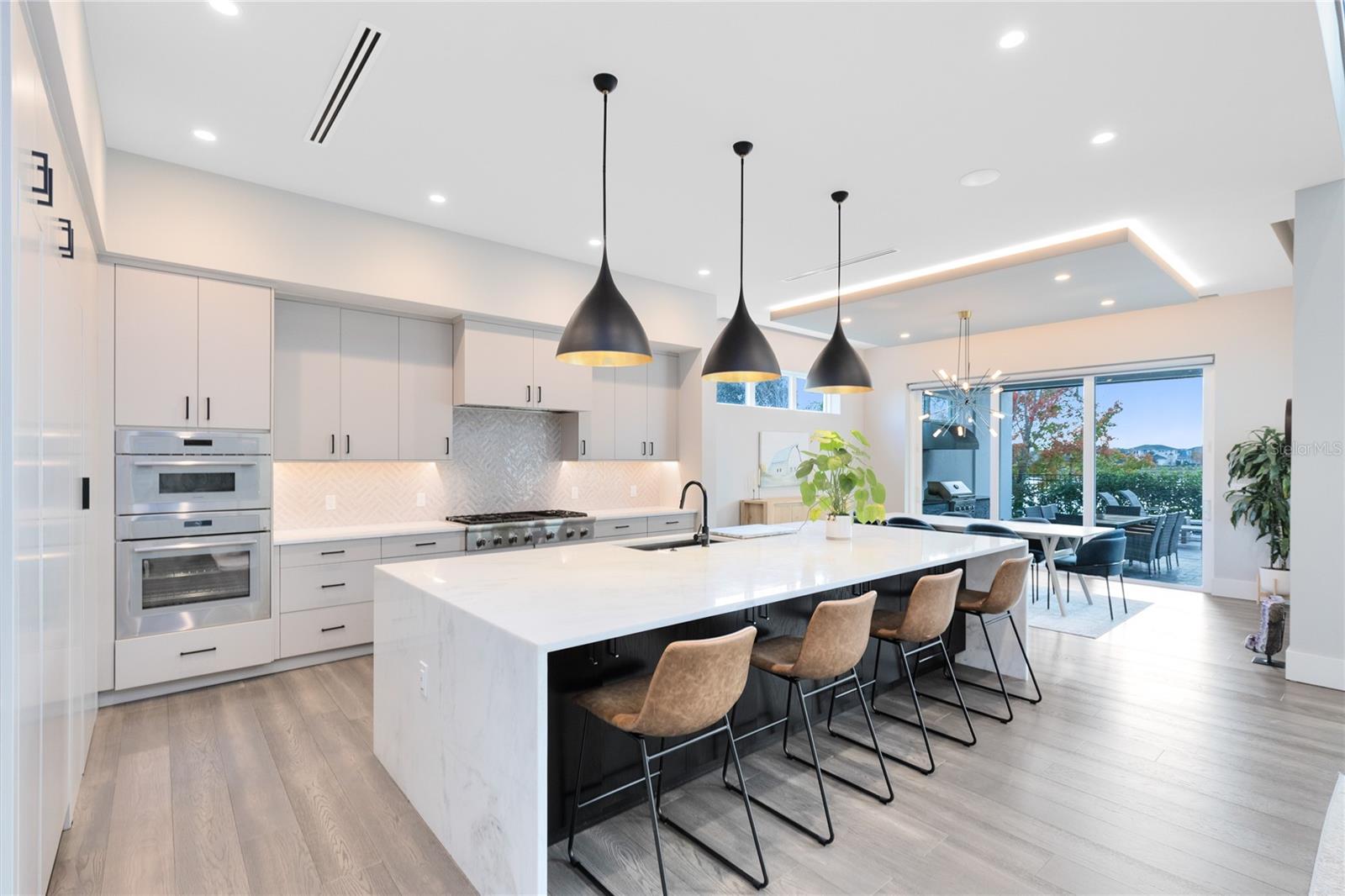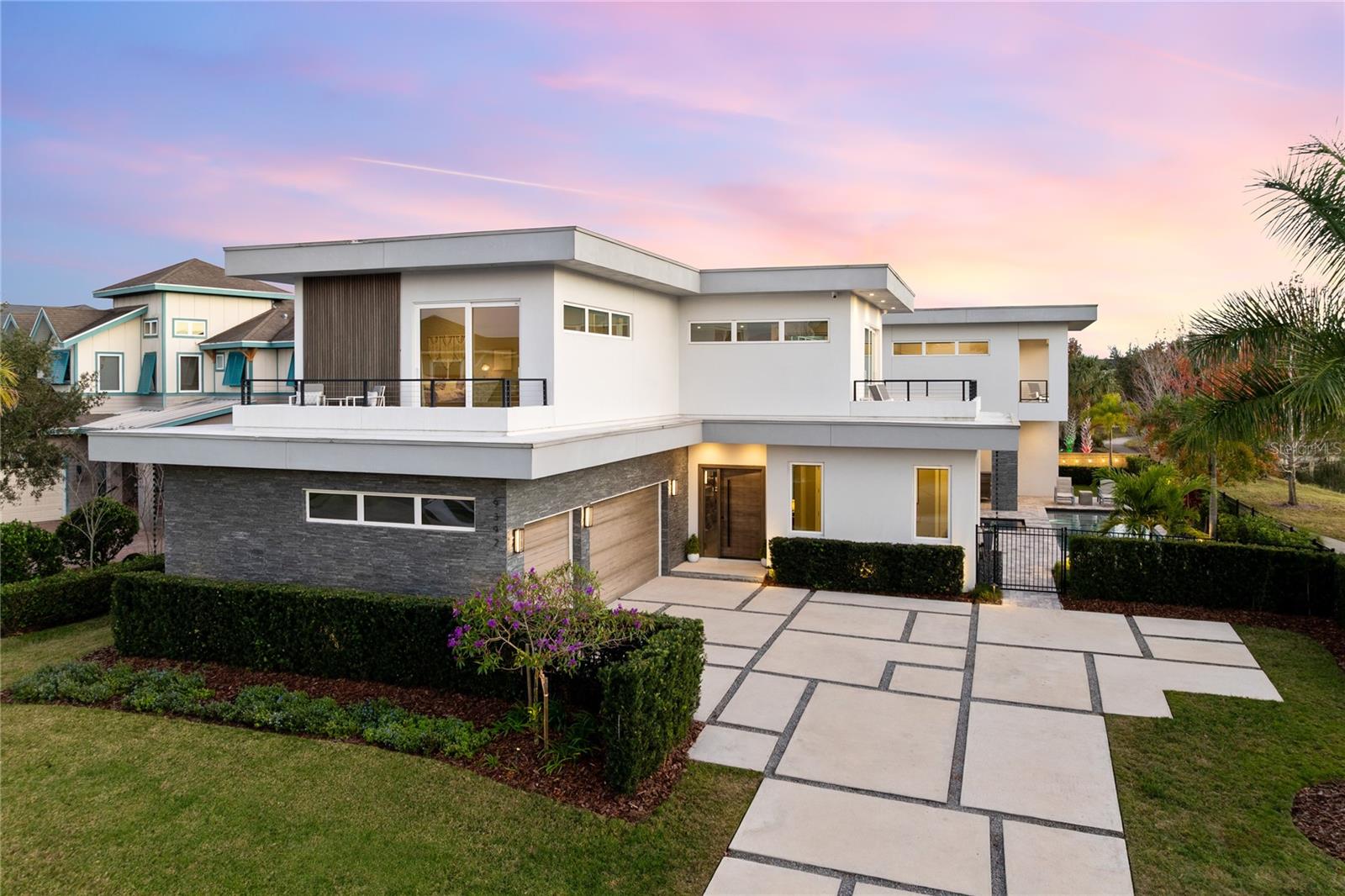 Impressionante propriedade moderna personalizada com vista para o lago no Laureate Park. Localizada em uma área residencial sem saída de esquina, no coração do Laureate Park, esta propriedade moderna construída sob medida oferece quase 4.500 pés quadrados de vida refinada com vistas deslumbrantes do lago e céus inesquecíveis do pôr do sol. Linhas arquitetônicas limpas, tetos altos, azulejos personalizados e piso de tábuas largas criam uma primeira impressão dramática, enquanto as janelas com revestimento UV enchem a casa com luz natural. As áreas de estar principais abertas são ancoradas por uma cozinha de chef com armários de madeira maciça, bancadas de pedra, uma geladeira Sub Zero oculta, eletrodomésticos embutidos, uma ilha grande e uma despensa, ideal tanto para a vida cotidiana quanto para entretenimento. Lustres e iluminação de design são apresentados em toda a casa, juntamente com hastes de cortina europeias importadas personalizadas que elevam cada espaço. O primeiro andar inclui um escritório privado que se transforma facilmente num quinto quarto, uma suite de hóspedes com casa de banho completa e uma banheira de piscina dedicada que oferece uma flexibilidade excepcional. Portas deslizantes grandes abrem para uma ampla varanda coberta com teto com painéis de madeira, iluminação embutida e ventiladores de teto. O quintal privado é um verdadeiro retiro em estilo resort com piscina aquecida de água salgada e spa, amplo deck de pavimentação, paisagismo exuberante, vistas tranquilas do lago e vistas incomparáveis do pôr do sol. Uma cozinha externa totalmente equipada com churrasqueira embutida, exaustor, balcões de pedra e assentos de bar completa o espaço e é aprimorada por um sistema Thermacell controlado por aplicativo de quintal inteiro. No andar de cima, um loft espaçoso se abre para uma varanda coberta com vista para o lago. A suíte principal é um santuário privativo com varanda própria e banheira inspirada em spa com banheira de imersão independente, box amplo de vidro, pia dupla flutuante e closet personalizado. Um aquecedor de água sem tanque dedicado atende a suíte principal e a cozinha. Os destaques adicionais incluem quartos de tamanho generoso com opções de banheiro privativo, termostatos controlados pelo aplicativo Ecobee, um sistema de filtragem de água para toda a casa com água potável em todas as torneiras, persianas motorizadas Lutron personalizadas com recursos de blackout selecionados, um sistema de som de teto com fiação profissional e uma garagem grande para três carros com piso de epóxi. Aproveite o estilo de vida do Laureate Park com acesso a piscinas estilo resort, Centro Aquático, academia LP Fit, parques, parques para cães e mais de 71 quilômetros de trilhas. Com localização central em Lake Nona, perto de Medical City, Nemours, VA Hospital, restaurantes, lojas, Aeroporto Internacional de Orlando, USTA e principais rodovias.