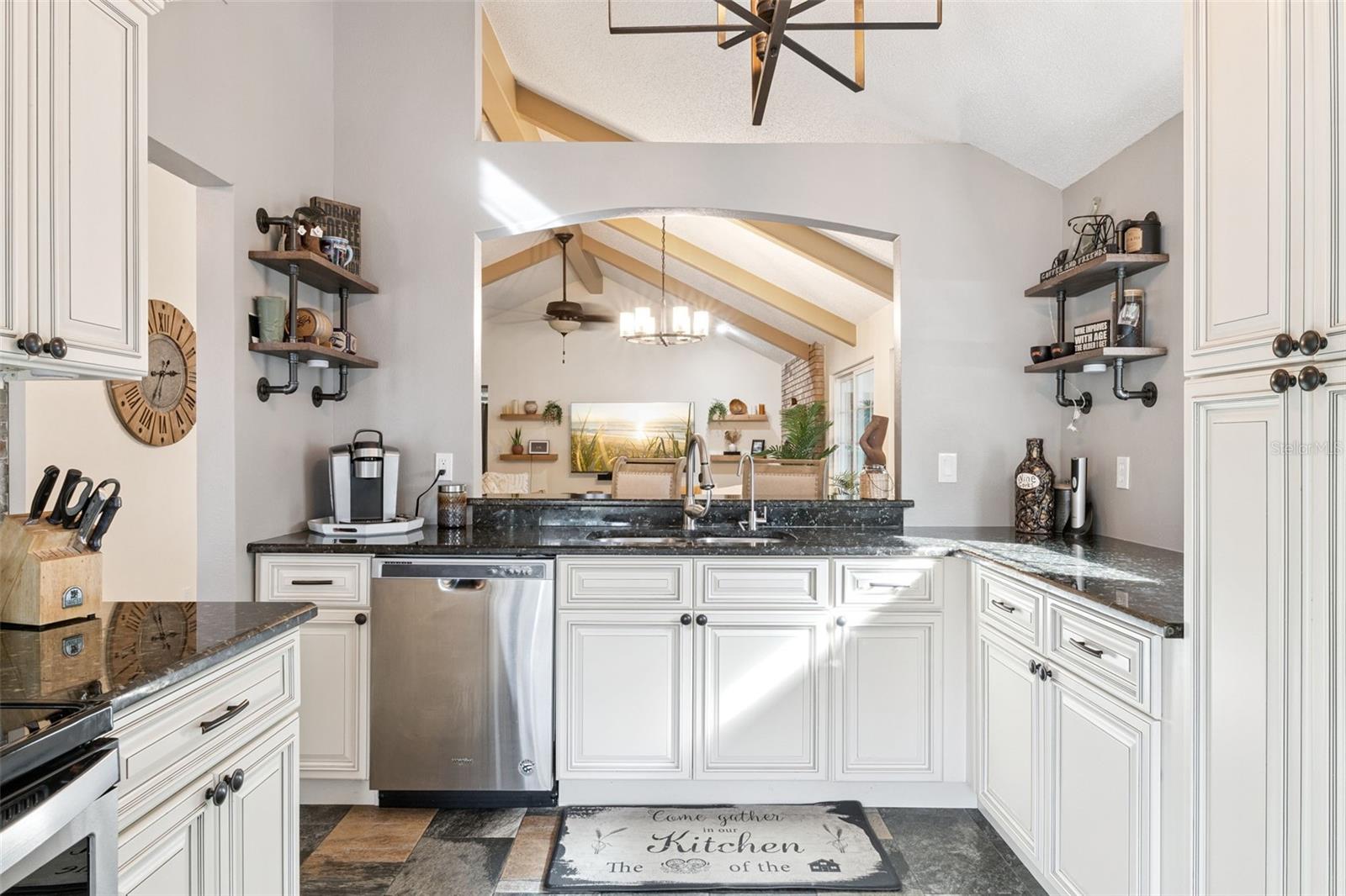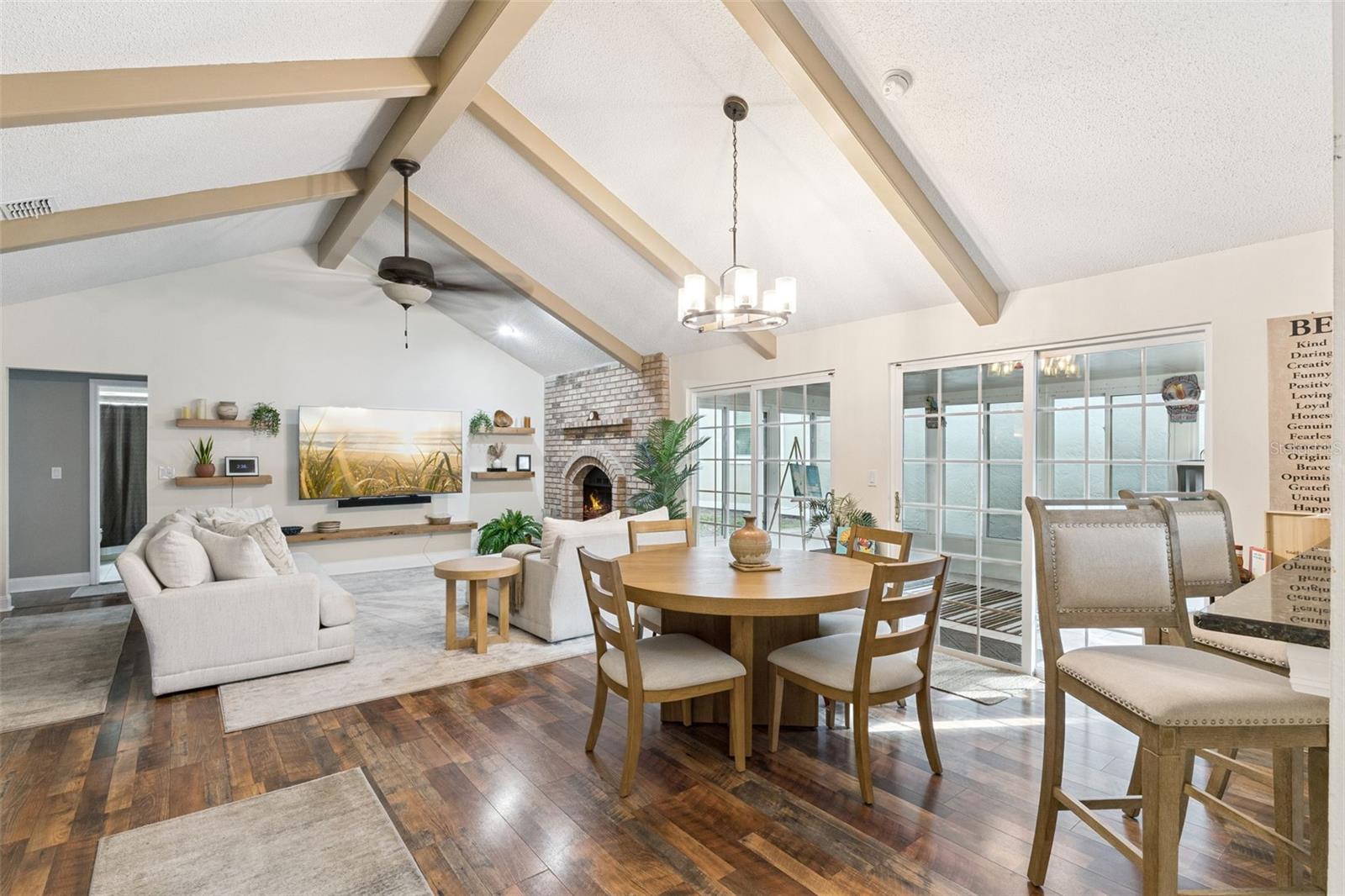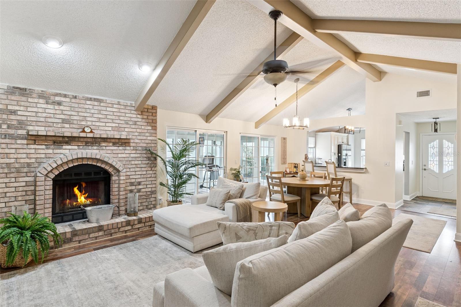 Espere ficar impressionado com esta casa de três quartos e dois banheiros remodelada com bom gosto e com vista para o Lago Farrar, localizada na próspera comunidade de Bryn Mawr, em Conway. A poucos minutos do centro de Orlando, esta atraente propriedade sem saída oferece apelo desejável e um layout altamente funcional. As áreas de estar e de jantar bem iluminadas e de conceito aberto apresentam tetos abobadados com vigas expostas e piso aconchegante de madeira vinílica em todas as áreas principais, incluindo o quarto principal. A sala é ancorada por uma encantadora lareira de tijolos a lenha, criando um ponto focal aconchegante. Portas de vidro deslizantes fornecem luz natural abundante e acesso contínuo à área externa fechada. A cozinha de conceito aberto flui facilmente para a área de estar principal e inclui bancadas de granito, despensa, armários com fechamento suave, sancas e uma paleta de cores neutras por toda parte - ideal para a vida cotidiana e para entretenimento. O quarto principal oferece vistas tranquilas para o lago, portas francesas que levam a um pátio privativo com vista para a água, um closet de designer e um banheiro privativo com pias duplas e box amplo. Um segundo quarto e banheiro completo estão convenientemente localizados ao lado da suíte principal, enquanto o terceiro quarto ou escritório fica fora da área de estar, oferecendo flexibilidade para trabalho ou convidados. Localizado a poucos minutos do Aeroporto Internacional de Orlando, Lago Conway, escolas, lojas, hospitais e muito mais. Agende hoje mesmo sua visita e seja bem-vindo à sua Nova Casa!