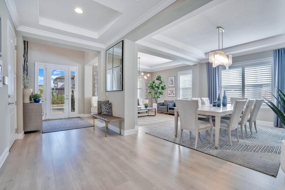Uma bela residência moderna no Preserve at Laureate Park, oferecendo a exclusividade do único condomínio fechado do Laureate Park. Construída por Taylor Morrison em 2019, esta casa cuidadosamente projetada oferece mais de 3.613 pés quadrados de área útil com quatro quartos, três banheiros e meio e uma piscina embutida. O exterior dá-lhe as boas-vindas com um alpendre coberto, linhas arquitetónicas limpas e uma garagem para três carros. O primeiro andar apresenta tetos altos e piso de vinil luxuoso por toda parte, com sancas e tetos em forma de bandeja adicionando detalhes sutis no corredor de entrada, sala de estar formal, sala de jantar e suíte principal. Um escritório ou escritório dedicado fica próximo às principais áreas de estar, ideal para trabalhar em casa ou para uso silencioso. A casa flui naturalmente dos espaços formais para a sala da família, onde uma parede com detalhes em shiplap e grandes portas nano deslizantes se abrem totalmente para a área externa, criando uma conexão perfeita entre interior e exterior. No centro da casa, a cozinha gourmet foi projetada tanto para a vida diária quanto para o entretenimento. Inclui uma ilha grande com bancada de quartzo, geladeira Sub-Zero, despensa e um recanto de cozinha que traz luz natural. A cozinha se abre diretamente para a sala de estar, facilitando a conexão, seja hospedando ou passando um tempo em casa. O quarto principal está localizado no primeiro andar e oferece um espaço privativo com tetos de bandeja, closets para ele e ela e acesso direto à varanda coberta da piscina. O banheiro principal é espaçoso e bem equipado, dando continuidade à estética moderna e limpa da casa. Também no nível principal há um espaço flexível, uma lavanderia interna com mudroom e espaço de armazenamento adicional cuidadosamente escondido sob as escadas. No andar de cima, a casa possui três quartos adicionais e uma grande área de loft. Dois dos quartos compartilham um banheiro Jack-and-Jill, enquanto o terceiro quarto tem seu próprio banheiro privativo. Os quartos acarpetados e os degraus de madeira proporcionam calor e contraste aos acabamentos modernos em todo o resto da casa. O espaço exterior foi concebido para desfrutar durante todo o ano. O quintal cercado inclui uma piscina moderna concluída em 2024, complementada por um pátio circundante, uma varanda coberta e um pátio lateral gramado. O layout permite privacidade ao mesmo tempo em que parece aberto e conectado às áreas internas. Os moradores têm acesso a quilômetros de trilhas, playgrounds e um centro aquático em estilo resort. A casa fica a menos de dez minutos do Boxi Park, do Lake Nona Town Center, da Medical City e do The Wave, com restaurantes do Laureate Park a poucos minutos de distância. O fácil acesso à rodovia 417 e a proximidade do Aeroporto Internacional de Orlando tornam esta localização tão conveniente quanto desejável. Agora disponível para exibições privadas!