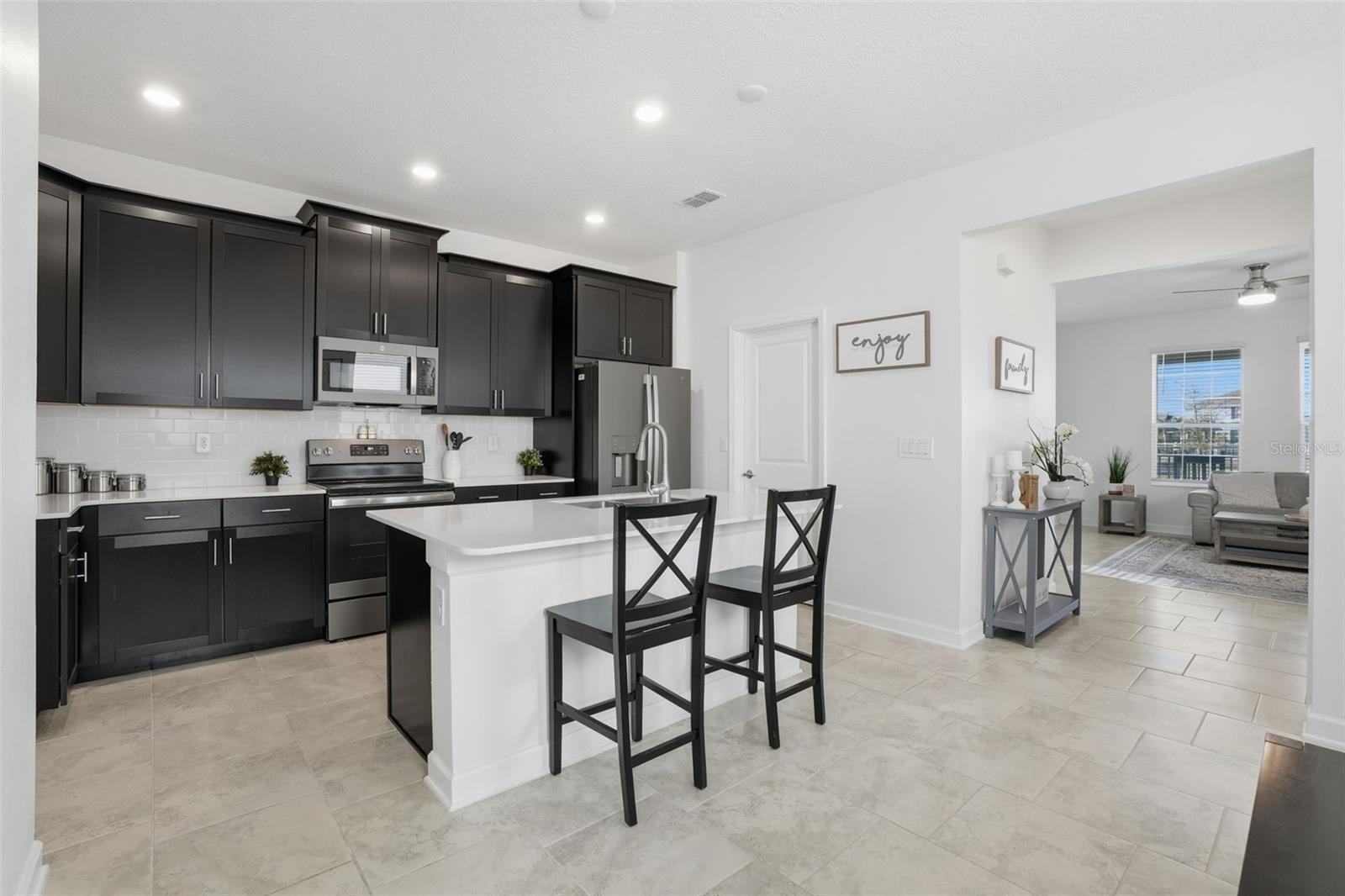 Bem-vindo ao 11723 Apostrophe Alley, uma bela e nova casa de três quartos e dois banheiros e meio localizada na tão procurada comunidade de Storey Park. Esta encantadora casa sem elevador oferece excelente apelo ao meio-fio e possui uma garagem para dois carros na entrada traseira com uma calçada de pedra para maior comodidade. Uma relaxante varanda coberta recebe você em casa e tem vista para um grande espaço verde e parque para cães, tornando-o o local perfeito para desfrutar do café da manhã ou relaxar enquanto observa os cães brincarem. No interior, a casa está repleta de luz natural e oferece um ambiente luminoso e convidativo. O primeiro andar possui piso de cerâmica, um lavabo conveniente e um layout espaçoso de conceito aberto. A cozinha é lindamente projetada com bancadas de quartzo, backsplash de azulejos de metrô, armários de madeira escura com ferragens prateadas, eletrodomésticos de aço inoxidável, uma grande ilha central, balcão para café da manhã e uma despensa grande. A cozinha flui perfeitamente para a área de jantar e vários espaços de estar, incluindo uma sala familiar adicional que é ideal para entretenimento. Uma lavanderia dedicada leva à passarela externa, perfeita para grelhar e com fácil acesso à garagem. No andar de cima, você encontrará carpetes macios, ventiladores de teto em todos os quartos e azulejos de cerâmica nas áreas úmidas. A espaçosa suíte principal oferece um retiro tranquilo e dispõe de um amplo banheiro privativo com pias duplas, banheira de jardim e chuveiro separado. Os dois quartos adicionais compartilham um banheiro estilo Jack e Jill completo com pias duplas e uma combinação de banheira e chuveiro. ESTA CASA ESTÁ ZONEADA PARA A NOVA ESCOLA DE SEGUNDO MÉDIO DE INOVAÇÃO e está localizada perto de escolas altamente conceituadas. Os painéis solares proporcionam eficiência energética e economia adicional de custos. Os residentes do Storey Park desfrutam de uma impressionante variedade de comodidades comunitárias, incluindo piscina em estilo resort, quadras de basquete e vôlei, playgrounds e trilhas para caminhada. Um novíssimo shopping center Publix fica nas proximidades, e a localização oferece excelente acesso ao Aeroporto Internacional de Orlando, ao centro de Orlando, às principais rodovias, parques temáticos e praias. Esta casa pronta para morar combina conforto, eficiência e uma localização imbatível. Agende sua exibição privada hoje.