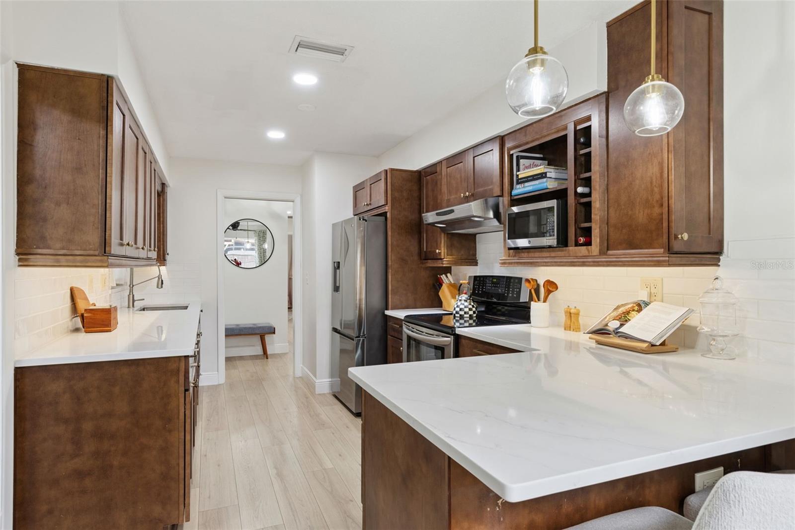 Chegue a um cenário verdadeiramente extraordinário, onde um majestoso carvalho patrimonial, com mais de 250 anos de idade, cria uma copa de tirar o fôlego e uma sensação de chegada inesquecível. Uma ampla calçada circular envolve graciosamente a árvore e oferece excepcional capacidade de estacionamento, combinando beleza e função, ao mesmo tempo em que oferece apelo de meio-fio raramente encontrado nesta área. Esta casa totalmente renovada de 3 quartos e 2 banheiros fica em mais de um quarto de acre no procurado bairro de SoDo, no bairro de Holden Shores, combinando atualizações atenciosas com calor e personalidade. No interior, o luxuoso piso de vinil é executado por toda parte e o layout oferece espaços confortáveis e bem definidos, ideais para a vida cotidiana e para entretenimento. A sala de estar é iluminada e acolhedora, enquanto a sala de jantar formal apresenta uma impressionante lareira de tijolos que acrescenta charme, textura e um ponto focal aconchegante para reuniões. A cozinha lindamente atualizada apresenta bancadas de quartzo, uma cafeteria embutida e acabamentos elegantes que elevam o espaço. Todos os três quartos são bem proporcionados e cheios de luz natural, incluindo um com armários embutidos e uma mesa ideal para um escritório doméstico ou espaço de estudo, enquanto ambos os banheiros são atualizados com bom gosto com superfícies de quartzo para uma sensação coesa e sofisticada. A lavanderia interna inclui um armário embutido que serve como uma conveniente estação dobrável junto com uma pia, e a garagem com entrada lateral para dois carros oferece armários embutidos para excelente armazenamento. Saia para um quintal que parece um resort privado, com uma piscina lindamente projetada com spa integrado, amplo espaço no deck para relaxar e várias áreas para sol e sombra, além de uma varanda de travertino com telas retráteis motorizadas que ampliam o espaço ao ar livre para diversão durante todo o ano. Um galpão de armazenamento acrescenta conveniência, e árvores frutíferas maduras, incluindo abacate Haas, manga e limão ponderosa, melhoram a paisagem e trazem o verdadeiro sabor da vida na Flórida. As principais atualizações do sistema incluem um novo telhado (novembro de 2025), A/C (2021), aquecedor de água (2021) e um re-pipe para toda a casa (2021), junto com recursos de casa inteligente, como um abridor de porta de garagem WiFi, fechaduras de porta WiFi e câmeras circulares. Localizada a poucos minutos do centro de Orlando, das lojas e restaurantes SoDo, dos principais hospitais e das principais rodovias, esta casa oferece o equilíbrio perfeito entre tranquilidade e conveniência.