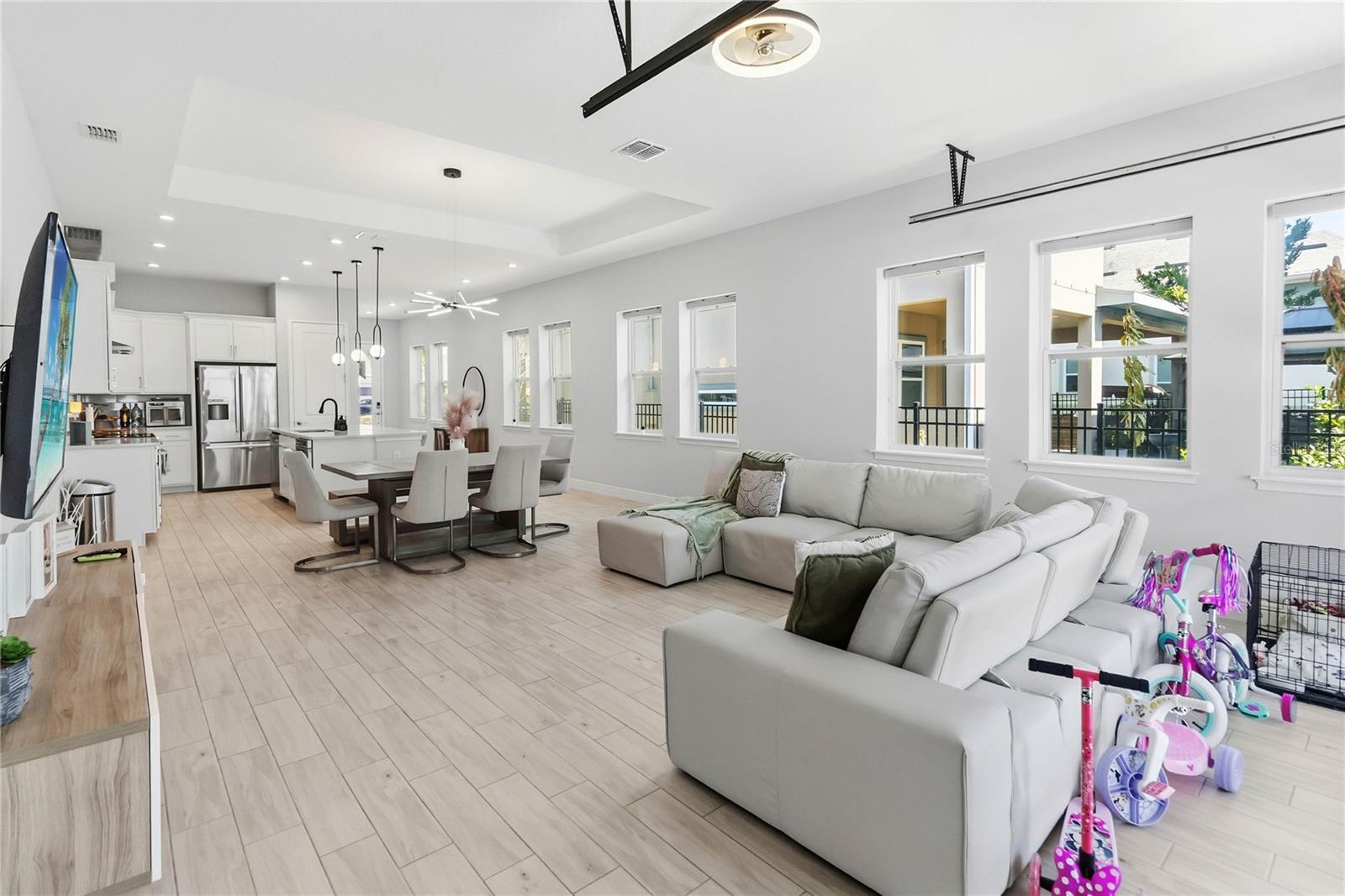 Bem-vindo ao 8338 Modiano Street, uma residência lindamente atualizada no coração do Laureate Park, que oferece a combinação perfeita de estilo, conforto e vida no Lago Nona. Uma charmosa varanda frontal dá o tom com apelo convidativo ao meio-fio, enquanto no interior, tetos altos, luz natural abundante e piso de cerâmica elegante criam uma atmosfera aberta e iluminada. O espaço principal flui perfeitamente para a varanda coberta através de amplas portas de vidro, proporcionando uma conexão interna e externa ideal para entretenimento ou vida cotidiana. No centro da casa, a cozinha gourmet impressiona com um backsplash personalizado, generosas bancadas de granito, uma ilha grande com assentos, eletrodomésticos premium de aço inoxidável, incluindo um micro-ondas embaixo da bancada, e armários estendidos para armazenamento excepcional. A suíte principal privativa do primeiro andar oferece um retiro tranquilo, cuidadosamente separada dos quartos secundários, e possui um espaçoso closet, acesso direto ao ar livre e um banheiro inspirado em spa com pias duplas, um box amplo sem moldura e um banheiro privativo. Os quartos adicionais são de tamanho generoso, com flexibilidade para hóspedes, família ou escritório doméstico, e compartilham um banheiro completo bem equipado. Saia para desfrutar do pátio coberto e do estilo de vida descontraído da Flórida durante todo o ano. Localizado dentro do Laureate Park, os moradores têm acesso ao Centro Aquático, instalações de ginástica, playgrounds, parques para cães, jardins comunitários e quilômetros de trilhas panorâmicas para caminhada e ciclismo. A poucos minutos do Lake Nona Medical City, do Nemours Children’s Hospital, do VA Hospital, do USTA National Campus, de restaurantes, lojas e das principais rodovias, esta casa oferece uma oportunidade excepcional de desfrutar de uma das comunidades mais vibrantes e conectadas de Orlando.