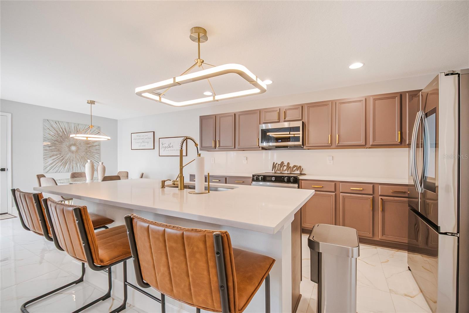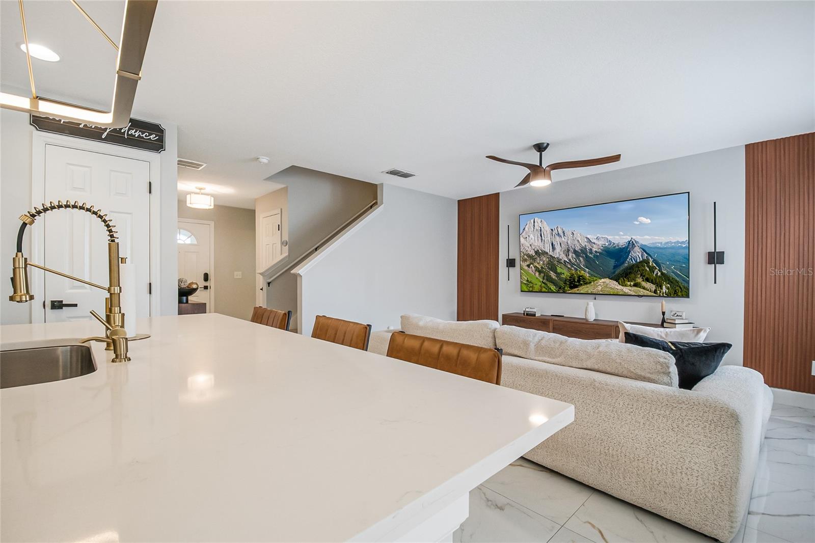 A partir do momento em que você chegar, você será atraído pela encantadora atratividade do meio-fio, com uma aconchegante varanda frontal coberta e um jardim frontal lindamente cercado que oferece privacidade e um espaço convidativo para relaxar. Entre no estilo e na sofisticação nesta casa totalmente renovada de 3 quartos e 2,5 banheiros que parece saída de uma revista de design. A entrada acolhedora inclui um lavabo conveniente e um espaço flexível de escritório/escritório, ideal para trabalho remoto ou um retiro tranquilo. Um pouco além, a casa se abre para uma área de estar, jantar e cozinha de conceito aberto, iluminada e arejada, perfeitamente projetada para uma vida moderna e entretenimento sem esforço. O primeiro nível apresenta um novo e deslumbrante piso de porcelanato (2024), oferecendo a aparência luxuosa do mármore com durabilidade, fácil manutenção e um fluxo contínuo em todos os principais espaços residenciais. O acabamento brilhante reflete lindamente a luz natural, realçando a sensação aberta e elegante da casa. A cozinha é verdadeiramente o coração da casa, cuidadosamente atualizada com elegantes bancadas Corian (2024) que proporcionam um espaço generoso de preparação e uma estética limpa e contemporânea. Armários abundantes com ferragens atualizadas oferecem amplo armazenamento, enquanto a ilha espaçosa com assentos de bar cria o local de encontro perfeito para refeições casuais ou entretenimento de convidados. Os aparelhos Samsung de aço inoxidável com eficiência energética (2025) combinam desempenho moderno e estilo. Portas de vidro deslizantes ao lado da área de estar levam a um aconchegante pátio privado, criando um estilo de vida ideal para ambientes internos e externos. No andar de cima, três quartos espaçosos e dois banheiros completos proporcionam conforto e funcionalidade para familiares ou convidados. Aproveite a conveniência adicional de uma lavanderia no andar de cima, cuidadosamente localizada perto dos quartos para facilitar a vida cotidiana. Grandes melhorias com maior tranquilidade, incluindo um telhado mais novo (HOA substituído em 2023) e aquecedor de água (2024). A entrada traseira leva a uma garagem completa com tomada de carregamento para veículos elétricos. Meticulosamente atualizada e verdadeiramente pronta para morar, esta casa oferece a combinação perfeita de conforto, elegância e atualizações inteligentes. Avalon Park incorpora um verdadeiro senso de comunidade. Os moradores desfrutam de uma variedade de comodidades, incluindo um centro da cidade com lojas, restaurantes, escolas de primeira linha, parques para cães e cafés, perfeitos para passeios de lazer e reuniões casuais. Os entusiastas da natureza apreciam os numerosos parques, percursos pedestres e espaços verdes, proporcionando amplas oportunidades para atividades ao ar livre e relaxamento. Além disso, com fácil acesso às principais rodovias e parques temáticos. Avalon Park oferece conveniência para quem viaja e para quem deseja explorar tudo o que Orlando tem a oferecer. Não perca a oportunidade de possuir esta joia lindamente atualizada e pronta para morar. Agende sua exibição privada hoje e experimente você mesmo!