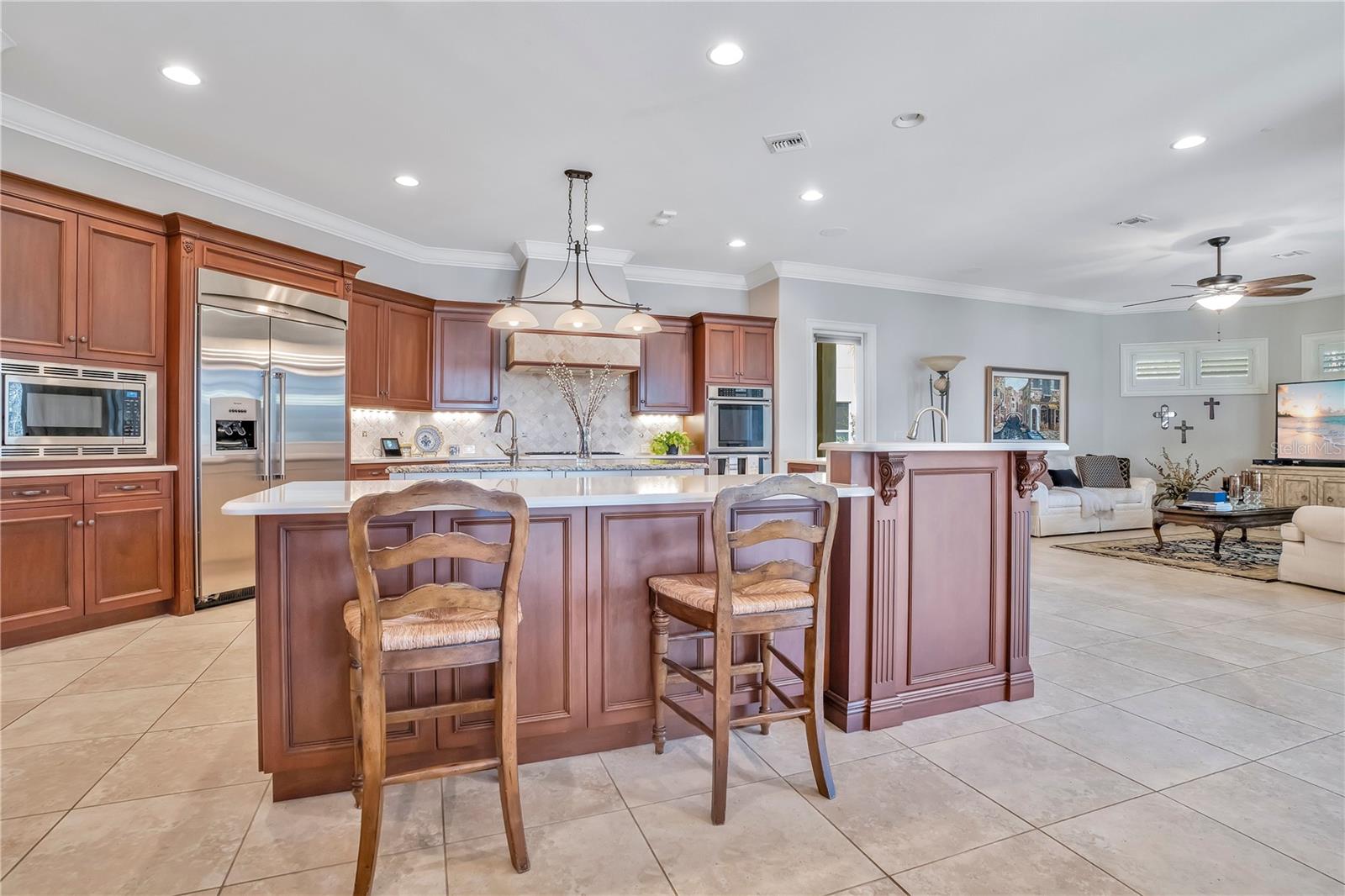 Abrangendo quase 4.900 pés quadrados, esta excepcional propriedade personalizada de estilo mediterrâneo oferece 4 quartos, 4 banheiros completos e 2 lavabos em um exclusivo condomínio fechado à beira-mar com apenas 66 casas. Construída por Jones Clayton, esta residência combina arquitetura atemporal com conforto moderno e design atencioso. Uma impressionante entrada de porta dupla em mogno e vidro dá as boas-vindas a um grande hall de entrada, ladeado por uma imponente biblioteca com embutidos personalizados e um escritório privado fechado por elegantes portas francesas. A sala de jantar formal apresenta tetos em caixotões e acesso contínuo à despensa do mordomo (com uma máquina de lavar louça adicional) e à sala de vinhos dedicada - ideal para entreter e hospedar reuniões memoráveis. No coração da casa, a ampla cozinha de conceito aberto foi projetada para funcionalidade e estilo. Possui eletrodomésticos Thermador de aço inoxidável premium, fogão embutido, fornos duplos, bancadas em granito, armários de madeira personalizados e uma ilha generosa com pia de preparação. Tetos de três metros melhoram a sensação luminosa e arejada, enquanto a grande sala adjacente se abre sem esforço para o espaço ao ar livre através de portas deslizantes de grandes dimensões. A suíte principal do primeiro andar é um verdadeiro refúgio, oferecendo persianas com controle remoto, closets duplos, banheira inspirada em spa e sala de estar privativa com vista tranquila para o mar. Um espaço anexo para exercícios ou bem-estar adiciona flexibilidade à suíte. Uma suíte separada para hóspedes ou sogros no primeiro andar oferece conforto e privacidade para estadias prolongadas. No andar de cima, que também é acessível através do teleférico elétrico Acorn fabricado no Reino Unido, tem dois quartos com banheiro privativo adicionais e uma sala de mídia, criando o ambiente perfeito para a vida familiar ou de convidados. Em toda a casa, você encontrará armazenamento abundante, sistema de aspiração central, lavanderia espaçosa e despensa dedicada para maior comodidade. Saia para o seu oásis de quintal em estilo resort, com uma varanda coberta com lareira, duas estações de grelhados ao ar livre e uma cozinha externa totalmente equipada - perfeita para entretenimento durante todo o ano. A piscina e spa de água salgada com aquecimento solar têm vista para o Lago Hart, oferecendo vistas deslumbrantes do pôr do sol e um ambiente tranquilo. Os destaques adicionais incluem garagens duplas para dois carros separadas por um pátio privado com oficina e espaço de armazenamento, detalhes em sancas e detalhes arquitetônicos cuidadosos por toda parte. Idealmente localizada na muito procurada área de Lake Nona/Medical City, esta casa fica a poucos minutos do Aeroporto Internacional de Orlando, do centro de Orlando, das principais atrações e das belas praias da Flórida. Esta propriedade extraordinária oferece luxo, conforto e localização em um pacote notável. Agende sua exibição privada hoje e experimente você mesmo.