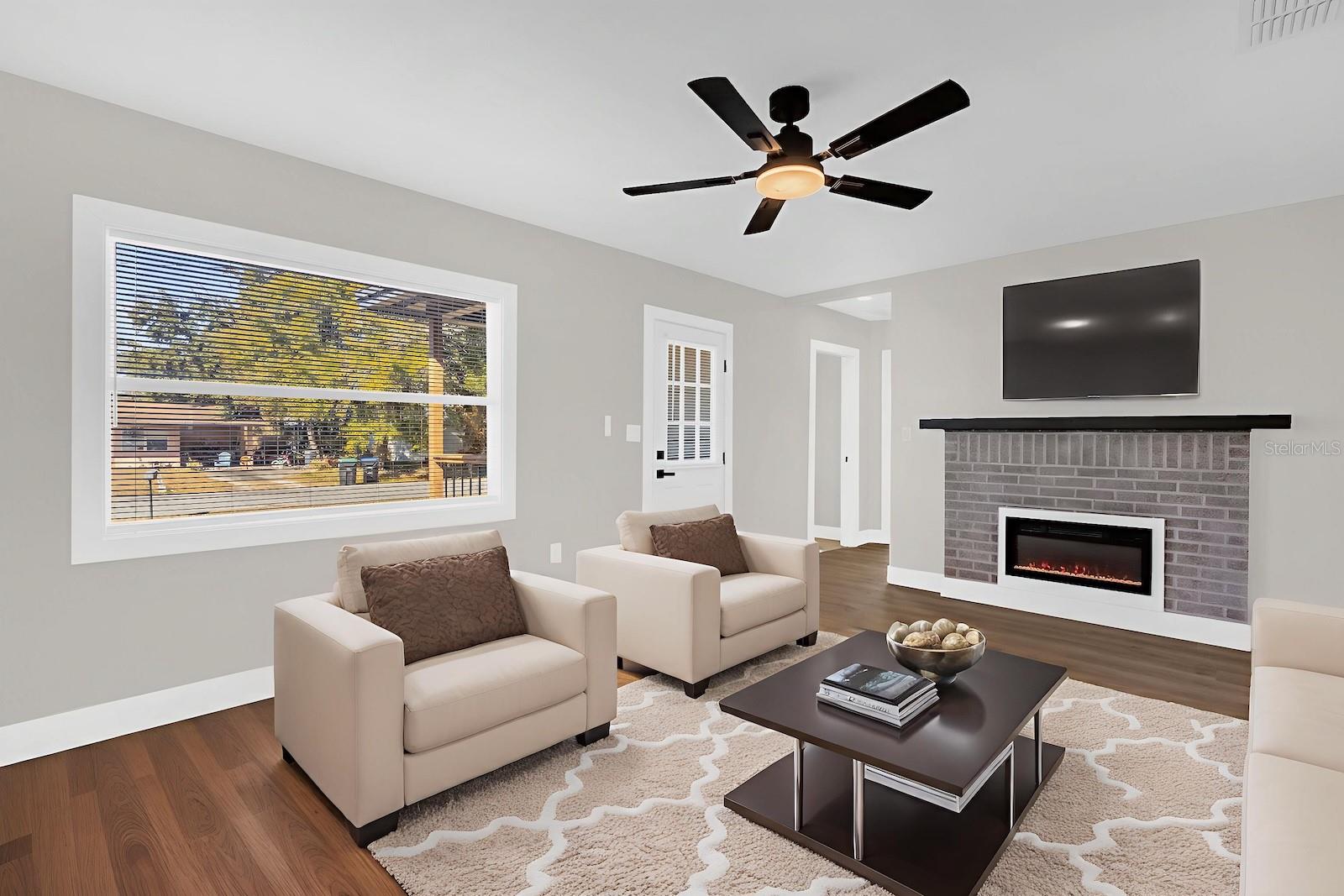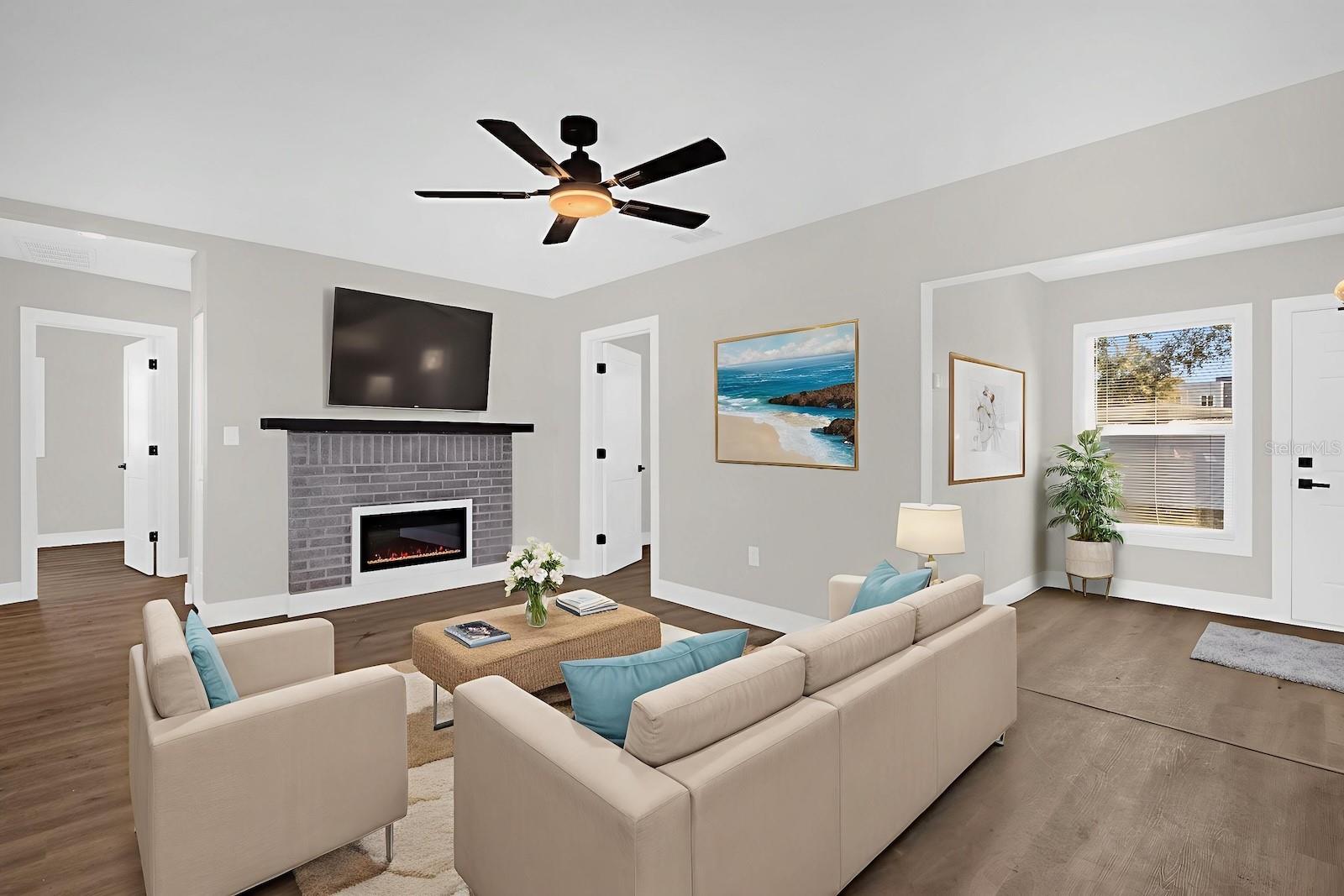 Uma ou mais fotos foram virtualmente encenadas. Casa recém-atualizada em Orlando com 3 quartos e preço de venda! Esta espaçosa propriedade foi completamente renovada e apresenta um telhado e ar condicionado totalmente novos, juntamente com pintura interior e exterior fresca. A casa apresenta luxuoso piso de pranchas de vinil à prova d'água, complementado por rodapés de 5 ”, novas portas internas, acessórios modernos e iluminação atualizada. A cozinha totalmente nova oferece armários de madeira maciça com fechamento suave, um pacote de eletrodomésticos de aço inoxidável, backsplash de designer e acessórios contemporâneos. O banheiro totalmente reformado possui piso de porcelanato, chuveiro com azulejos subterrâneos, pia nova, vaso sanitário e torneiras atualizadas. Ao entrar, você é recebido em uma sala de estar iluminada, destacada por uma lareira elétrica decorativa, que flui perfeitamente para a cozinha e área de jantar traseira, e continua em um espaço adicional de estar ou de entretenimento, ideal para reuniões e vida flexível.