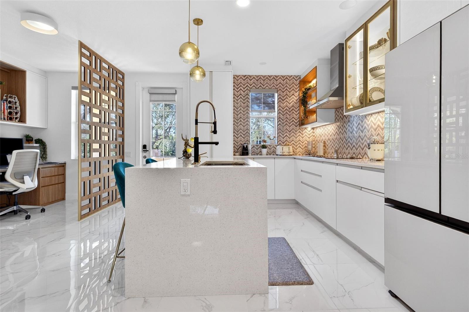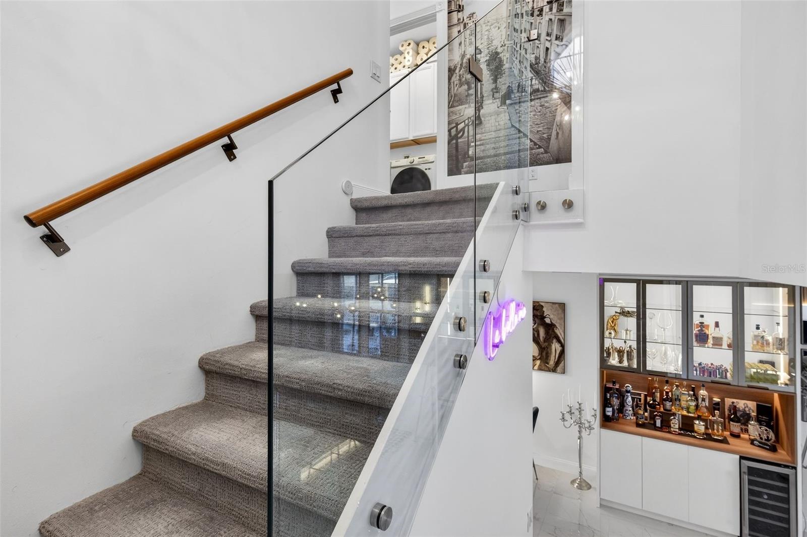 Moradia de luxo personalizada única em Guard-Gated VillageCaminhe no Lago Nona. Uma oferta verdadeiramente rara no coração do Lago Nona, esta A residência urbana de luxo totalmente personalizada está localizada no prestigiado condomínio fechado VillageWalk, conhecido por suas comodidades em estilo resort e estilo de vida vibrante. Com um design cuidadosamente selecionado e acabamentos de alta qualidade, esta residência se destaca como única oportunidade. A cozinha do chef deslumbrante apresenta armários personalizados requintados com iluminação de fundo dramática, eletrodomésticos premium e acabamentos refinados - perfeitos tanto para a vida cotidiana quanto para entretenimento elevado. Uma impressionante escadaria de vidro serve como um ponto focal arquitetônico moderno, aprimorado por uma área de bar de design e espaço de escritório dedicado, ideal para o estilo de vida atual de trabalho em casa. Esta residência de 2 quartos e 3,5 banheiros oferece 1.830 pés quadrados de área de estar lindamente projetada, incluindo duas suítes principais - um layout raro e versátil. Uma suíte principal possui uma varanda privativa, enquanto ambas incluem closets personalizados e banheiras inspiradas em spa. Uma lavanderia convenientemente localizada no andar de cima acrescenta facilidade ao dia a dia. Desfrute de uma vida interna e externa perfeita com uma varanda privativa perfeita para entretenimento com um toldo retrátil. Cortinas motorizadas, portas de vidro deslizantes e cortinas blackout motorizadas nos quartos do andar de cima. Conveniência de garagem para 2 carros com A/C e acesso por beco. VillageWalk at Lake Nona oferece um estilo de vida incomparável com piscinas em estilo resort, academia, quadras de tênis e pickleball, trilhas para caminhada, pontes pitorescas e um centro vibrante da cidade. Idealmente localizada perto de Lake Nona Medical City, Boxi Park, escolas de primeira linha, restaurantes, lojas e Aeroporto Internacional de Orlando, esta casa oferece vida luxuosa em uma das comunidades planejadas mais desejáveis da Flórida Central. Não há realmente nada como esta casa no mercado.