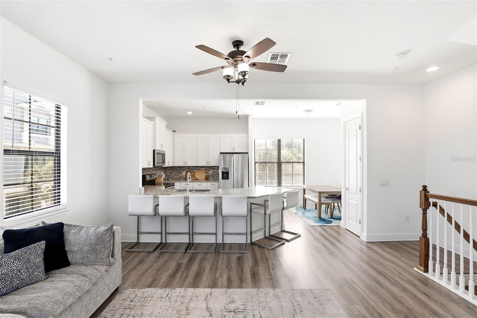 Bem-vindo a esta residência urbana de 3 andares lindamente mantida no coração de Avalon Park, oferecendo um layout raro e muito procurado de 4 quartos e 3,5 banheiros. Perfeitamente posicionada dentro da comunidade, esta casa fica a apenas uma curta caminhada do centro da cidade, onde você pode desfrutar de compras, restaurantes e conveniências diárias, incluindo opções de mercearia. Esta residência repleta de luz apresenta uma planta aberta e convidativa com acabamentos modernos por toda parte. A cozinha foi projetada para impressionar com bancadas de granito, armários estilo shaker e eletrodomésticos de qualidade, todos com vista para as espaçosas áreas de estar e jantar, tornando-a ideal tanto para a vida cotidiana quanto para entretenimento. Tetos altos, portas grandes e elementos de design bem pensados contribuem para a sensação elevada da casa. O primeiro andar oferece um quarto privativo com banheiro privativo, perfeito para hóspedes, home office ou residência multigeracional. No andar de cima, a suíte principal oferece um retiro relaxante completo com um amplo banheiro privativo, além de quartos adicionais que oferecem flexibilidade para familiares ou convidados. Como unidade final, esta casa goza de maior privacidade e muita luz natural. A garagem de entrada traseira e o exterior bem conservado contribuem tanto para a função quanto para o apelo do meio-fio. Viver em Avalon Park significa abraçar um verdadeiro estilo de vida de trabalho e lazer. Os residentes desfrutam de uma atmosfera comunitária vibrante com eventos frequentes e celebrações sazonais, como mercados, festivais e reuniões de feriados. Desde passeios de fim de semana até eventos comunitários, sempre há algo acontecendo a poucos passos da sua porta. Escondido, mas incrivelmente conveniente, este local oferece fácil acesso às principais rodovias, incluindo 528, 408 e 417, tornando o deslocamento para o centro de Orlando, o aeroporto, as universidades e a Costa Espacial simples e eficiente. Esta é uma oportunidade única de possuir uma casa versátil e bem localizada em uma das comunidades mais desejáveis do leste de Orlando. Imagens adicionais e tour virtual em breve