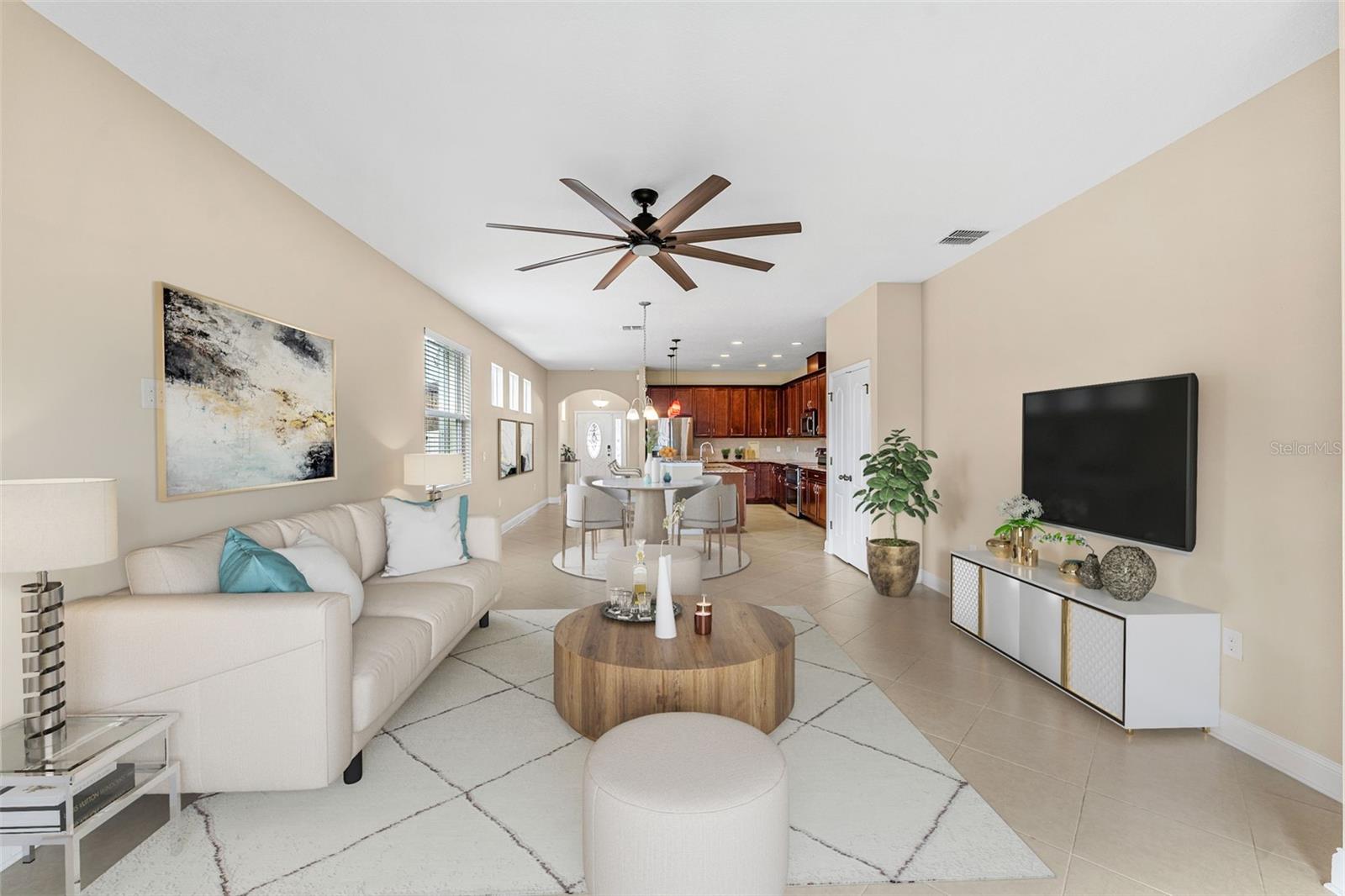 Uma ou mais fotos foram virtualmente encenadas. ***NOVO TELHADO 2024*** Bem-vindo à casa deslumbrante no condomínio fechado seguro da área de Lake Nona ao sul do Aeroporto Internacional de Orlando, perto da faculdade de medicina UCF, do VA Hospital e do Lake Nona Town Center. Esta encantadora residência térrea com 3 quartos, 2 banheiros, garagem para 2 carros e lavanderia apresenta estilo e conforto. Aproveite o fluxo contínuo da planta aberta, proporcionando um ambiente convidativo para a família e amigos se reunirem. A elegante cozinha, coração da casa, dispõe de balcões de granito e está equipada com frigorífico AS-IS em aço inoxidável, micro-ondas, forno duplo e máquina de lavar louça, oferecendo uma combinação perfeita de funcionalidade e elegância. O quarto principal tem um closet de porta dupla e porta de correr para acesso privado ao quintal da varanda. O banheiro principal tem banheira e chuveiro. A propriedade fica em um terreno cercado, perfeito para reuniões de família e amigos. A propriedade está equipada com persianas anti-furacão. Não perca a oportunidade de tornar sua esta joia de um só andar! A comunidade também possui piscina e playground. Agende hoje mesmo seu horário!!!