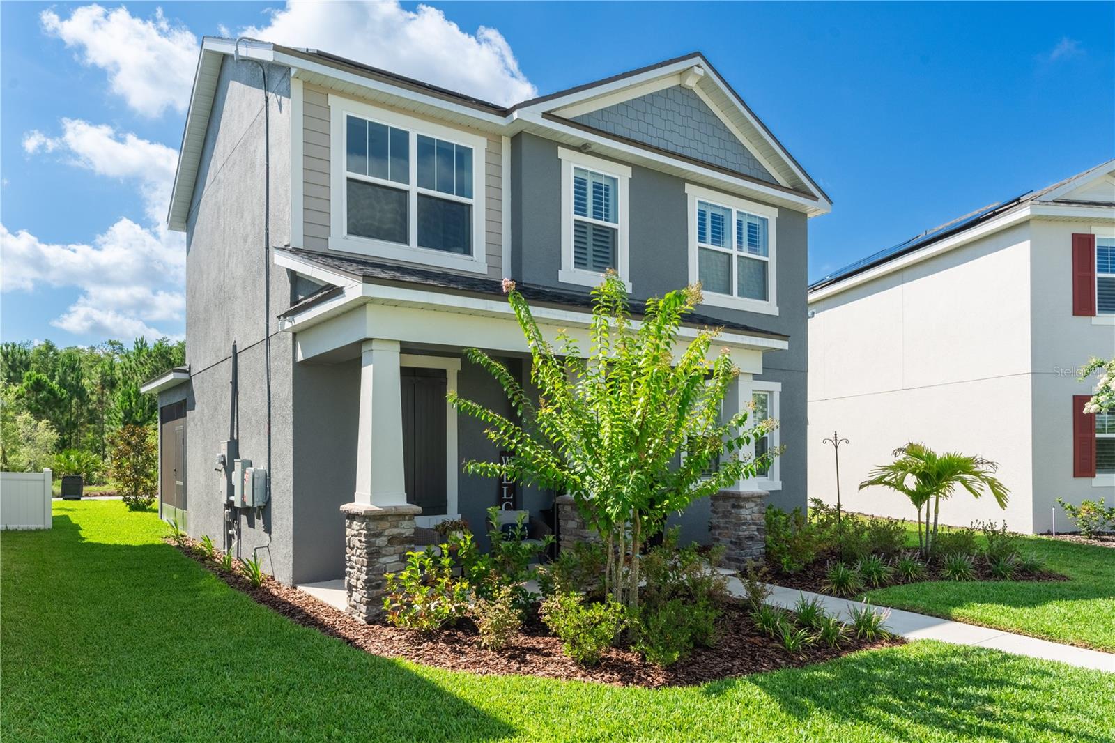 Bem-vindo à casa dos seus sonhos no coração do Lago Nona! Esta deslumbrante residência SOLAR de 3 quartos + sala e 2 banheiros possui modernidade e elegância. Ao entrar, você é saudado por uma atmosfera iluminada e arejada que flui facilmente por toda a casa. O piso principal possui uma espaçosa área de estar complementada por luminárias contemporâneas que acrescentam um toque de elegância. A cozinha dos sonhos do chef o aguarda, com bancadas de pedra, armários elegantes e uma ilha de tamanho generoso que funciona como ponto de encontro para familiares e amigos. Para quem trabalha ou estuda em casa, existe um escritório dedicado só para você! No piso superior, transmitem-se todos os quartos ideais para uma família em crescimento. A suíte master é um santuário com banheiro privativo, proporcionando um retiro sereno após um longo dia. Quartos adicionais com amplo espaço e luz natural, enquanto uma versátil sala bônus serve como área de lazer perfeita ou espaço adicional de entretenimento! A casa também oferece comodidades desejáveis, como persianas para privacidade, uma área de mudroom para organização e um corrimão de escada de madeira lindamente trabalhado. Esta casa está meticulosamente bem conservada. Localizada em um bairro incrível, Meridian Parks, esta propriedade oferece comodidade. Situado a poucos minutos da aclamada Innovation High School e cercado por escolas com classificação A, garante uma educação de alto nível para sua família. O fácil acesso à 417 conecta você às principais rodovias, como a 528 e a 408, facilitando o deslocamento, quer você esteja indo para o centro de Orlando, para o Aeroporto Internacional de Orlando (a apenas 15 minutos de distância) ou para as atrações mágicas da Disney World (a apenas 15 minutos de distância). 25 minutos de carro) Esta é uma casa de sonho à espera dos seus próximos proprietários, deixe que seja VOCÊ! Agende uma exibição hoje!
