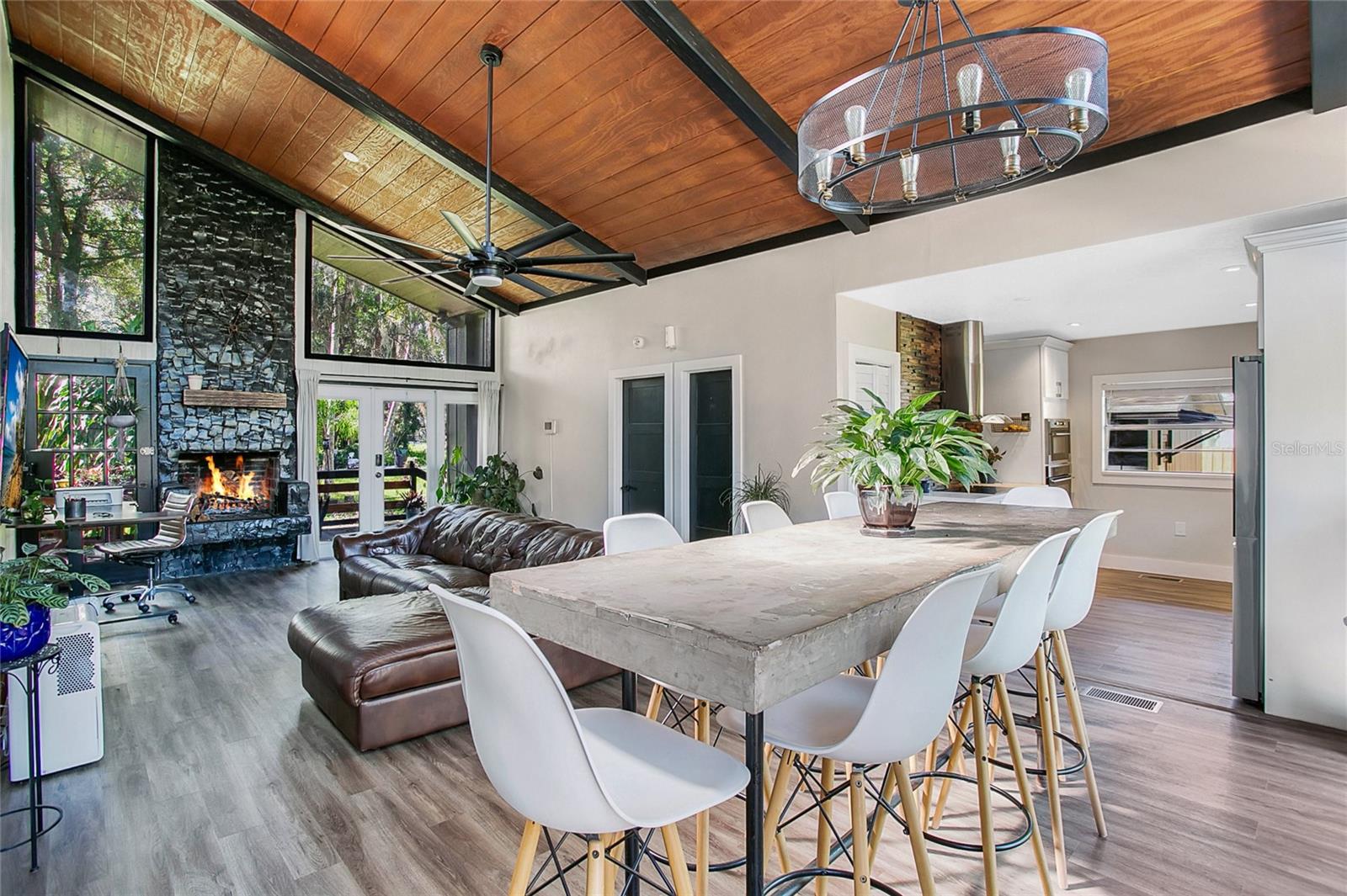 Bem-vindo à 14421 Parker Road, uma charmosa casa de 2 quartos e 2 banheiros situada na muito procurada comunidade da Ilha de Pines. Situada em mais de 1/3 acre, esta propriedade oferece uma vida moderna ao mesmo tempo que abraça um paraíso para os amantes da natureza. Ao entrar, você notará imediatamente o cuidado meticuloso que esta casa recebeu, destacado pelo luxuoso piso de vinil, iluminação embutida, acessórios elegantes e muito mais! A sala de estar ensolarada apresenta tetos altos de 25 pés, criando uma atmosfera arejada e convidativa, e é perfeitamente ladeada por uma espaçosa sala de jantar, ideal para entretenimento. A cozinha é o sonho de qualquer chef, com eletrodomésticos de aço inoxidável, armários estilo shaker com sancas, bancadas de quartzo, despensa, forno e micro-ondas embutidos, proporcionando estilo e função. Retire-se para o amplo quarto principal, completo com banheiro privativo e acesso direto à deslumbrante varanda lateral com tela de 28' x 19', com um balanço de cama aconchegante - perfeito para saborear seu café da manhã e relaxar no ambiente tranquilo. Características adicionais notáveis desta casa incluem um desumidificador para o espaço de rastreamento encapsulado, um cupim transferível, uma garagem individual de grandes dimensões, um sistema de alarme Vivint e um sistema séptico atualizado projetado para acomodar uma casa de 5 quartos. Também estão disponíveis planos arquitetônicos para adicionar mais dois quartos e um banheiro, proporcionando ainda mais potencial. Volte para a sala de estar e passe pelas portas de vidro deslizantes para um enorme quintal cercado com uma piscina cintilante ladeada por um deck espaçoso - ideal para fazer churrascos de verão e aproveitar o sol da Flórida. Em busca de mais diversão, o HOA opcional (US$ 175/ano) oferece muitos eventos comunitários que incluem desfiles de barcos, culinária de chili, pesca de pai para filho, eventos de feriado com fogos de artifício, dia de hidroavião e acesso ao belo Lago Mary Jane, perfeito para esquiar, com acesso privativo à praia, rampa para barcos, playground, quadra de basquete e churrasqueiras, além de base para hidroaviões em Moon Landing. Com localização central e fácil acesso à 417, esta casa oferece deslocamentos rápidos para Lake Nona, centro de Orlando e ambas as costas. Agende hoje mesmo sua exibição privada e faça desta casa deslumbrante seu lar!