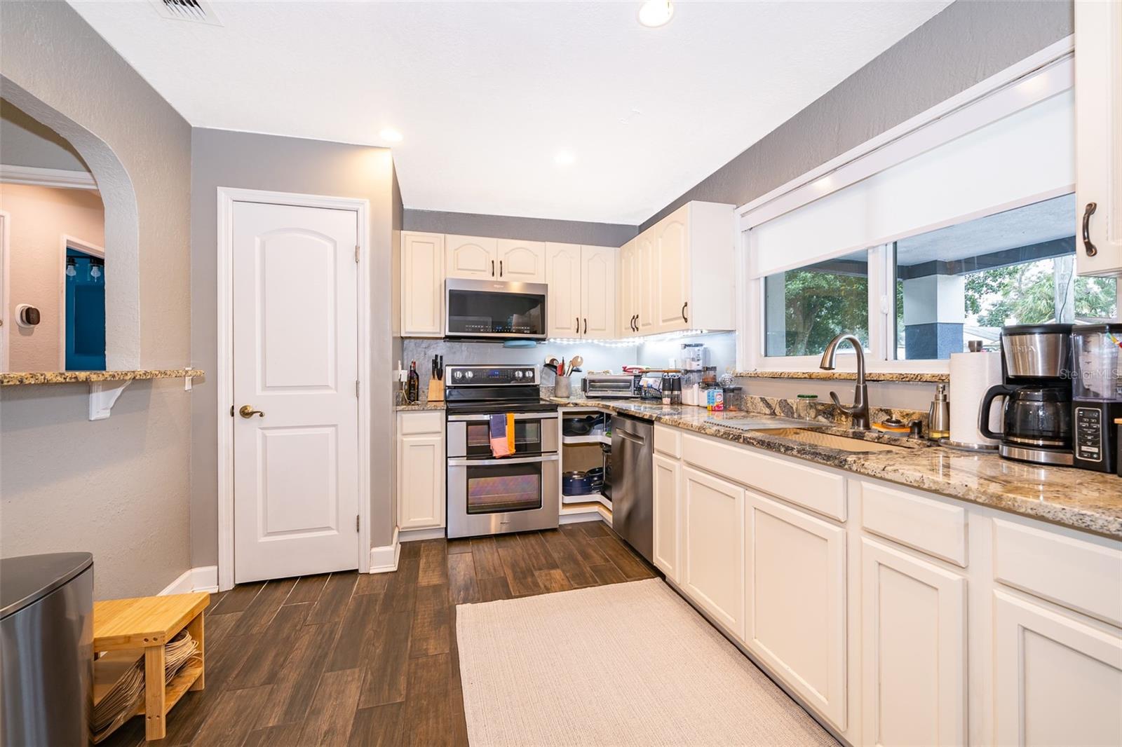 Aninhado no bairro de Sodo/First Pines, muito procurado, ao sul do centro da cidade, esta casa lindamente atualizada de 3 quartos e 2 banheiros combina conforto moderno com charme atemporal. A planta baixa aberta apresenta uma lareira de queima de madeira de pedra aconchegante na sala de estar, enquanto a cozinha elegante impressiona com bancadas em granito, utensílios de aço inoxidável e uma despensa conveniente. A espaçosa suíte do proprietário oferece um retiro sereno com um banheiro atualizado mostrando uma vaidade de granito e chuveiro de azulejos. As atualizações recentes incluem um novo telhado (2022), janelas com eficiência energética (2023), uma nova cerca (2023) e um carregador de EV para maior conveniência. O vasto quintal expansivo e totalmente cercado fornece o cenário perfeito para entreter ou adicionar uma piscina - sem o incômodo das restrições do HOA. Mudar-se pronto e cheio de atualizações, esta casa é uma jóia rara que você não vai querer perder!
