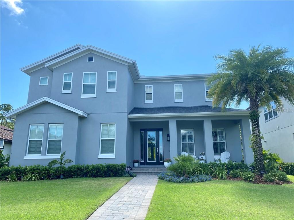 A casa moderna da piscina familiar voltando a uma área de conservação no laureado parque de Lake Nona. Duas andares da sala familiar grande, sala de estar formal, área de jantar, 6 quartos, 5 1/2 banheiros, escritório, loft e mudroom. A sala da família tem vista para a piscina e a área de conservação para trás. Unidades de cozinha branca modernas com duas ilhas grandes e bancadas de quartzo. High end cooktop, oven & microwave, two 30” built-in refrigerator/freezers, & large walk-in pantry. The breakfast nook has a built-in bench for expanded seating. A butler’s pantry/dry bar connects the kitchen and dining room. The first floor has an in-law suite with an en-suite shower room or can be used as a gym and exercise room. The master suite is on the main with views of the pool and conservation area. Master bathroom tem seus armários personalizados, banheira, chuva de chuva e vaidade dupla. Recursos e fontes.