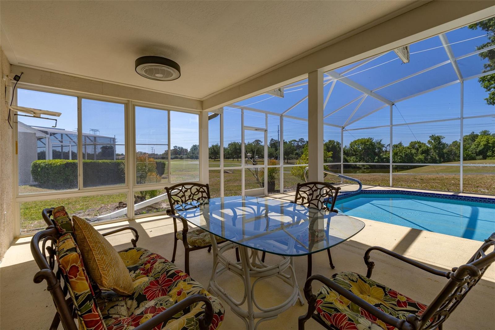 Bem -vindo ao seu retiro dos sonhos, aninhado no coração do prestigiado Ventura Country Club, perfeitamente situado no 13º buraco cênico. Esta casa lindamente mantida oferece vistas deslumbrantes do campo de golfe e um lago tranquilo à distância, tudo do conforto da sua piscina aquecida privada e do espaçoso pátio coberto. Entre em um interior recém -pintado e profundamente limpo que exala conforto e elegância. As salas de vida e jantar formadas criam um espaço convidativo para entretenimento, enquanto a cozinha expansiva é um verdadeiro showstopper - com armários azuis ousados, um backsplash artesanal colorido, utensílios de aço inoxidável e bancadas de açougueiro quente que misturam estilo moderno com charme rústico. Adjacente à cozinha, a aconchegante sala da família possui uma lareira a lenha e uma porta deslizante que enquadra a vista exuberante, trazendo o ar livre. Saia para o seu pátio coberto-perfeito para relaxar ou divertir-onde você apreciará a vista pacífica da piscina, campo de golfe e lago além. A suíte principal do quarto é um santuário privado, cheio de luz natural e acesso direto ao pátio traseiro. O luxuoso banheiro privativo oferece uma experiência semelhante ao spa, com uma grande vaidade de pia dupla, um espaçoso closet e um chuveiro a vapor de calypso com aromaterapia-projetado para hidratar a pele e derreter o estresse. No lado oposto da casa, dois quartos adicionais oferecem privacidade e conforto, com fácil acesso a um banheiro elegante - perfeito para os hóspedes ou a vida familiar. Esteja você hospedando reuniões, relaxando a beira da piscina ou desfrutando de uma rodada de golfe a poucos passos do seu quintal, esta casa é uma jóia rara que combina luxo, funcionalidade e vida serena da Flórida.