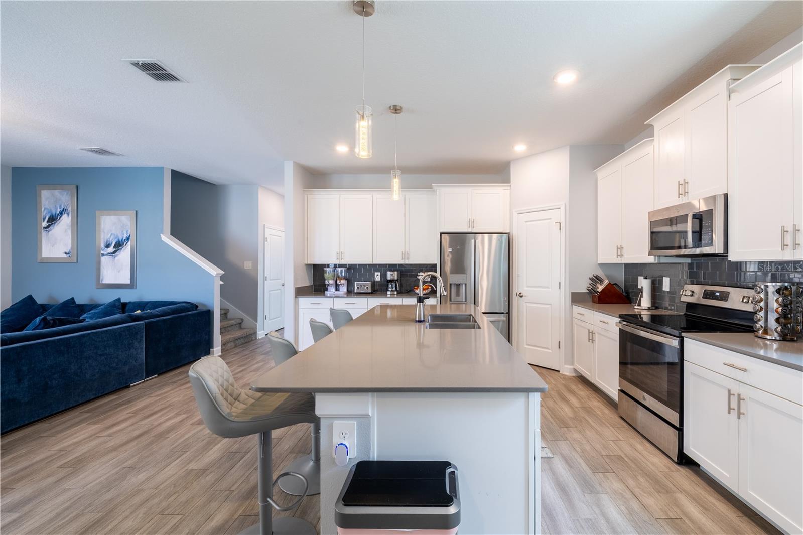 Imaculada casa construída em 2023 na comunidade procurada do Storey Park, em Lake Nona! Esta espaçosa sala de 5 quartos mais flexível, uma casa de 3 banheiros, possui 2.638 pés quadrados de espaço moderno com elegantes pisos de ladrilhos de porcelana com aparência de madeira no nível principal, bancadas de quartzo e utensílios de aço inoxidável, incluindo geladeira, microondas, forro, lavadora e secadora. As atualizações adicionais incluem um sistema de água de osmose reversa, amaciador de água, painéis solares com eficiência energética e uma garagem de 2 carros. Um quintal privado adiciona espaço extra ao ar livre. O Storey Park oferece um verdadeiro estilo de vida no estilo resort, com dois clubes, piscinas, centros de fitness, quadras de tênis, vôlei de praia, trilhas para caminhada, vários playgrounds e um parque de cães. Localizado a poucos quarteirões da Future Elementary School (abertura de 2026), Innovation Middle and Innovation High School e Publix. O acesso rápido ao SR-417 e SR-528 facilita o deslocamento. A apenas 15 minutos do Aeroporto Internacional de Orlando e da Brightline Train Station, e a cerca de 45 minutos das praias da Costa Leste e Port Canaveral. Os aluguéis de curto prazo não são permitidos. Zoneado para escolas com melhor classificação. Esta casa pronta para baixo oferece uma rara oportunidade de viver em uma das comunidades mais desejáveis e de rápido crescimento de Orlando. Os móveis não estão incluídos na venda. Proprietário dos agentes.