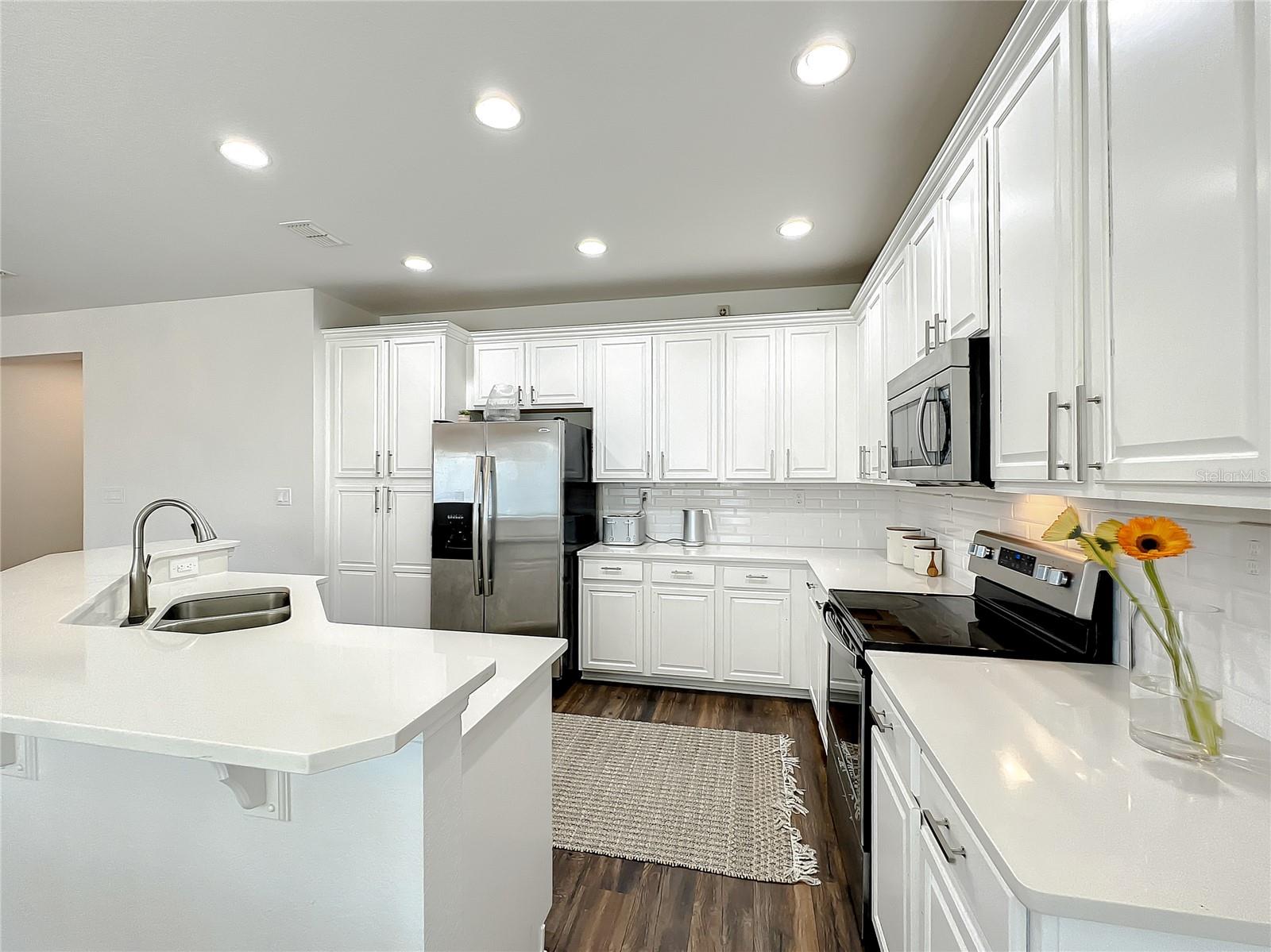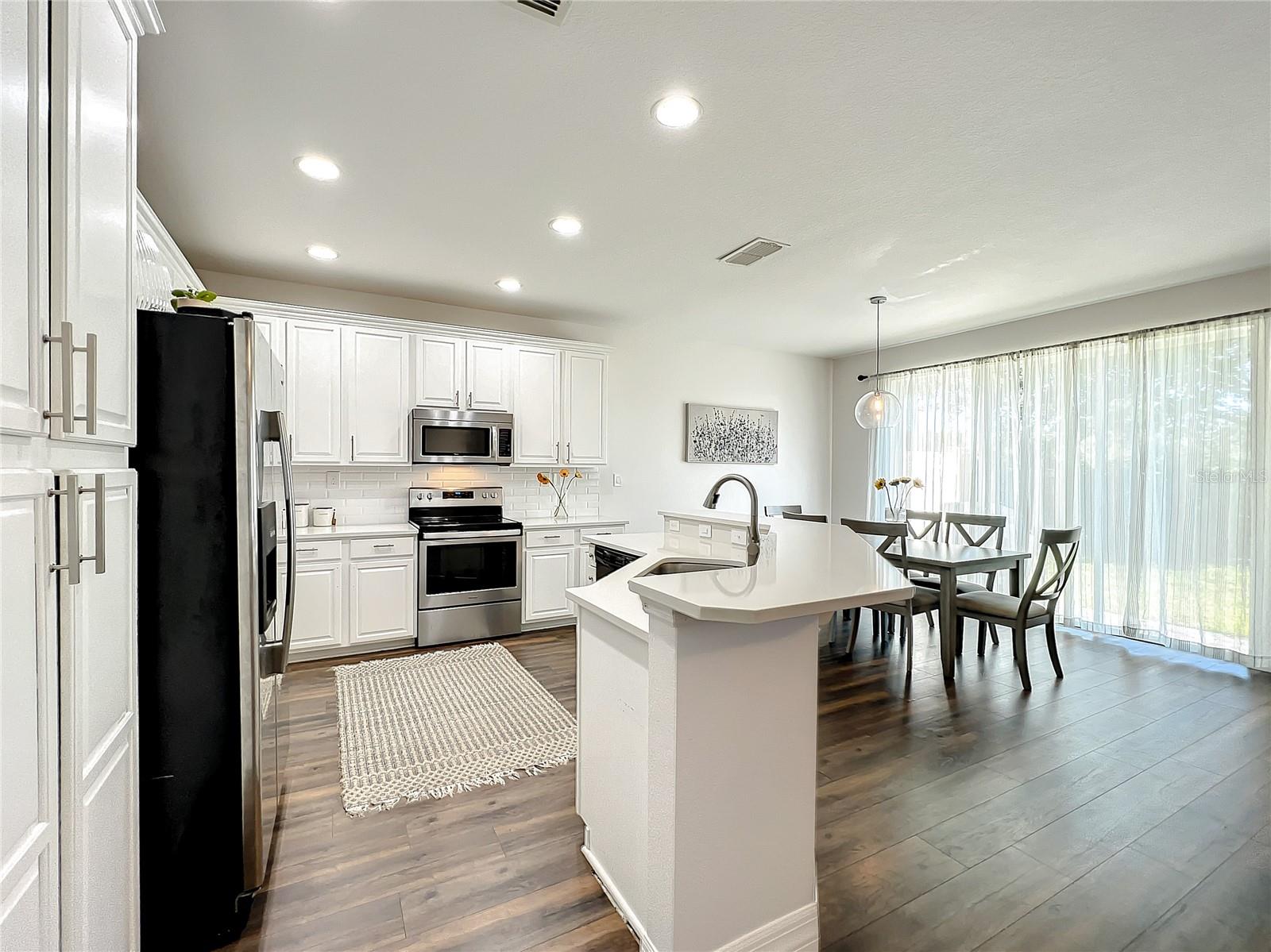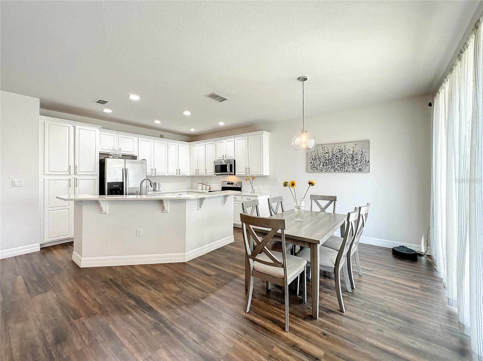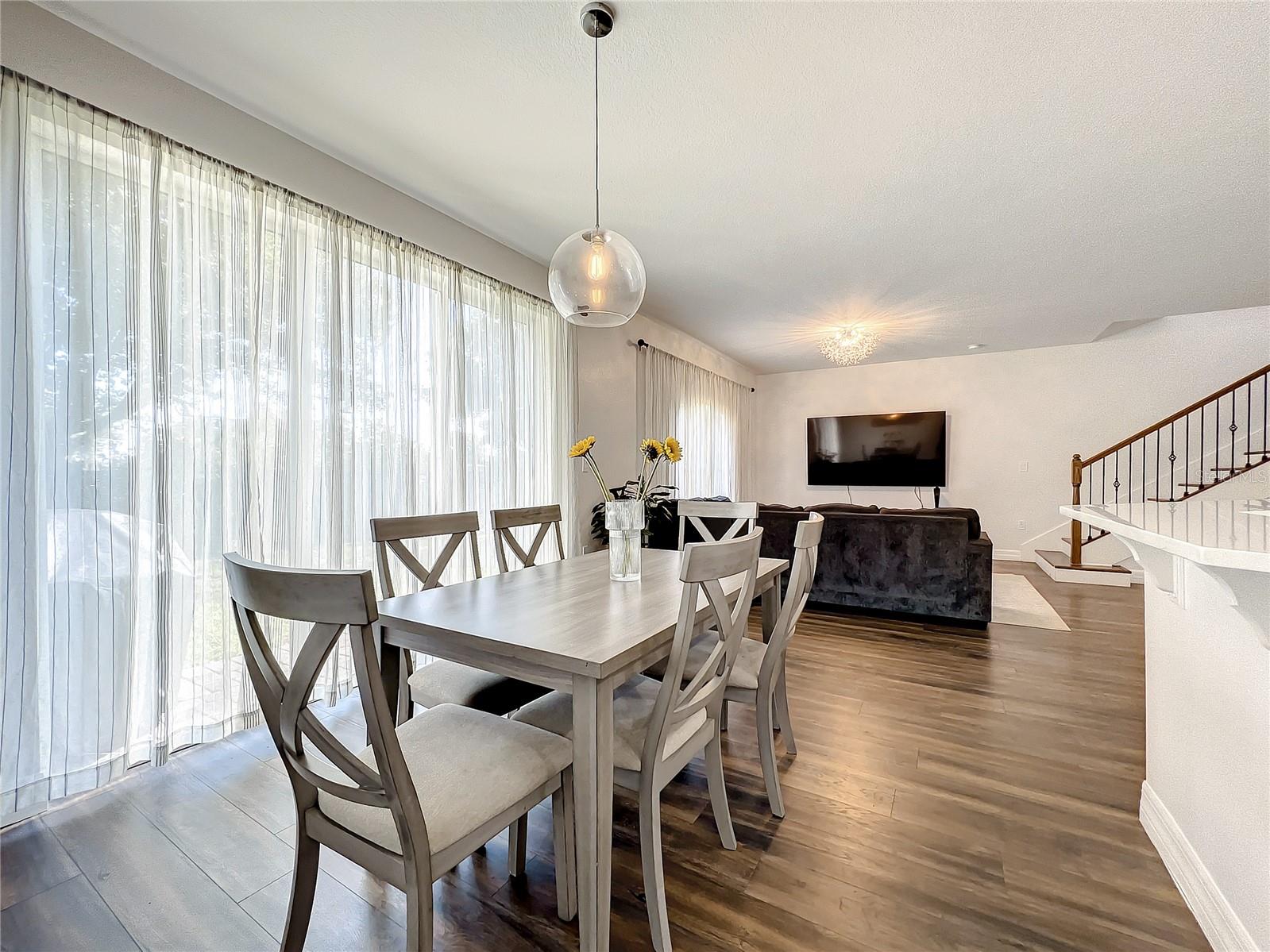 Bem-vindo à Comunidade de Golfe de Eagle Creek muito procurada. Esta imaculada Townhouse bem mantida de 4 quartos e 3,5 -Bathrooms apresentava tinta fresca, pisos laminados ao redor, banheiro principal atualizado e muito mais. A cozinha com armários de 42 "e aço inoxidável ainda aparelhos, a bancada de quartzo está aberta para a sala de estar. Quarto de hóspedes no segundo andar tem uma suíte de banheiro. NONA, Aeroporto Internacional de Orlando e Rota 417. Programe sua exibição hoje!