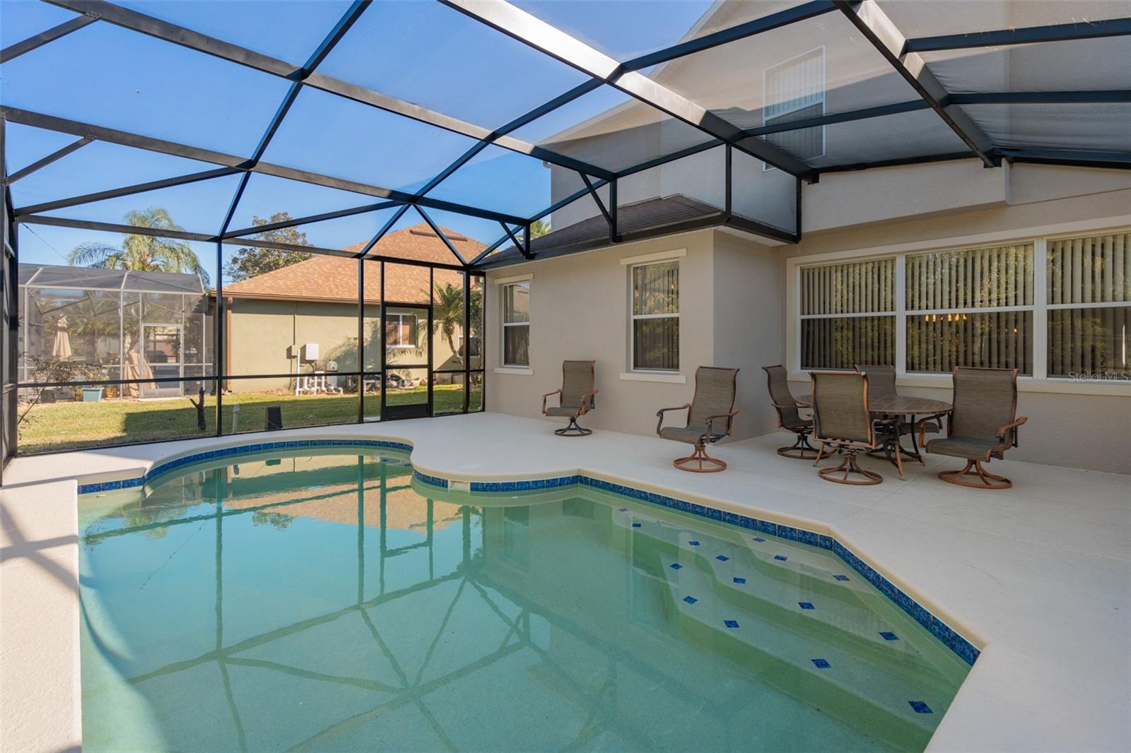 Bem-vindo à vida de luxo no altamente procurado condomínio fechado de golfe Eagle Creek, em Lake Nona. Esta bela casa de 5 quartos e 3,5 banheiros oferece 3.347 pés quadrados de área de estar aberta e iluminada com tetos altos, elegante piso de madeira manufaturada e um design de conceito aberto ideal para a vida cotidiana e entretenimento. A cozinha gourmet possui bancadas em granito, eletrodomésticos em aço inoxidável e amplos armários, abrindo perfeitamente para as áreas de estar e jantar. A espaçosa suíte principal inclui pia dupla, box amplo e amplo espaço no armário. Aproveite a vida na Flórida na varanda coberta com vista para o campo de golfe, além de uma piscina privativa para relaxar e se divertir. As atualizações recentes incluem um novo telhado (2019), duas unidades AC (2018 e 2024), pintura externa (2022) e pintura interna fresca (2026), proporcionando tranquilidade ao próximo proprietário. Os residentes de Eagle Creek desfrutam de comodidades de primeira linha em estilo resort, incluindo golfe de campeonato, clube com restaurante, academia de ginástica de última geração, várias piscinas, quadras de tênis e basquete, playgrounds e parque para cães - tudo sem taxas de CDD. Conveniente para Lake Nona Medical City, lojas, restaurantes, escolas de primeira linha, Aeroporto Internacional de Orlando e principais rodovias. Esta casa oferece a combinação perfeita de luxo, localização e estilo de vida. Não perca esta maravilhosa oportunidade de chamar Eagle Creek de lar. Agende sua exibição privada hoje mesmo!