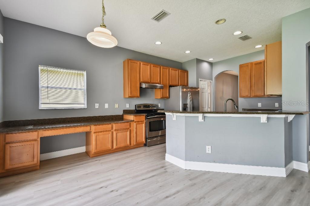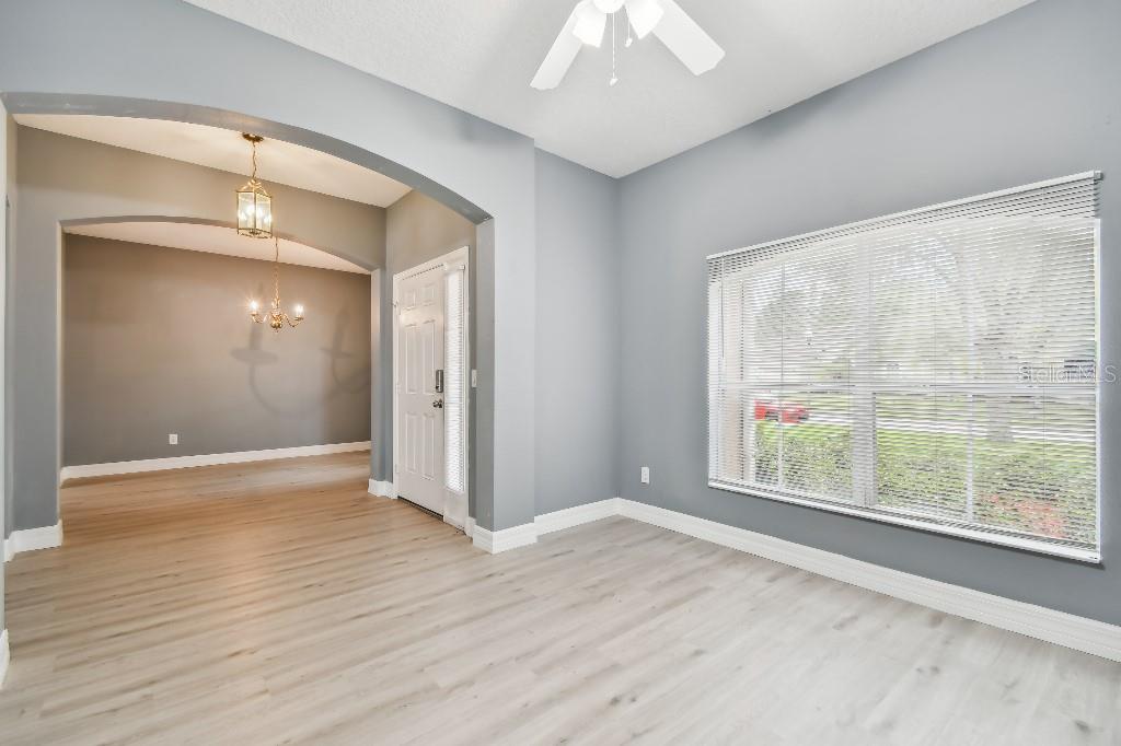 3/2 Casa unifamiliar, garagem para 2 carros com espaço extra. Poderia ser um escritório ou sala de família. Segunda casa de banho e pavimento actualizados há 2 anos. Banheiro principal tem banheira Jacuzzi. A 20 minutos da UCF. Em lindo condomínio, Club house, academia comunitária, piscina com escorregador, quadras de tênis, quadras de pickleball bem perto da casa. Próximo ao Ensino Fundamental em Comunidade, Ensino Médio e Ensino Médio. Esta área se qualifica para programas de empréstimo sem entrada de dinheiro e sem PMI. Preço para vender.