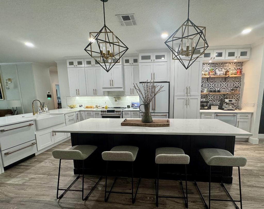 Por que pagar mais pela nova construção e esperar um ano quando você pode possuir uma casa de piscina totalmente reformada na desejável comunidade de clubes de golfe de North Shore? Esta casa única foi comprada em dezembro de 2022. Desde então, foi destruída para os pregos e transformada em uma casa conceitual moderna e aberta. O teto foi substituído em 2022, HVAC 2019 e aquecedor de água em 2023. Todos os pisos, armários, balcões, iluminação e portas internas/ externas são novas. As paredes em vida formal, jantar e quartos têm molduras personalizadas. Os armários foram atualizados com prateleiras personalizadas. Todos os utensílios de cozinha são GE Café com hardware de latão. A garagem foi atualizada com piso epóxi, escadas do sótão e estação de carregamento EV. O aquecedor de piscina de bomba de calor elétrico foi instalado em 2023. Outras atualizações externas incluem pátio traseiro cercado e pátio de pavimentação 15x20 com fogueira. Não perca esta rara oportunidade. Ligue hoje para agendar uma exibição particular.