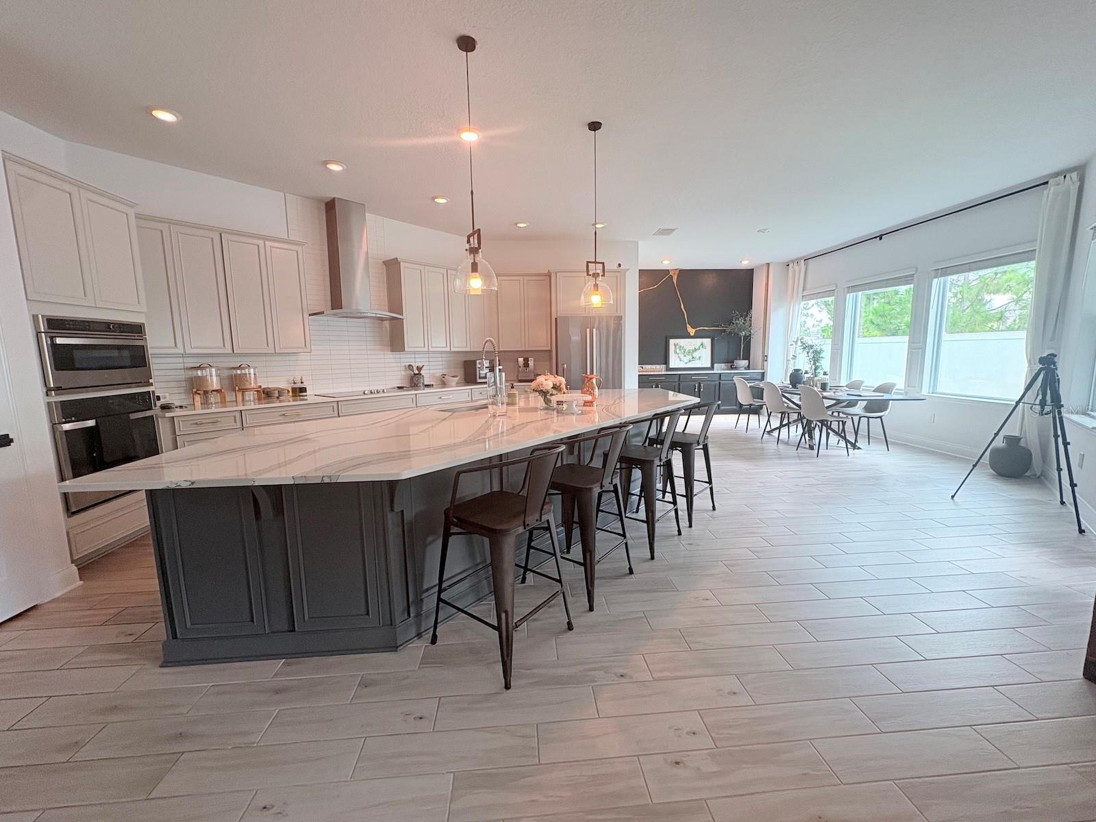 Modelo David Weekley Valleybrook Casa espaçosa de 2 andares | 3.506 pés quadrados | 4 quartos / 3,5 banheiros. Localizado em uma das áreas mais desejáveis de Orlando, Flórida - parque de laureado no lago Nona - Esta casa de dois andares lindamente projetada, apresenta uma planta baixa, com a suíte master localizada no andar de cima, com um super chuveiro no banheiro do proprietário e uma grande caminhada no armário. Na área do andar de cima, você também desfrutará de um retiro perfeito para um segundo espaço ou sala de jogos. A principal sala de estar no andar de baixo, combina luxo com funcionalidade aberta a uma cozinha gourmet com uma impressionante ilha de 15 pés com painéis de porta decorativos, alças de armário de latão sólido com armários de fechamento macios atualizados em toda a cozinha, uma área ideal para entretenimento. O Estudo Privado/Sala Flex possui portas francesas elegantes. Feauting portas de 8 pés em ambos os níveis, um lanai externo estendido para a área de estar sem interior e saída interna. Esta casa também possui uma garagem em tandem de 3 carros que oferece amplo estacionamento e armazenamento. Está lindamente localizado em um lote premium de canto sem saída, com uma vista serena de conservação à esquerda. Esta casa combina design elegante com praticidade cotidiana, todos aninhados em um local tranquilo e sem saída, com belos arredores naturais em um lote de 10.000 pés quadrados. O parque laureado, a comunidade de Lake Nona oferece muitas comodidades como Centro Aquático, Fitness Center, Dog Park, Playgrounds, trilhas para caminhada e ciclismo, jardins, quadra de basquete, quadras de tênis e muito mais. Ótimas escolas próximas, compras, restaurantes, perto do Aeroporto Internacional de Orlando, Medical City.