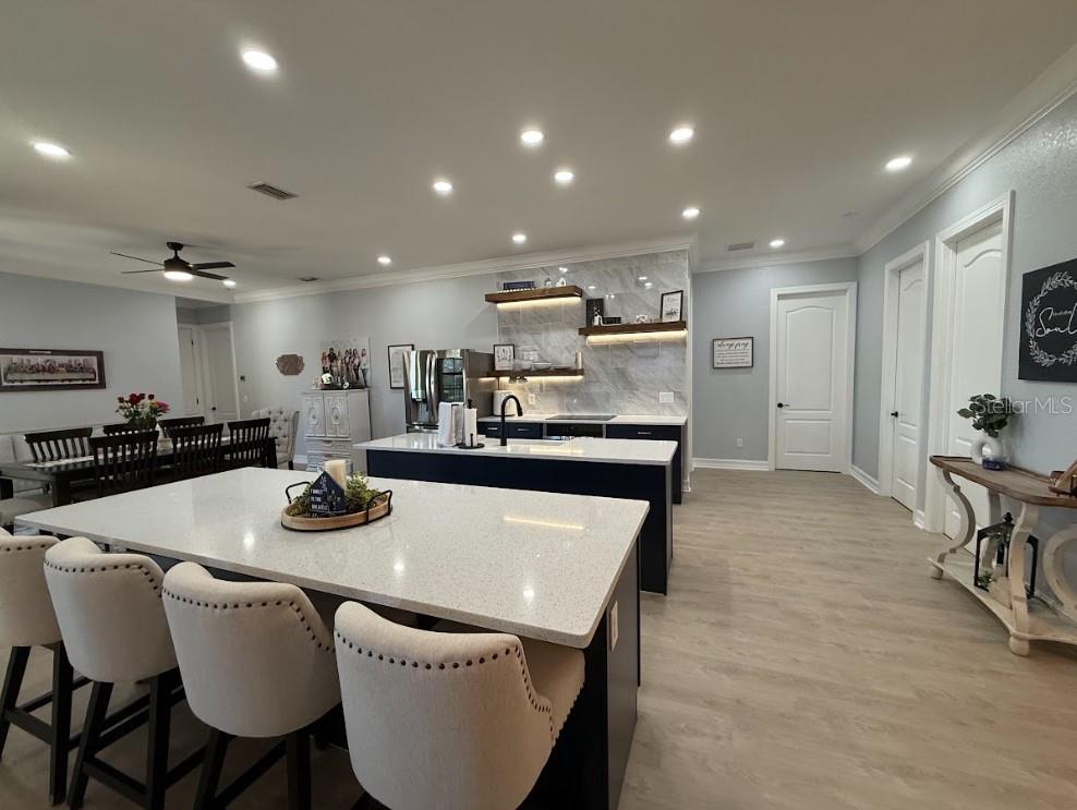 Esta deslumbrante casa de conceito aberto de 4 quartos, 3 banheiros e 2.531 pés quadrados foi cuidadosamente projetada para desfrutar dos espaços internos/externos. Localizado em um dos melhores campos de golfe de Orlando, com amplas comodidades no exclusivo e seguro condomínio fechado de Eagle Creek; esta luxuosa casa está repleta de tranquilidade e pronta para receber seu novo proprietário. Tudo é novo, desde eletrodomésticos até pintura. Um calor; espaço de conceito aberto com ilhas duplas com bancadas de quartzo branco, pia de fazenda, armários azuis com bastante espaço de armazenamento para toda a sua equipe e prateleiras flutuantes personalizadas com iluminação inferior em um fundo de mármore como ponto focal. Esta cozinha é o sonho de qualquer anfitrião de jantar ou a melhor amiga de uma mãe. Segurança instalada na frente e nos fundos da casa. Luzes substituídas por LEDs tanto no interior quanto no exterior. Novos detectores de fumaça e monóxido de carbono. Novos hardwares, maçanetas, luminárias, fogão de indução, eletrodomésticos e termostatos inteligentes, piso de areia de praia, varões de cortina, tampa de tomada, bidês, TV de tela plana de 86', armários, caixa de correio pintada, vegetação aparada e muito mais. Tanto por dentro quanto por fora, nenhum detalhe foi deixado de lado. Incluindo o espaço de 42' entre as ilhas - a cozinha é compatível com ada. Iluminação natural em todas as divisões. Tetos de 12 pés. A natureza inspirou tons de terra. Garagem para 3 carros. 3 conjuntos de portas francesas. Vista para o mar de 15 pés. Quintal fechado. Comodidades que incluem: golfe, piscina, tênis, futebol, basquete, pickleball, academia e muito mais. Localizado na Cidade Médica. Com escolas e faculdades bem avaliadas nas proximidades. Você não está apenas comprando uma casa. Você está comprando um estilo de vida. Tudo que você precisa fazer é virar a chave e entrar!
