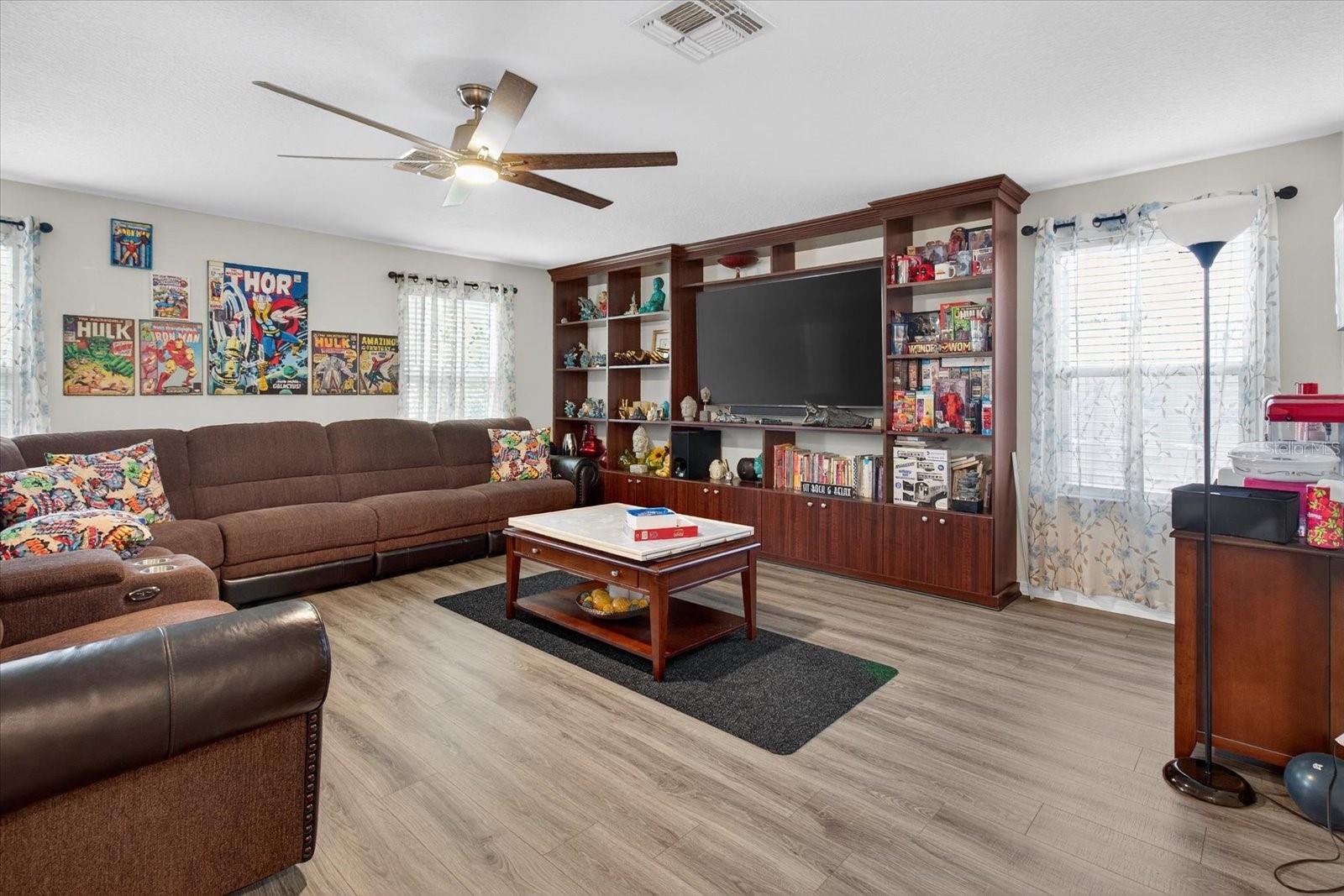 Bem-vindo a uma espaçosa casa de 5 quartos e 3,5 banheiros, com uma suíte principal no primeiro andar e grandes armários em todos os quartos. Esta casa oferece luxuoso piso de vinil à prova d'água e um centro de entretenimento personalizado no loft que transmite a venda. A cozinha inclui uma generosa despensa e um amplo espaço de arrumação, perfeito para reuniões familiares e para o dia a dia. Aproveite o seu quintal privado com piscina de água salgada. A garagem está equipada com bateria de reserva Tesla em mais de metade da casa para maior comodidade. Além disso, a casa dispõe de painéis solares veiculados na venda da casa. A casa será lavada profissionalmente sob pressão e recém-pintada no exterior, garantindo uma experiência fácil e pronta para morar. Localizado em um condomínio desejável que oferece diversas comodidades para os moradores desfrutarem. Agende sua exibição privada hoje mesmo!
