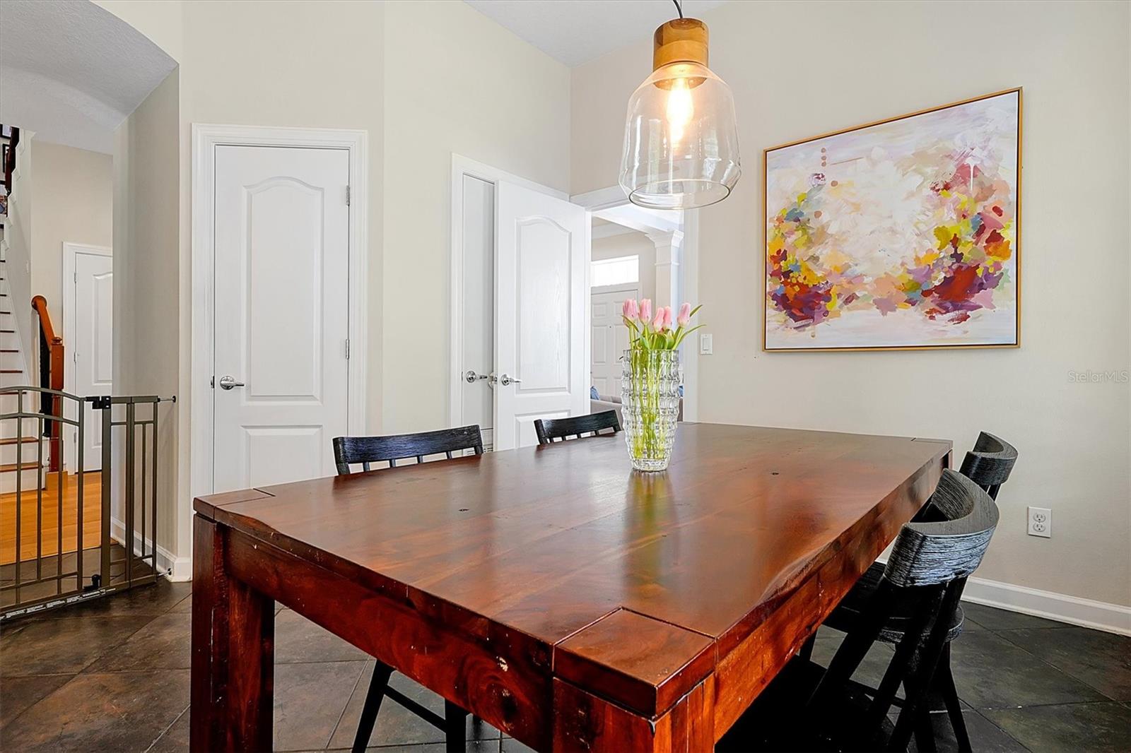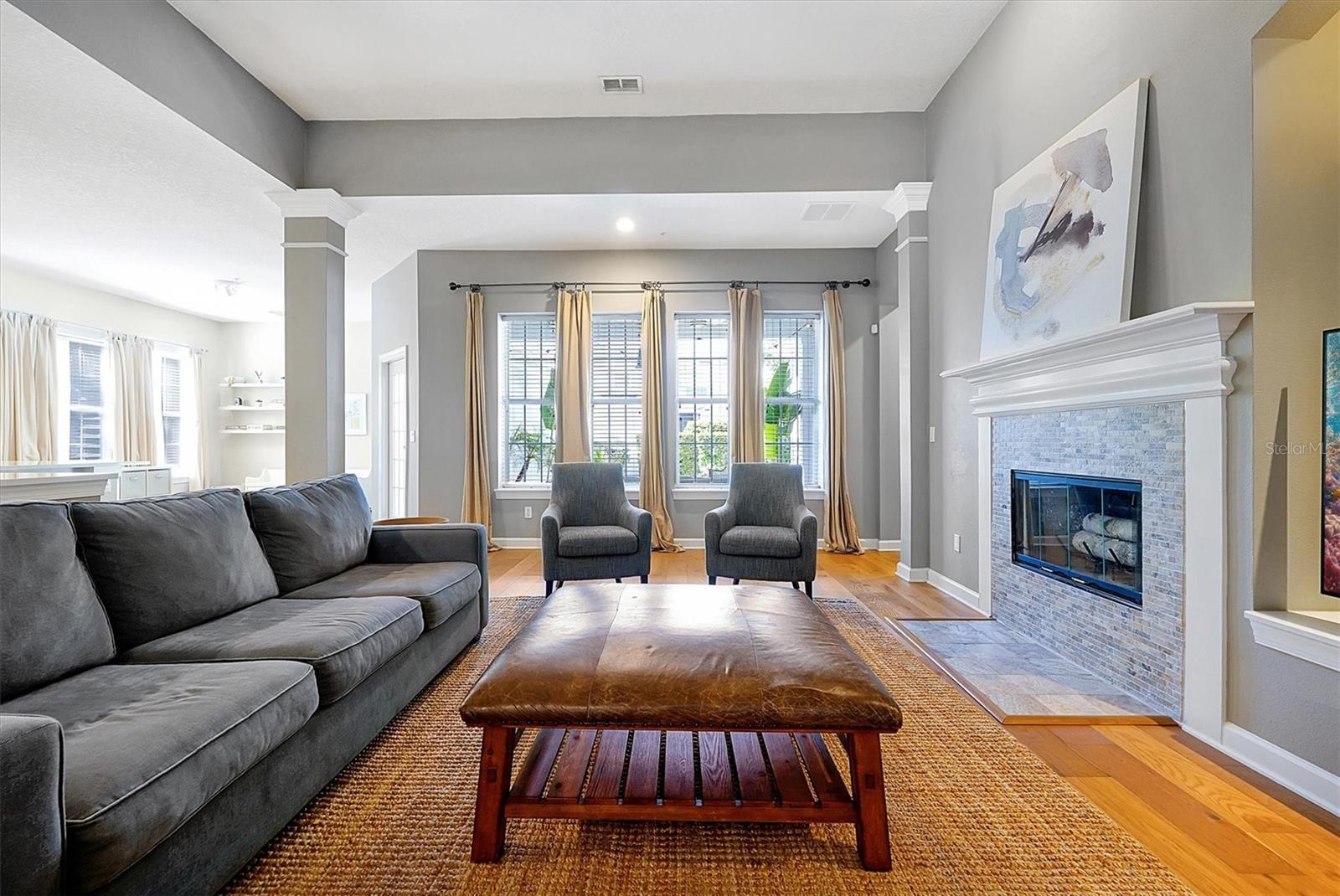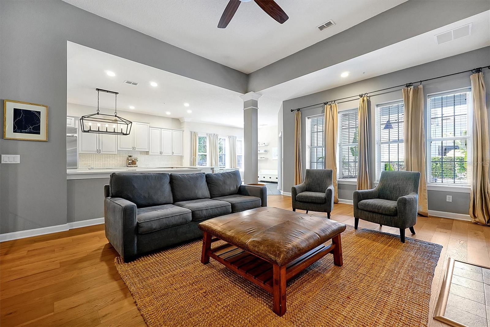 Home elegante em estilo mansão em Baldwin Park, em frente ao Blue Jacket Park. Descubra conforto e funcionalidade nesta casa impressionante e única. Projetado com um conceito aberto que aprimora o fluxo do espaço, as alturas de teto variadas adicionam interesse visual por toda parte. Ao entrar, você é recebido por um grande hall de entrada com um impressionante teto de 21,5 pés. Em ambos os lados do hall de entrada, você encontrará duas salas versáteis que podem servir como uma sala de jantar formal, uma área de estar aconchegante ou até mesmo um escritório em casa. Experimente conforto e elegância nesta casa excepcional, perfeita para relaxar e divertir. Os belos pisos de madeira estão no primeiro andar e uma lareira a lenha na sala da família que se abre para a cozinha espaçosa e elegantemente projetada. Possui uma geladeira de aço inoxidável com monograma GE, forno e microondas, uma máquina de lavar louça Bosch e uma cozinha de cozinha. Os armários Shaker, lindas bancadas de quartzo e piso de ladrilhos grandes completam a estética moderna do espaço. Há uma área de lanchonete em uma extremidade da cozinha. Por outro lado, o outro extremo oferece um espaço que poderia servir várias funções, como uma área de estar de café, uma marquise, um escritório ou uma sala de jogos. O quarto principal principal está convenientemente localizado na sala da família. O banheiro possui pias duplas, uma banheira luxuosa, um chuveiro fechado privado e um armário de água separado. Além disso, anexado é um espaçoso closet. Um segundo quarto pode servir como viveiro ou ser usado para outro propósito. A grande escada de dois andares leva a uma mídia espaçosa e uma sala familiar no segundo andar. Há também três quartos, dois conectados em um estilo de macaco e jill. O andar de cima apresenta carpetes novinhos em folha por toda parte. A segunda história é muito aberta e convidativa e, ao seguir para a mídia elevada e a sala da família, você encontrará uma TV montada de 85 polegadas que está incluída na casa. Do lado de fora da sala da família do andar de baixo, há um lanchone coberto com vista para a piscina de água salgada. O quintal é gramado e fechado, perfeito para uso recreativo e membros da família peludos de quatro patas. A garagem de três carros está situada na parte traseira da casa e possui prateleiras de armazenamento de gladiadores que transmitirão com a casa. Existem dois condensadores e dois manipuladores de ar, um instalado em 2019 e o outro em 2021. O teto foi substituído em 2020. Além disso, há uma lavanderia interna. Ligue para agendar sua consulta particular para ver esta casa lindamente única, que você terá orgulho de possuir. A experiência de possuir esta casa será incrível. Não perca a oportunidade de ver por si mesmo!