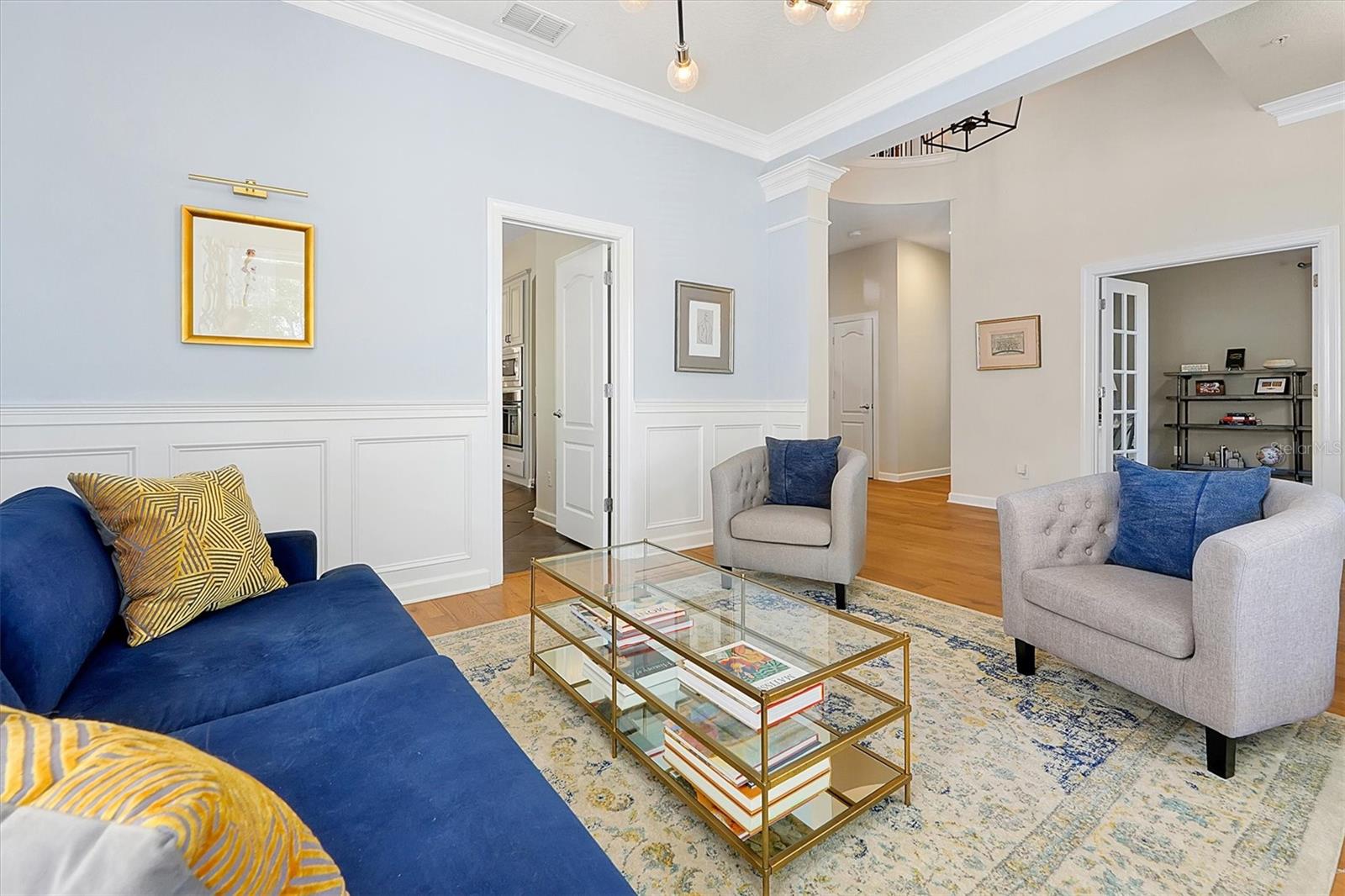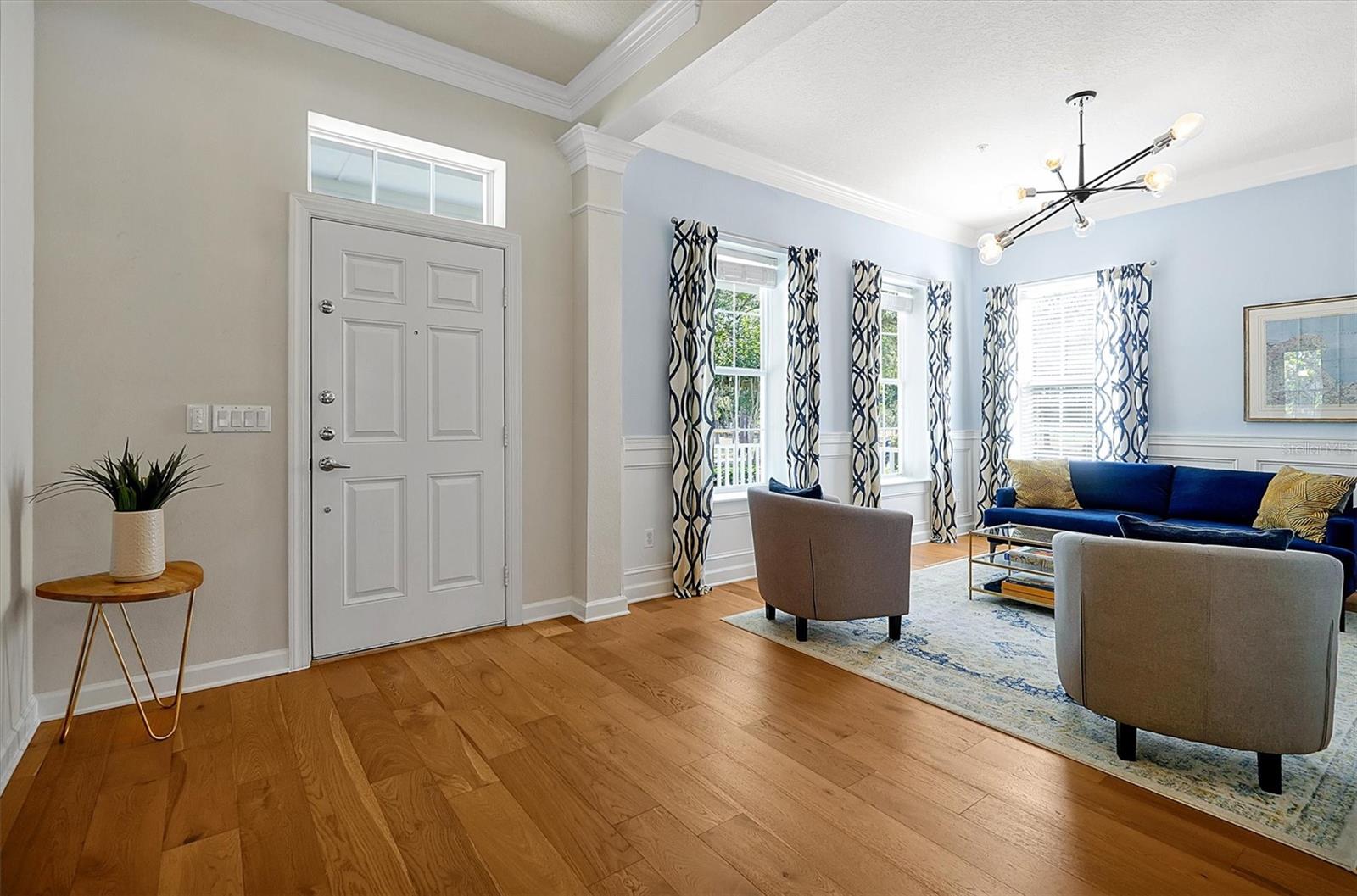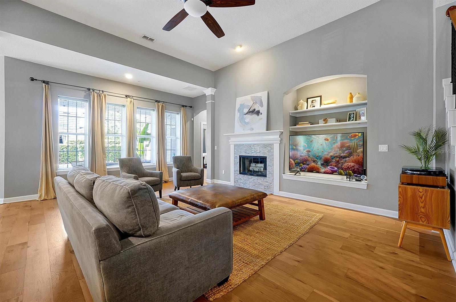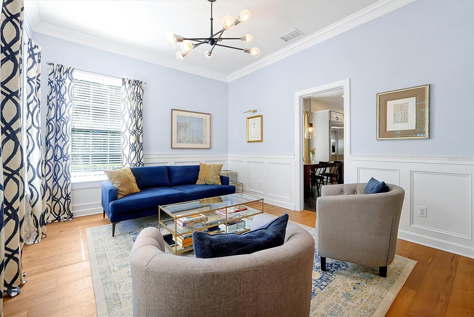 Home elegante em estilo mansão em Baldwin Park, em frente ao Blue Jacket Park. Descubra conforto e funcionalidade nesta casa impressionante e única. Projetado com um conceito aberto que aprimora o fluxo do espaço, as alturas de teto variadas adicionam interesse visual por toda parte. Ao entrar, você é recebido por um grande hall de entrada com um impressionante teto de 21,5 pés. Em ambos os lados do hall de entrada, você encontrará duas salas versáteis que podem servir como uma sala de jantar formal, uma área de estar aconchegante ou até mesmo um escritório em casa. Experimente conforto e elegância nesta casa excepcional, perfeita para relaxar e divertir. Os belos pisos de madeira estão no primeiro andar e uma lareira a lenha na sala da família que se abre para a cozinha espaçosa e elegantemente projetada. Possui uma geladeira de aço inoxidável com monograma GE, forno e microondas, uma máquina de lavar louça Bosch e uma cozinha de cozinha. Os armários Shaker, lindas bancadas de quartzo e piso de ladrilhos grandes completam a estética moderna do espaço. Há uma área de lanchonete em uma extremidade da cozinha. Por outro lado, o outro extremo oferece um espaço que poderia servir várias funções, como uma área de estar de café, uma marquise, um escritório ou uma sala de jogos. O quarto principal principal está convenientemente localizado na sala da família. O banheiro possui pias duplas, uma banheira luxuosa, um chuveiro fechado privado e um armário de água separado. Além disso, anexado é um espaçoso closet. Um segundo quarto pode servir como viveiro ou ser usado para outro propósito. A grande escada de dois andares leva a uma mídia espaçosa e uma sala familiar no segundo andar. Há também três quartos, dois conectados em um estilo de macaco e jill. O andar de cima apresenta carpetes novinhos em folha por toda parte. A segunda história é muito aberta e convidativa e, ao seguir para a mídia elevada e a sala da família, você encontrará uma TV montada de 85 polegadas que está incluída na casa. Do lado de fora da sala da família do andar de baixo, há um lanchone coberto com vista para a piscina de água salgada. O quintal é gramado e fechado, perfeito para uso recreativo e membros da família peludos de quatro patas. A garagem de três carros está situada na parte traseira da casa e possui prateleiras de armazenamento de gladiadores que transmitirão com a casa. Existem dois condensadores e dois manipuladores de ar, um instalado em 2019 e o outro em 2021. O teto foi substituído em 2020. Além disso, há uma lavanderia interna. Ligue para agendar sua consulta particular para ver esta casa lindamente única, que você terá orgulho de possuir. A experiência de possuir esta casa será incrível. Não perca a oportunidade de ver por si mesmo!