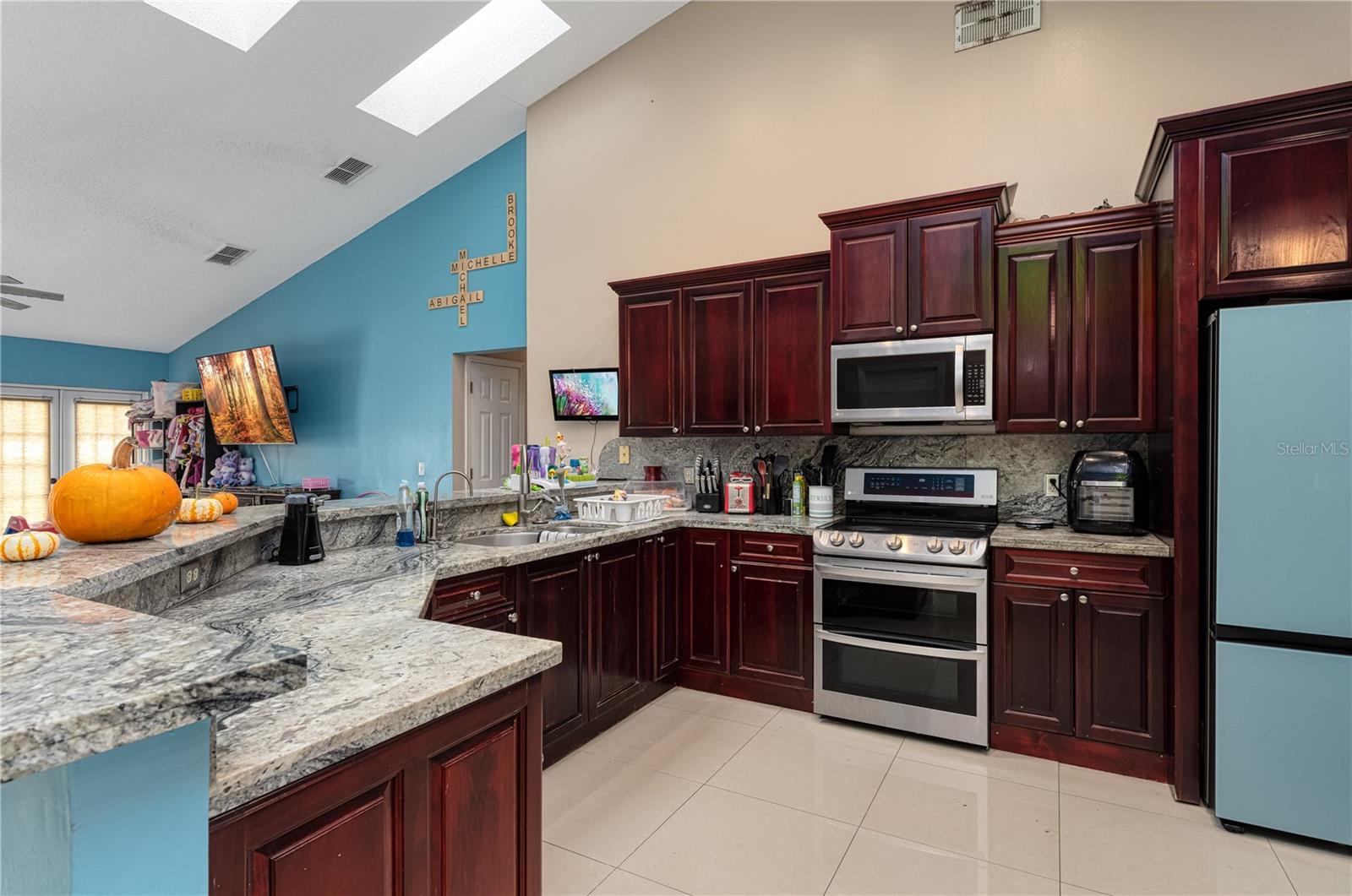 Bem-vindo a esta casa espaçosa e familiar com toneladas de atualizações! As atualizações incluem AC (2019), novo telhado e clarabóias (2020), novas janelas (2023), novo fogão com forno duplo e micro-ondas (2022). Com belo paisagismo, entre na elegante entrada com tetos abobadados, uma sala de estar formal e uma sala de jantar com teto falso. As janelas e claraboias em toda a casa permitem a entrada de muita luz natural. Lindos azulejos de cerâmica em todas as áreas de estar mostram esta casa incrível. A cozinha gourmet possui bancada em granito, armários em cerejeira, lindo backsplash em granito e uma grande despensa. A enorme sala de estar possui uma bela lareira a lenha e portas francesas que levam ao quintal fechado. A grande suíte master possui piso laminado, portas francesas que levam ao quintal, um grande closet, banheiro master revestido de mármore com tetos abobadados, chuveiro de vidro, pia dupla e uma grande banheira de imersão. Há um quarto de hóspedes com banheiro privativo, perfeito para hóspedes. Uma lavanderia, garagem para 2 carros e um grande quintal cercado completam esta luxuosa casa! A comunidade possui uma grande piscina, quadras de basquete, quadras de vôlei de praia, quadras de tênis e um playground e fica a poucos passos de casa. As melhores escolas ficam na mesma rua. Perto do aeroporto e de tudo o que Orlando oferece, este é o melhor do Florida Living! Certifique-se de marcar uma consulta para ver esta bela casa e perguntar sobre milhares de dólares em créditos do credor (dinheiro no fechamento)