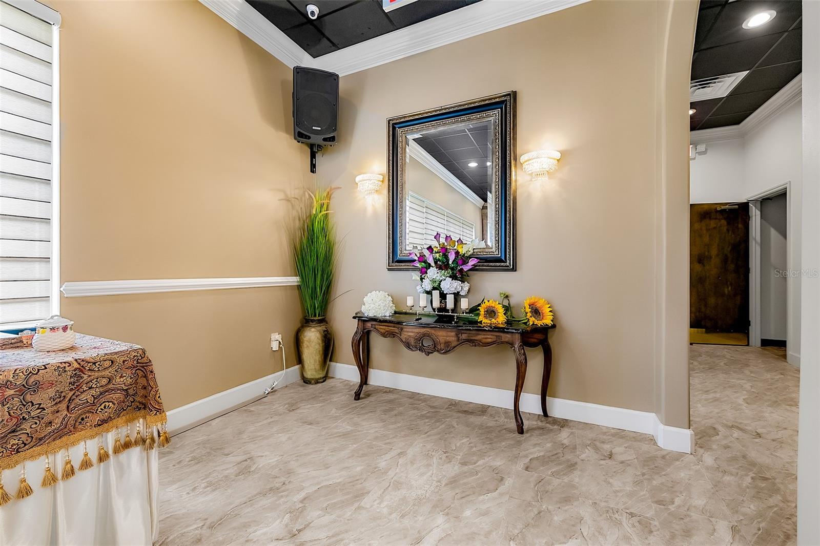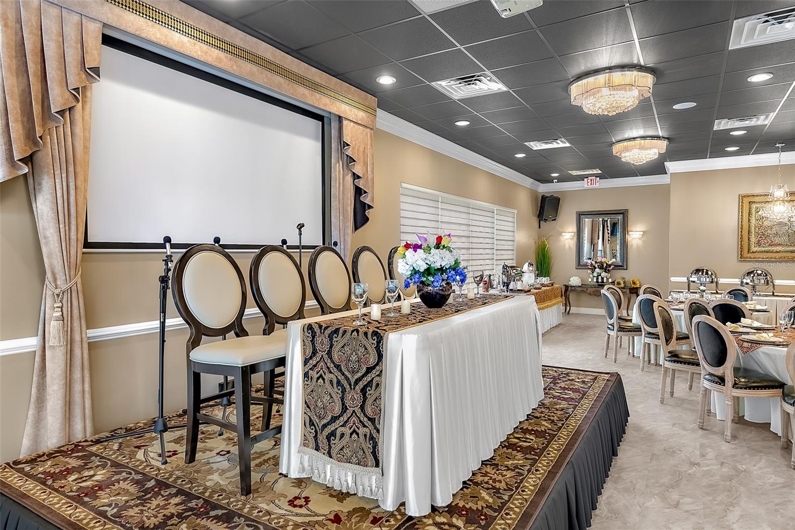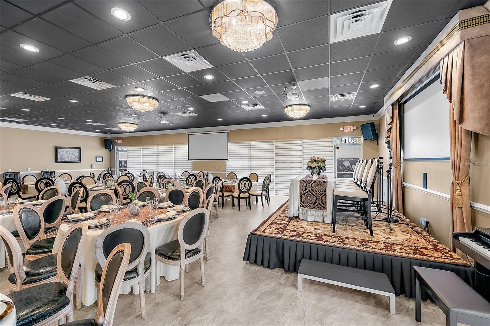 Bem -vindo ao Ormond Beach Business Center. Seu principal destino para qualquer ocasião. Esta instalação multiuso e de última geração pode acomodar eventos de todos os tipos ou servir como um restaurante de luxo. Este lindo local acomoda até 120 convidados. A cozinha possui uma geladeira profissional de duas portas duplas, freezer, estampa de sobremesas e utensílios de mesa para 120 convidados. Também inclui um intervalo com seis queimadores. Oferece um espaço de escritório para os organizadores e uma área de preparação privada. É perfeito para refeições, coquetéis e arranjos de assentos no estilo de teatro. O local multiuso possui comodidades modernas, como equipamentos de segurança de alta tecnologia, Wi-Fi de alta velocidade e equipamentos de áudio-visual avançado. A instalação oferece amplos lugares de estacionamento para seus convidados e está situada nos EUA 95 e, por nós 1. Entre em contato conosco para agendar sua turnê privada.