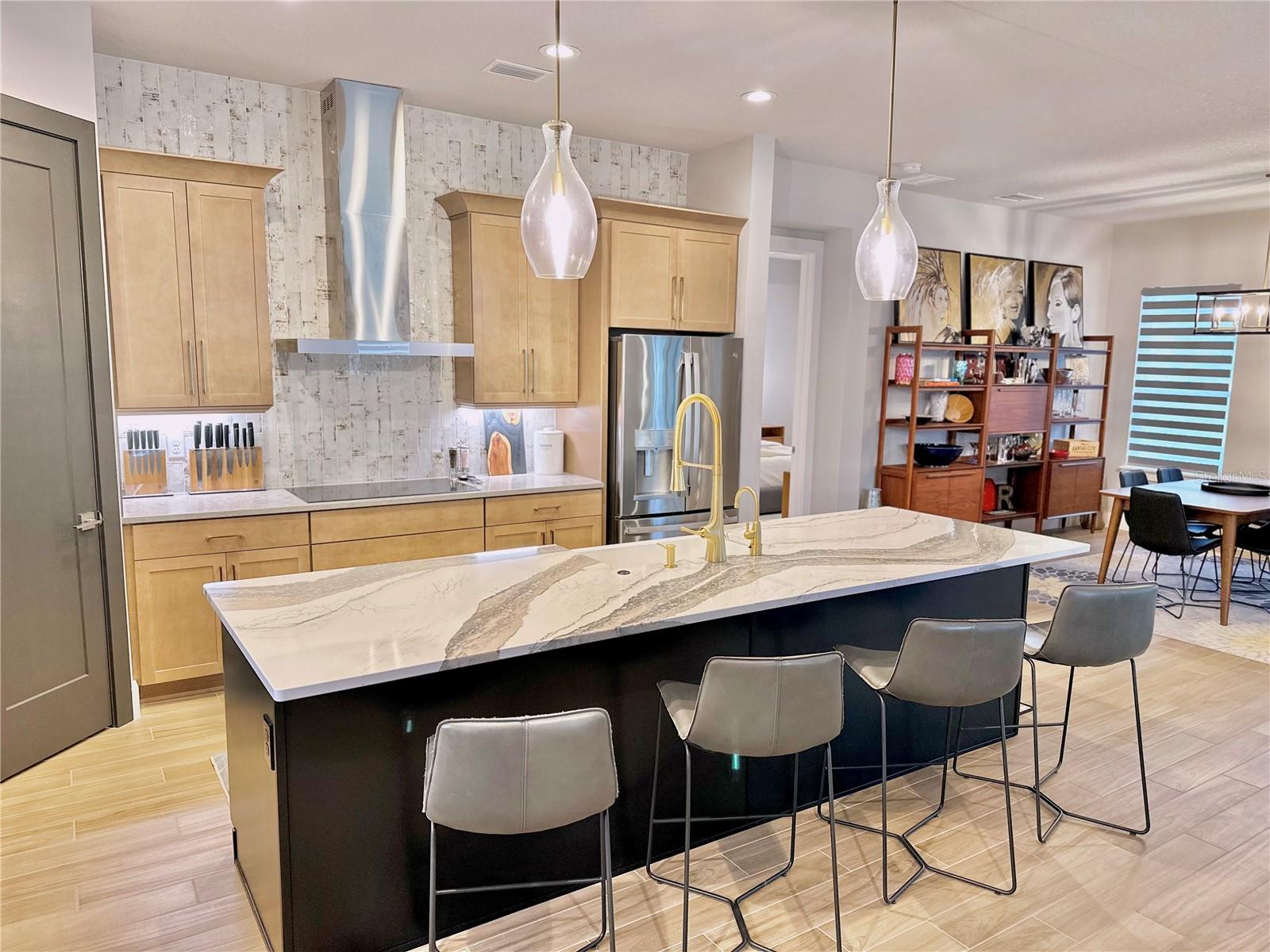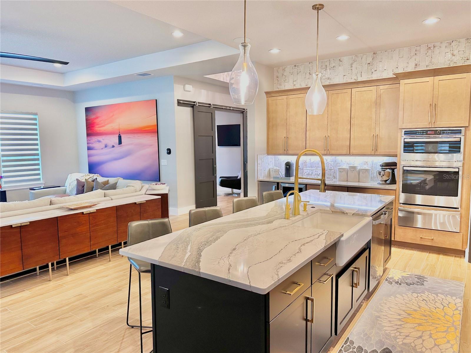Atualizado com perfeição, essa residência requintada aninhada dentro da comunidade de golfe fechada de Plantation Bay oferece uma mistura harmoniosa de luxo e funcionalidade. Com quatro quartos e banhos de três e meio, esta casa é o epítome da elegância moderna. O exterior é acolhedor com uma espaçosa varanda exalando charme atemporal. No interior, a casa possui ladrilhos de piso atualizados em todas as áreas de estar, enquanto o banho e a cozinha possuem trabalhos de ladrilhos de designer do chão ao teto. O quarto principal, a entrada e a sala de estar são acentuados com tetos de bandeja, acrescentando um toque de talento arquitetônico, enquanto o carpete e o preenchimento atualizados para macus garantem conforto em todos os quartos. O coração da casa é a cozinha inspirada no chef, equipada com uma grande ilha com bancadas de quartzo personalizadas, um forno de parede de convecção de dupla unidade, gaveta de aquecimento e uma geladeira embutida. O sistema de água de osmose reversa garante refresco puro, enquanto a luxuosa suíte primária EN oferece uma experiência semelhante ao spa com cabeças de chuveiro duplo, vidro de chuveiro sem moldura e armários personalizados. Do lado de fora, uma piscina em estilo resort com equipamentos atualizados, um sistema de filtração de água ultravioleta e uma gaiola completa com vistas desobstruídas cria um retiro idílico ao ar livre. O Lanai, completo com banheiro, cozinha ao ar livre embutida, bancadas em granito e backspsash de telha é perfeita para hospedar reuniões ou desfrutar de vistas serenas. O preço pedido inclui um pacote de eletrônicos com um sistema de som surround de última geração que se estende à sala de estar, suíte primária, varanda e varanda da frente, todas as TVs e a maioria dos móveis de Lanai-tornando-o pronto para uso sem esforço. Tons inteligentes, um sistema de alarme atualizado e o Millwork personalizado fornecem estilo e conveniência. Esta casa é a mistura perfeita de estilo, tecnologia e conforto - oferecendo uma experiência de vida verdadeiramente luxuosa.