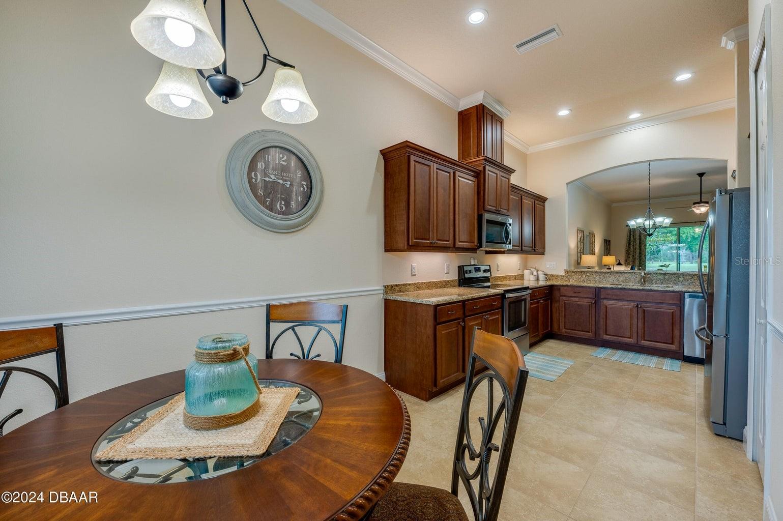 Descubra o epítome da baixa manutenção que vive nesta convidativa Villa de golfe construída em 2019, localizada na comunidade de campos de golfe Halifax Plantation. Perfeito para quem deseja uma casa quase nova com uma manutenção mínima, esta vila está situada em um lote expandido, oferecendo vistas deslumbrantes da vida selvagem e do campo de golfe - um recurso excepcional na área. Entre para encontrar 11 'tetos, elegantes molduras de coroa e amplo espaço de armazenamento que contribuem para a sensação espaçosa e aberta da casa. O quarto principal possui tetos de bandeja, um grande closet e um banheiro na suíte com chuveiro e banheira profunda separada, fornecendo um retiro luxuoso. A cozinha moderna é o sonho de um chef, com armários de madeira de 42 '', bancadas em granito, utensílios de aço inoxidável e armazenamento abundante. Dois quartos adicionais de tamanho generoso compartilham um banheiro completo bem equipado. Para maior conveniência, a lavadora e a secadora estão localizadas dentro de casa. Com apenas 15 meses de ocupação pelos proprietários, a propriedade permanece em condição quase nova, quase nova. A Halifax Plantation, uma comunidade mestre planejada, oferece uma variedade de comodidades, incluindo um clube, campo de golfe público, instalações de exercícios, quadras de tênis e piscina (disponível por uma taxa adicional). Além disso, todos os móveis, roupas de cama, decoração e itens de cozinha estão disponíveis para compra, tornando isso uma oportunidade pronta para mover-se.