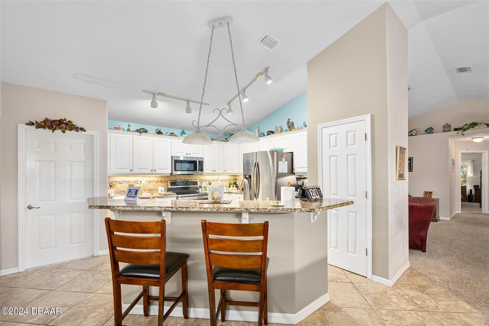 Ormond Lakes Cul-de-Sac ... finalmente ... um Bloqueio de 3 bdrm bem guardado e limpo, 2 1/2 de banho construído em uma das comunidades mais procuradas em Ormond Beach. Telhado mais recente APX 3yrs e AC APX 6. Plano de piso aberto com sala de estar, sala de estar, espaço formal para jantar e quartos divididos. A cozinha possui uma ilha grande com uma blusa de bar e recanto de café da manhã aberta para a sala da família com controles deslizantes para o lanai coberto e rastreado. BDRM primário espaçoso com grande banho de banheiro e closet. Dois outros BDRMs de tamanho generoso, um com uma sala segura, uma garagem de 2 carros de grandes dimensões, dentro de roupas e um banho de meio que o leva ao enorme pátio com vista para o quintal tranquilo. Comunidade não fechada com baixas taxas de HOA, clube, piscina espumante, quadras de tênis e muitas calçadas e lagos. Perto de campos de futebol e beisebol, parques estaduais, campos de golfe e a poucos minutos do rio intercoastal e praias locais.