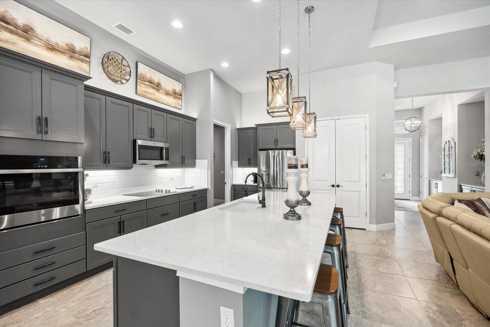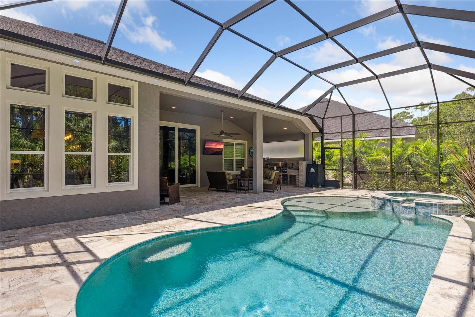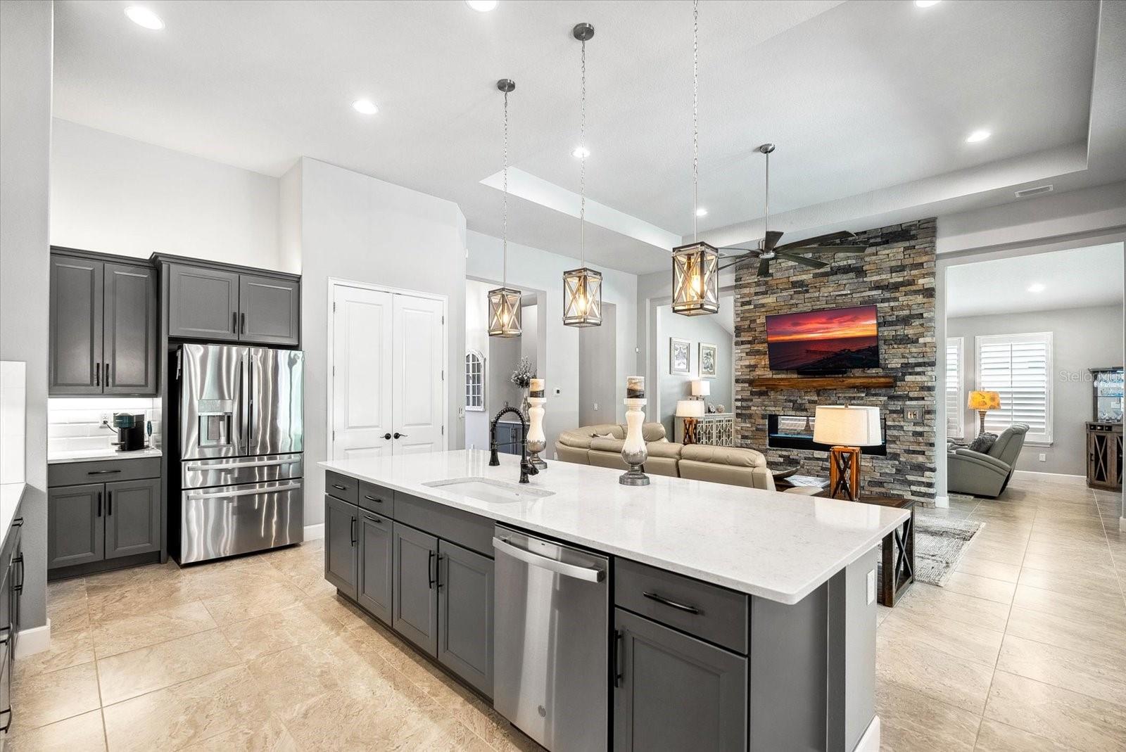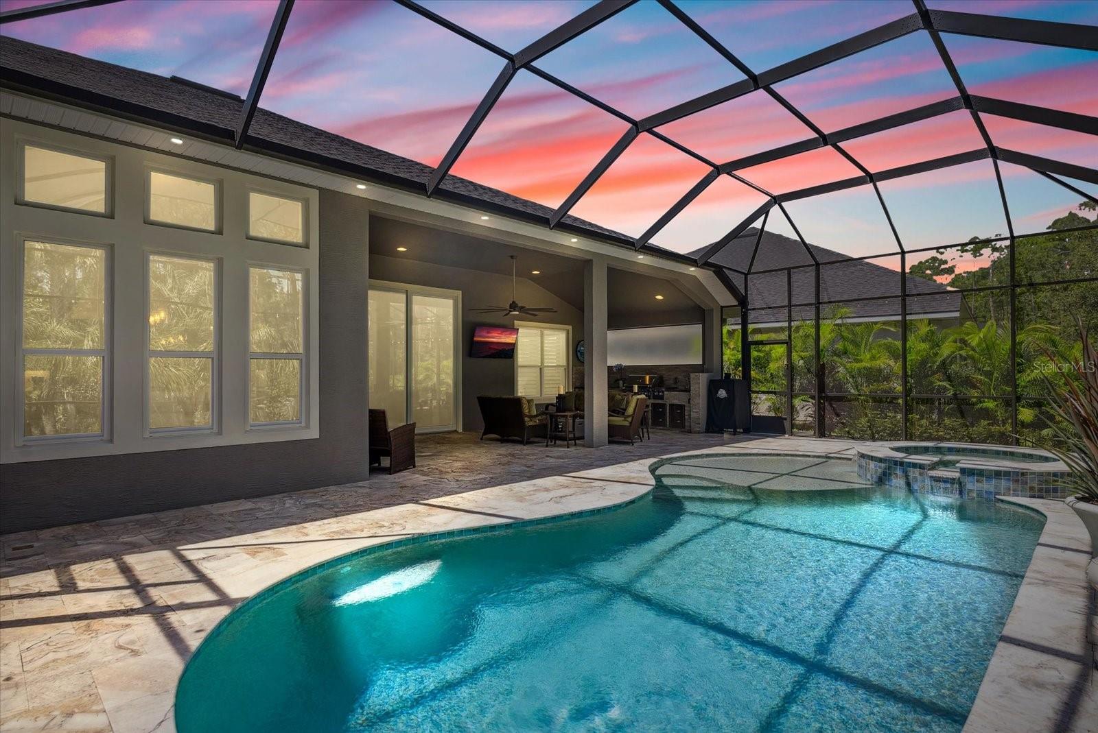 BEM-VINDO À VIDA DE LUXO EM PLANTATION BAY! Esta IMPRESSIONANTE casa de 3 quartos + escritório/escritório com cama Murphy personalizada, 2,5 banheiros, casa construída sob medida em 2021 possui um extravagante espaço ao ar livre com piscina privativa, spa, travertino atualizado e uma cozinha de verão completa, incluindo refrigerador de vinho e kegerator sob uma varanda coberta estendida . Dentro de um dos modelos ICI mais populares, o CAMERON, você descobrirá uma planta ATUALIZADA com lareira dupla face nas espaçosas áreas de estar e marquise. A cozinha de luxo personalizada inclui bancadas de quartzo premium, eletrodomésticos de perfil GE, iluminação inferior e superior do armário, prateleiras extraíveis de madeira com gavetas com fechamento suave. Relaxe na opulenta suíte master com closet personalizado e banheiro tipo spa. Uma garagem estendida para 3 carros é perfeita para veículos maiores, armazenamento e carrinho de golfe. Filtragem de água em toda a casa e poço independente para rega. Esta propriedade requintada tem paisagismo profissional com meio-fio e pedras e dá acesso a uma área arborizada privada e tranquila com um recuo maior do que outras casas. Com oportunidades de associação, você desfrutará de um campo de golfe privado que inclui 45 buracos, quadras de tênis e pickleball. centro de fitness, spa e o novo clube de mais de US$ 30 milhões. Não perca esta oportunidade de fazer desta jóia rara a sua nova casa em Stirling Bridge!