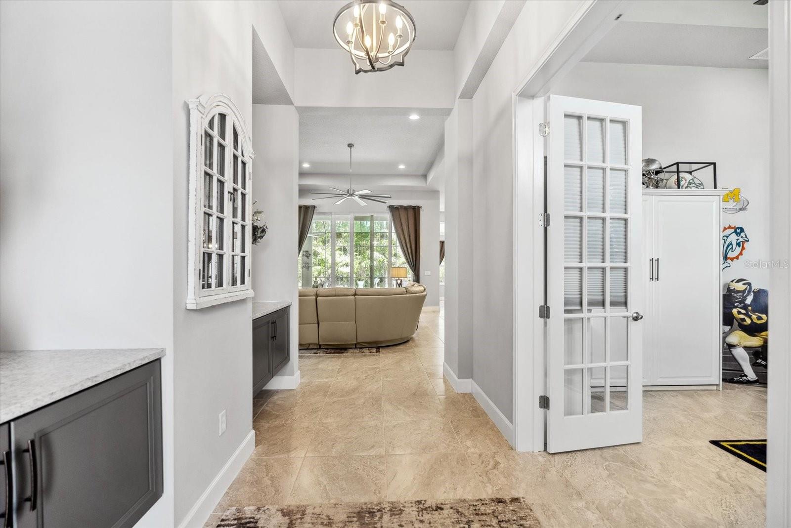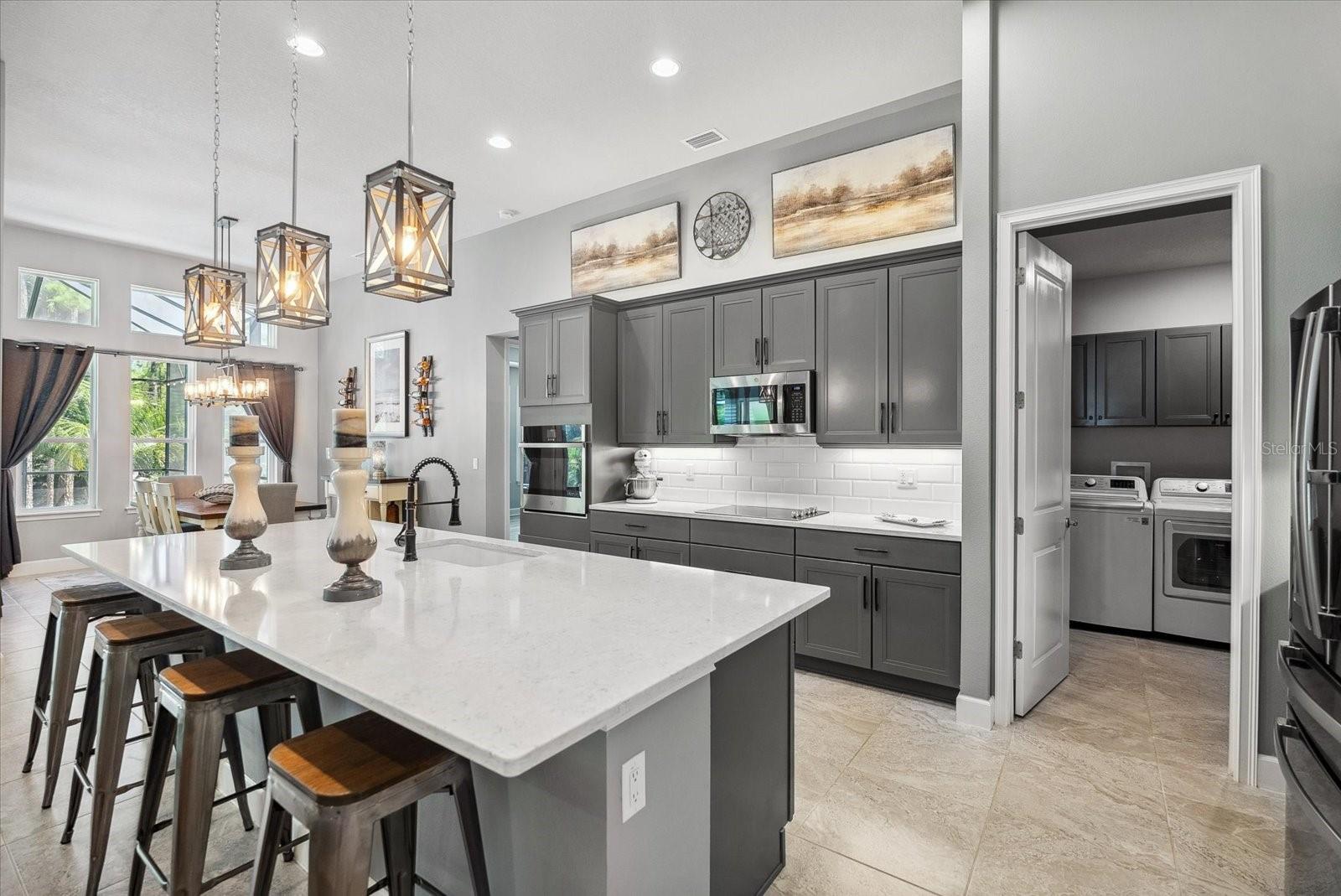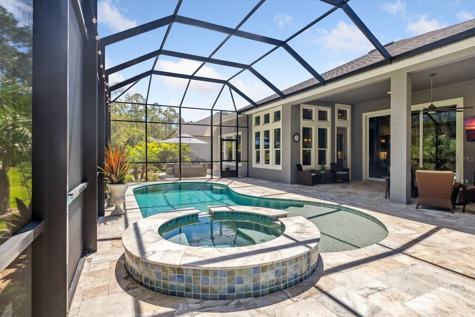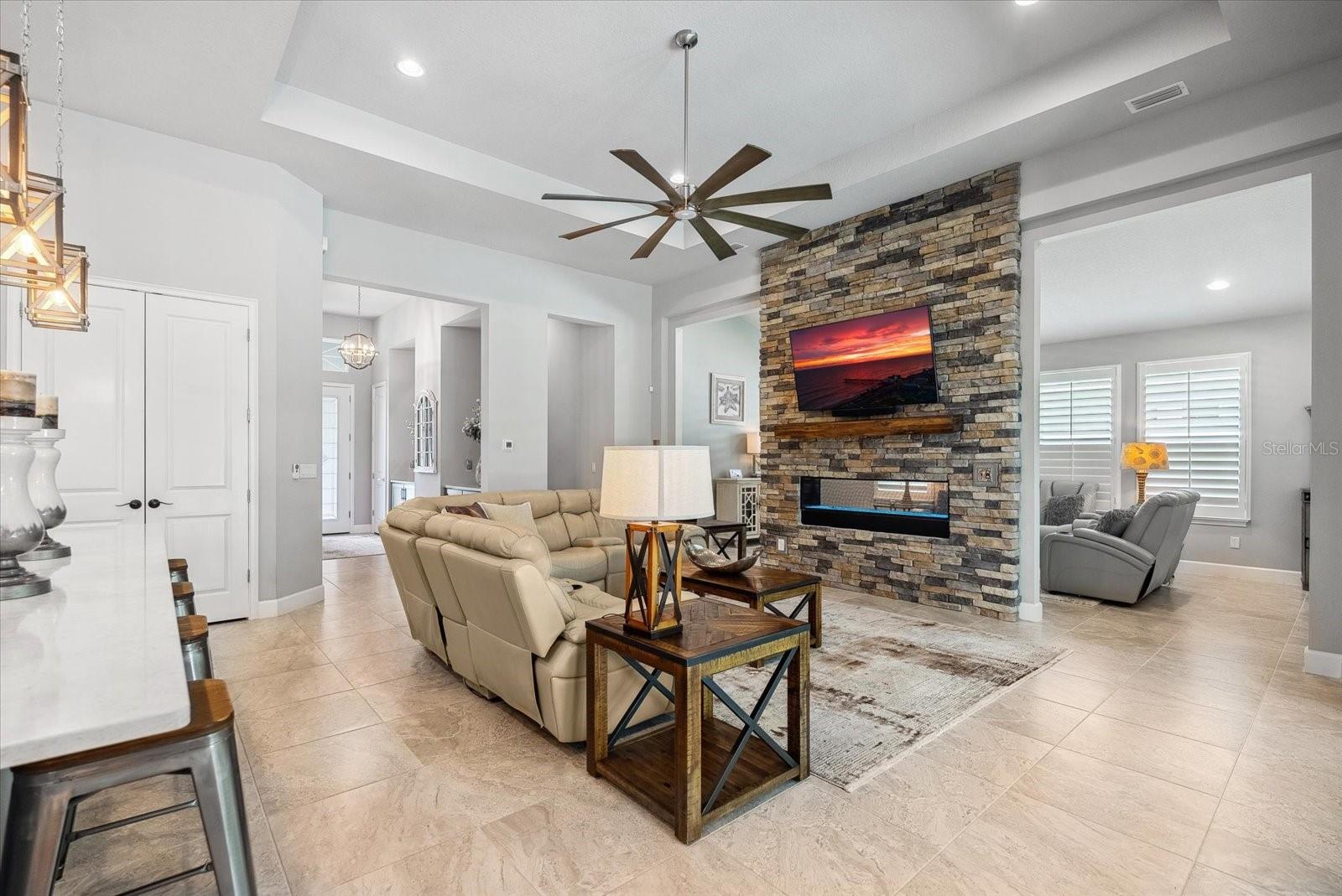 BEM-VINDO À VIDA DE LUXO EM PLANTATION BAY! Esta IMPRESSIONANTE casa de 3 quartos + escritório/escritório com cama Murphy personalizada, 2,5 banheiros, casa construída sob medida em 2021 possui um extravagante espaço ao ar livre com piscina privativa, spa, travertino atualizado e uma cozinha de verão completa, incluindo refrigerador de vinho e kegerator sob uma varanda coberta estendida . Dentro de um dos modelos ICI mais populares, o CAMERON, você descobrirá uma planta ATUALIZADA com lareira dupla face nas espaçosas áreas de estar e marquise. A cozinha de luxo personalizada inclui bancadas de quartzo premium, eletrodomésticos de perfil GE, iluminação inferior e superior do armário, prateleiras extraíveis de madeira com gavetas com fechamento suave. Relaxe na opulenta suíte master com closet personalizado e banheiro tipo spa. Uma garagem estendida para 3 carros é perfeita para veículos maiores, armazenamento e carrinho de golfe. Filtragem de água em toda a casa e poço independente para rega. Esta propriedade requintada tem paisagismo profissional com meio-fio e pedras e dá acesso a uma área arborizada privada e tranquila com um recuo maior do que outras casas. Com oportunidades de associação, você desfrutará de um campo de golfe privado que inclui 45 buracos, quadras de tênis e pickleball. centro de fitness, spa e o novo clube de mais de US$ 30 milhões. Não perca esta oportunidade de fazer desta jóia rara a sua nova casa em Stirling Bridge!