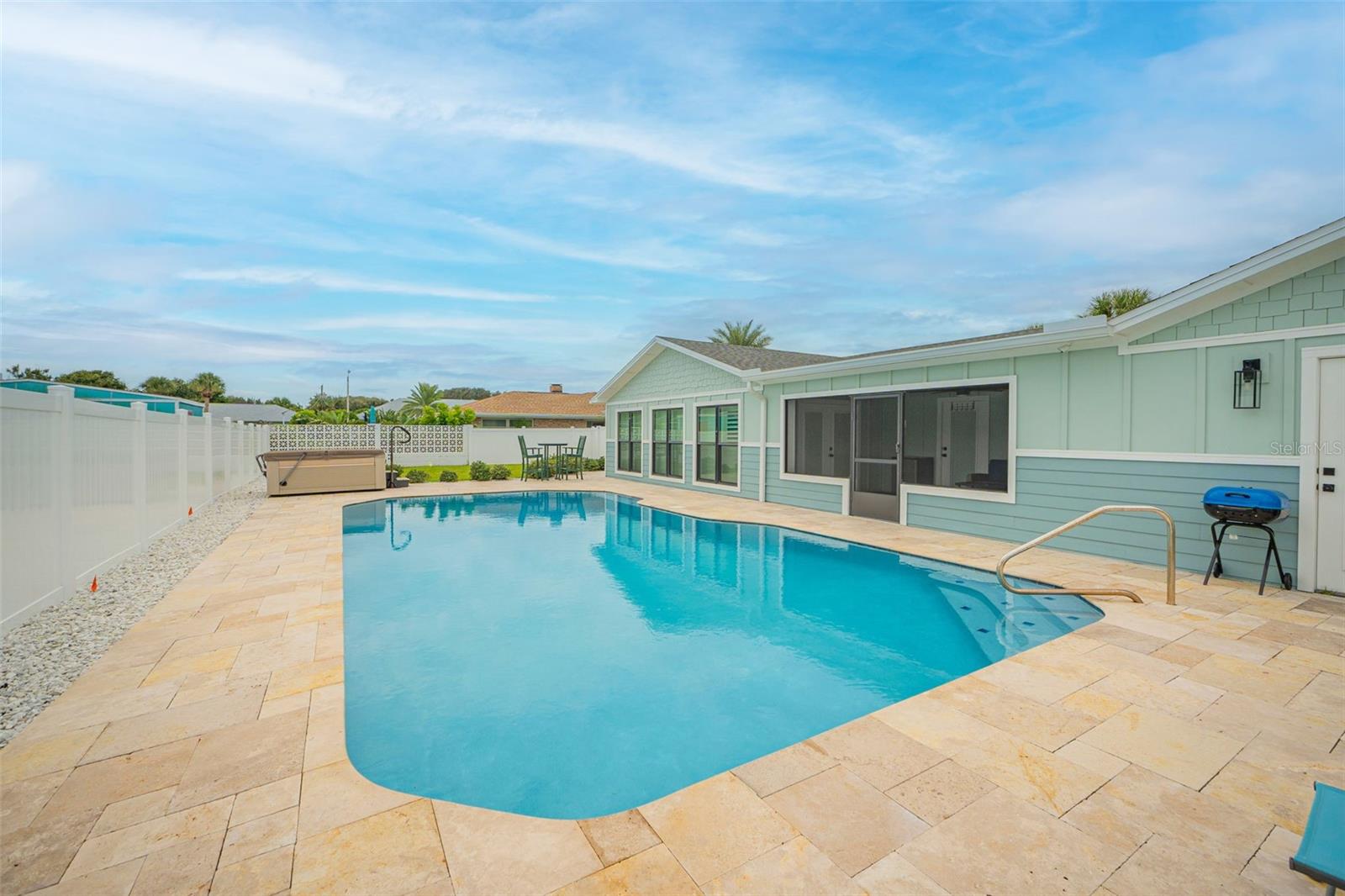 Uau! Confira esta casa totalmente atualizada com planta aberta e todos os recursos modernos. Aproveite a vida à beira-mar no Ormond By the Sea. Caminhe, surfe ou pesque ao longo da praia com acesso público nas proximidades. Ou refresque-se na sua própria piscina privada aquecida, grande o suficiente para fazer algumas voltas de exercício. A casa foi completamente atualizada no final de 2021. Janelas classificadas como furacões e isolamento de espuma proporcionam contas de energia elétrica baixas. O plano aberto com excelente design de sala é ideal para reuniões familiares e entretenimento. Você vai adorar a ilha de cozinha de 12', bancadas de quartzo, tetos de tábuas, iluminação LED, bar de bebidas, piso de tábuas de vinil por toda parte, venezianas e a lista continua. O terceiro banheiro completo está conectado ao alpendre coberto completo com churrasqueira embutida, exaustor e armários modernos para diversão ao ar livre. Um achado raro para uma casa "como nova" perto do oceano, esta é imperdível. Mobiliário opcional.