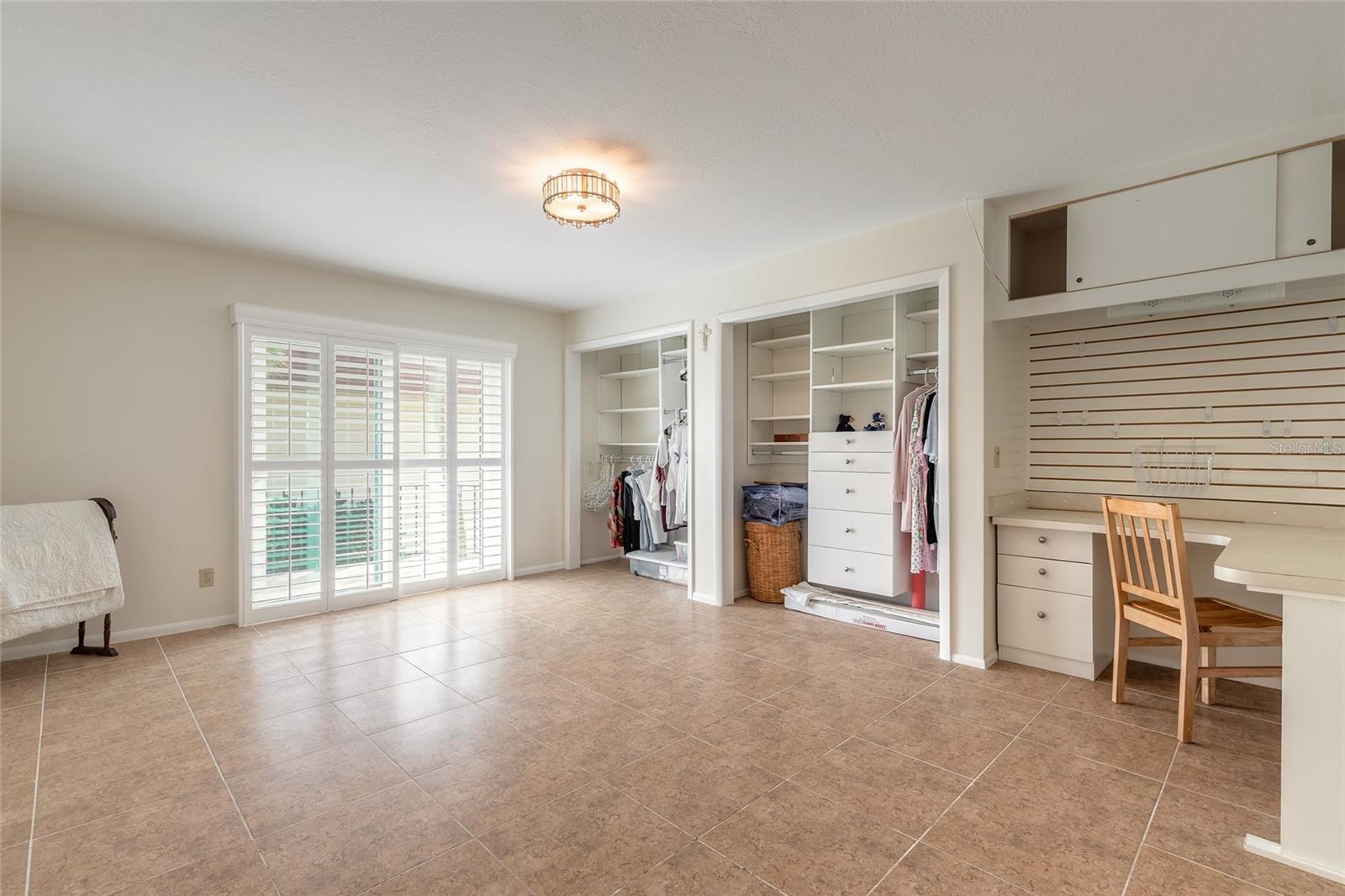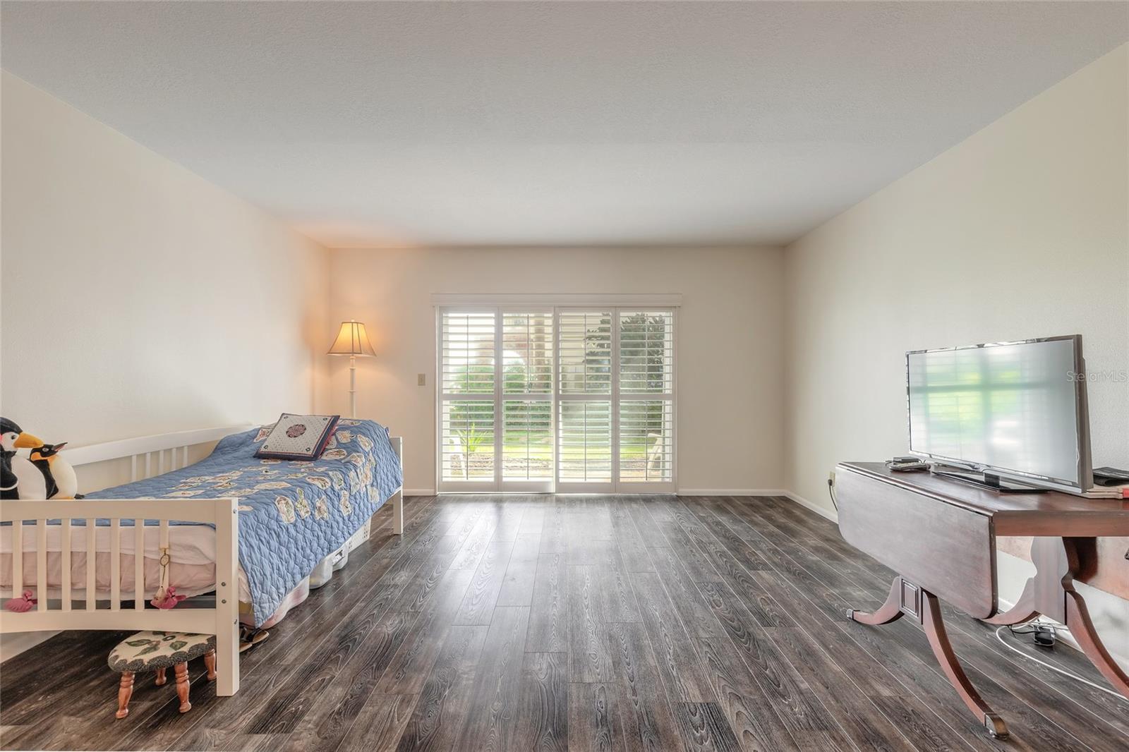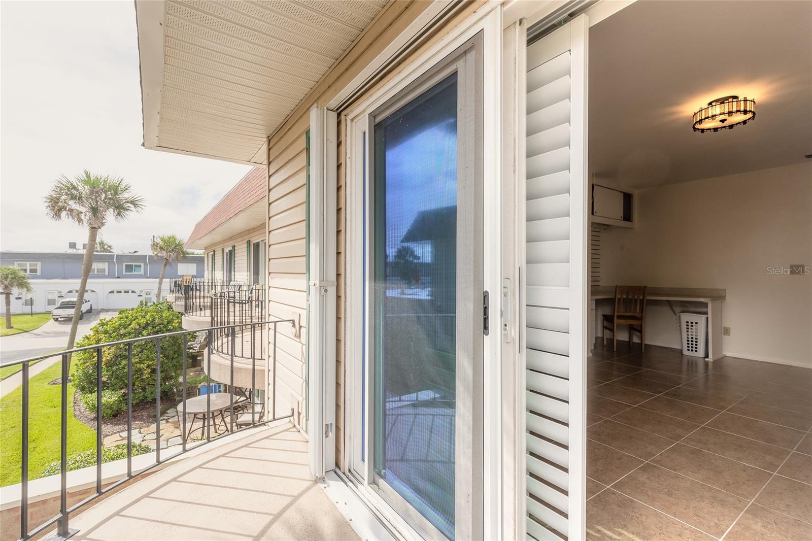 Varanda, pátio, persianas anti-furacão, calçada, portas de correr